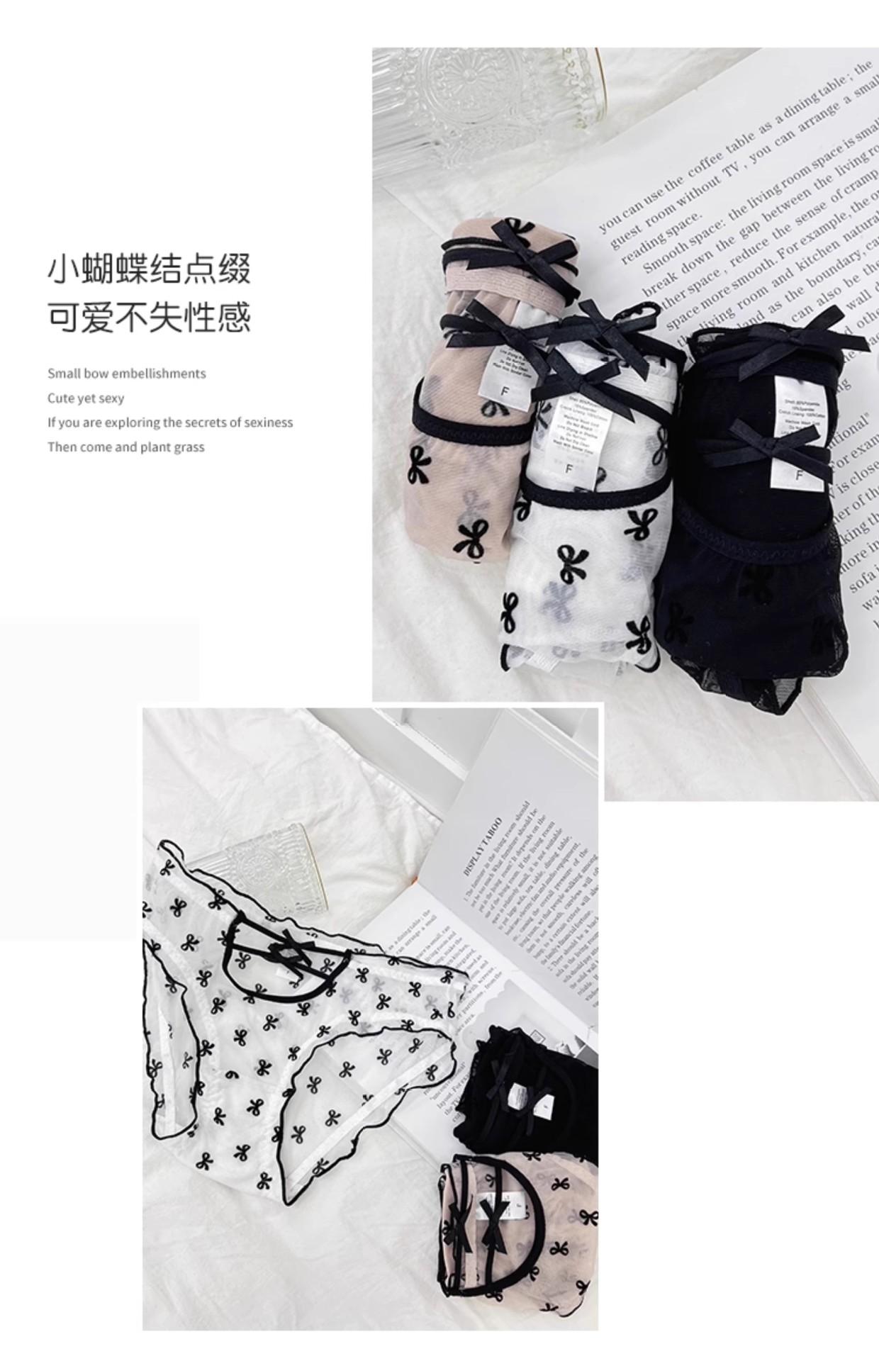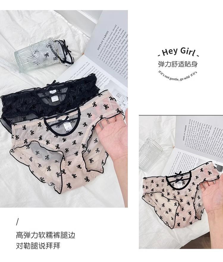 Ropa interior sexy de malla transpirable con lazo para niña, de cintura baja, sin marcas, color liso, estilo Pure Desire, nuevo estilo