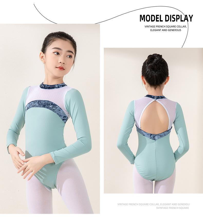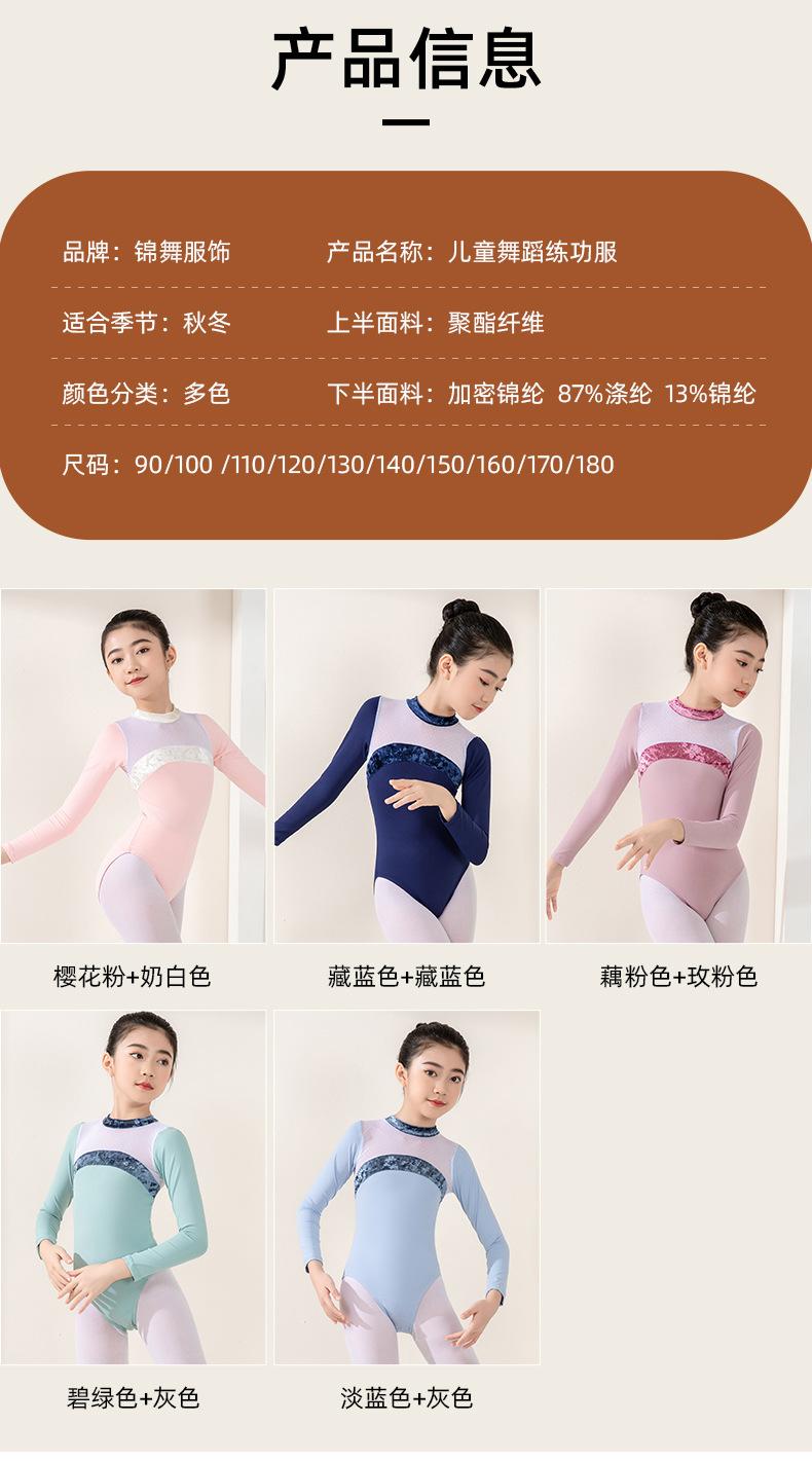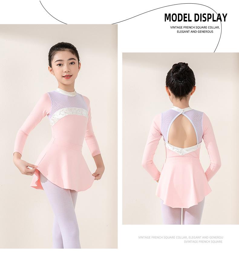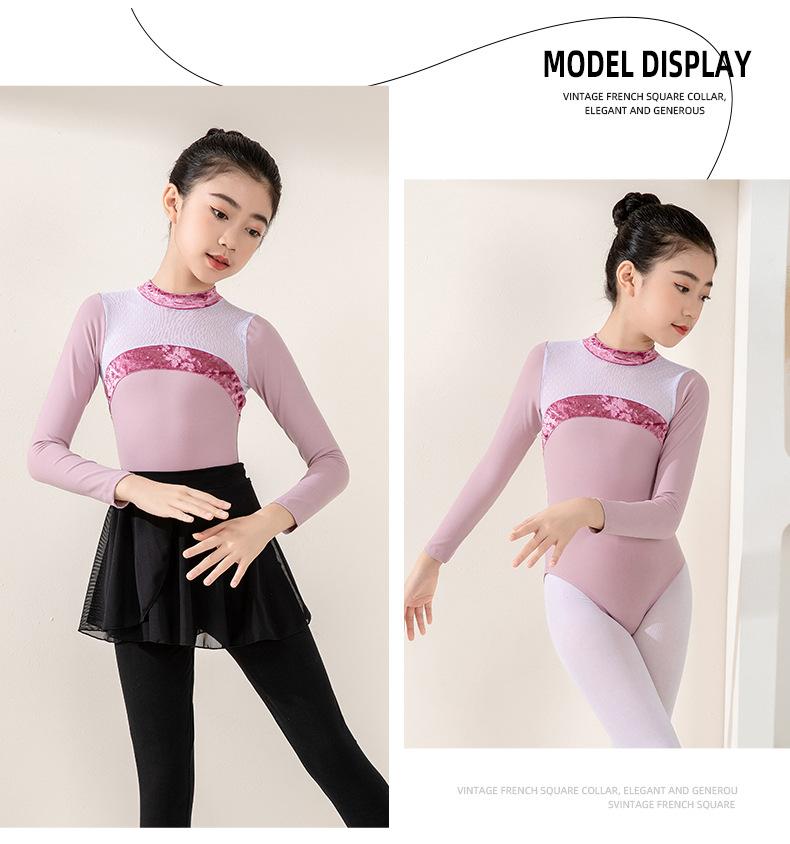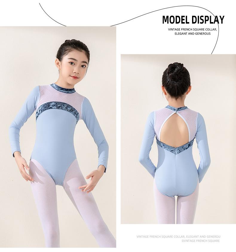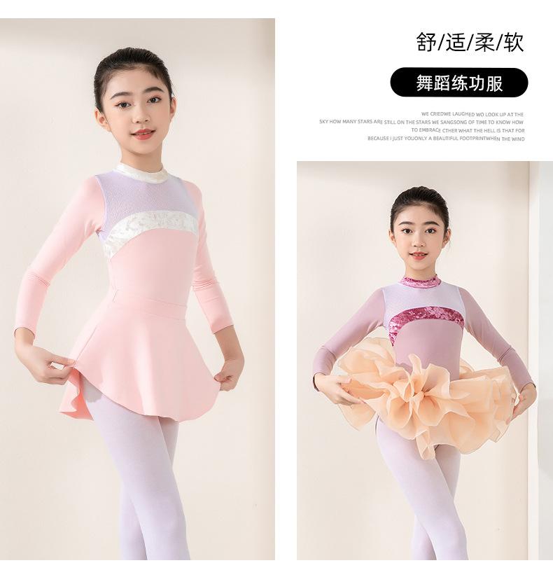 Traje de Danza para Niñas Traje de Entrenamiento de Color en Contraste Traje de Manga Larga de Otoño e Invierno Traje de Vestido de Ballet para Niños
