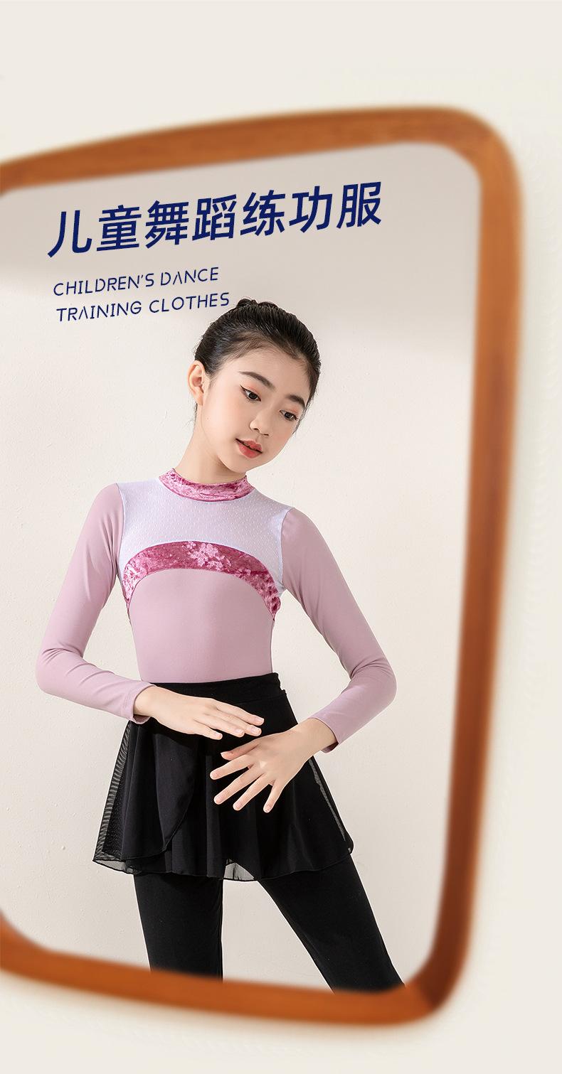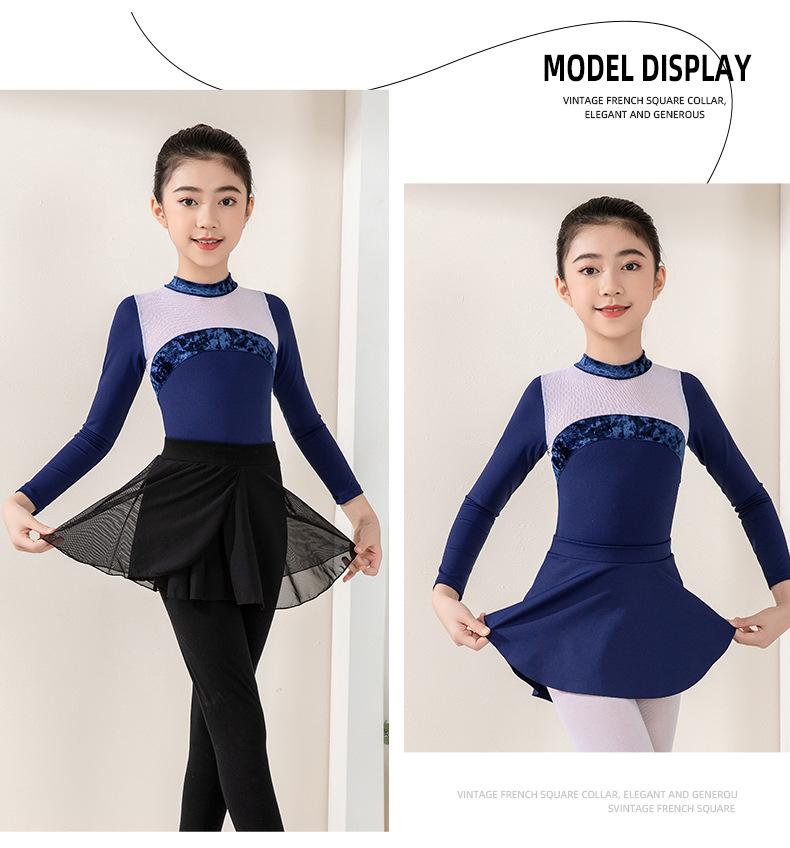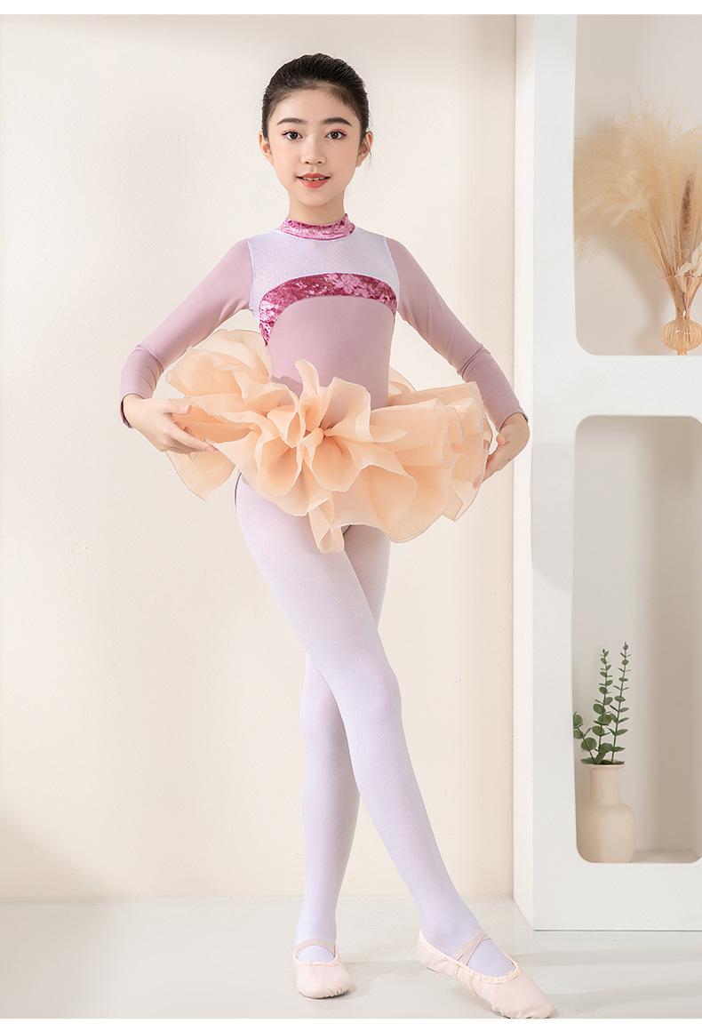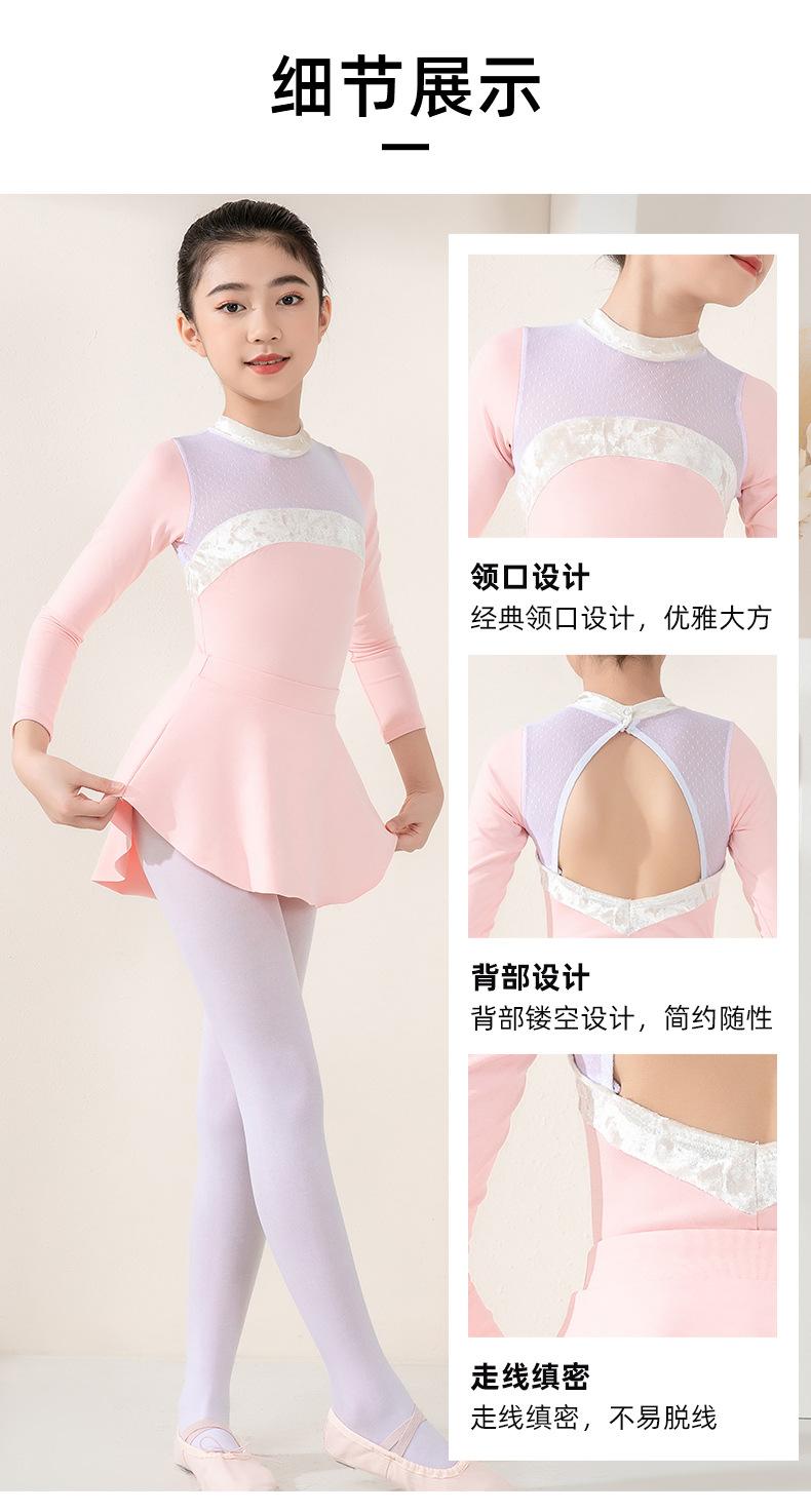 Traje de Danza para Niñas Traje de Entrenamiento de Color en Contraste Traje de Manga Larga de Otoño e Invierno Traje de Vestido de Ballet para Niños