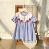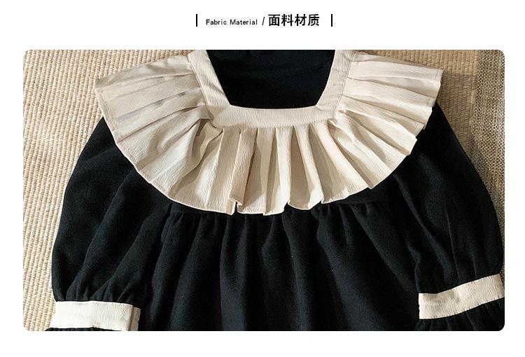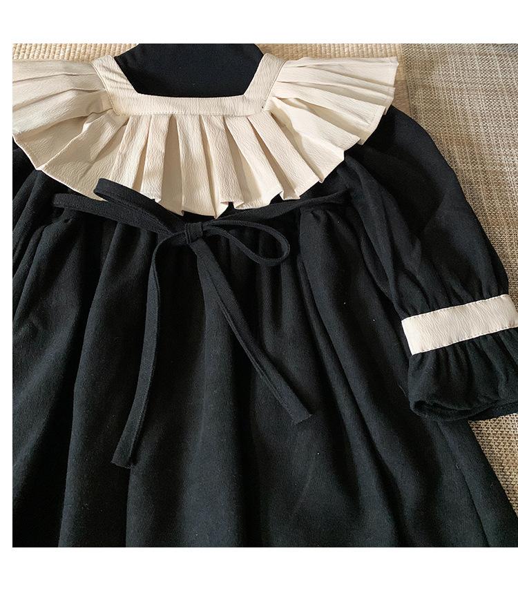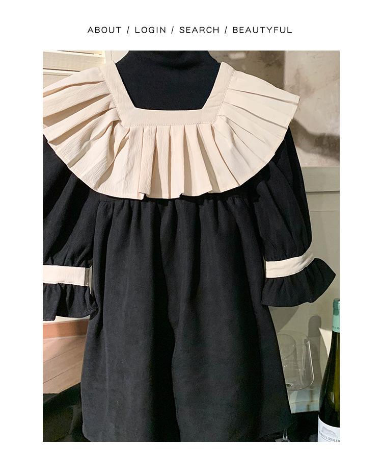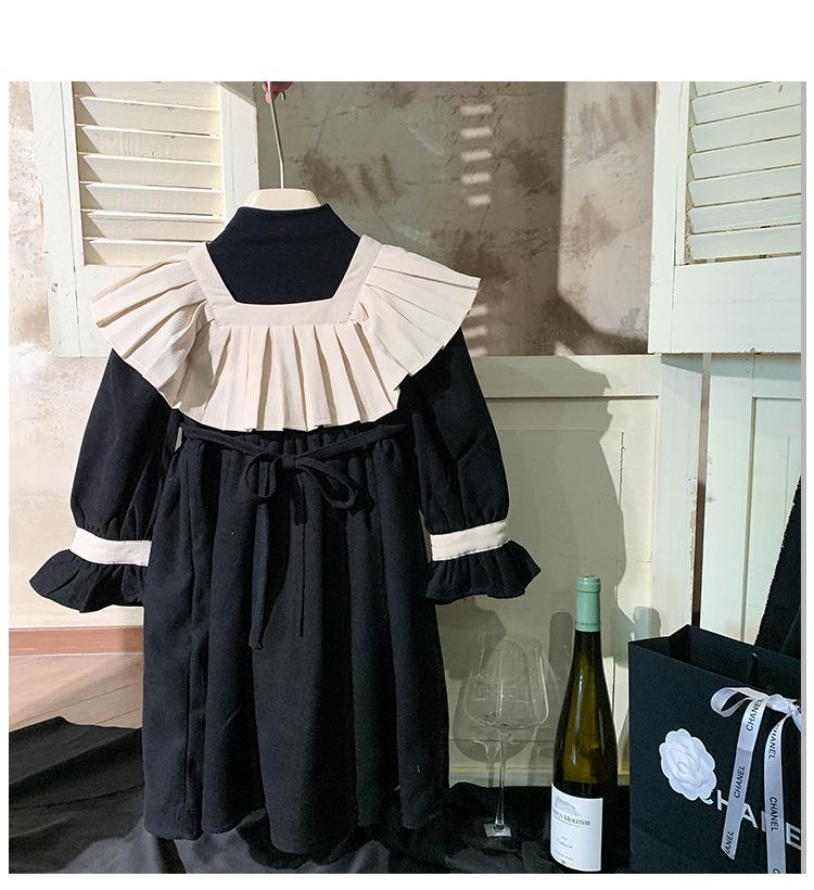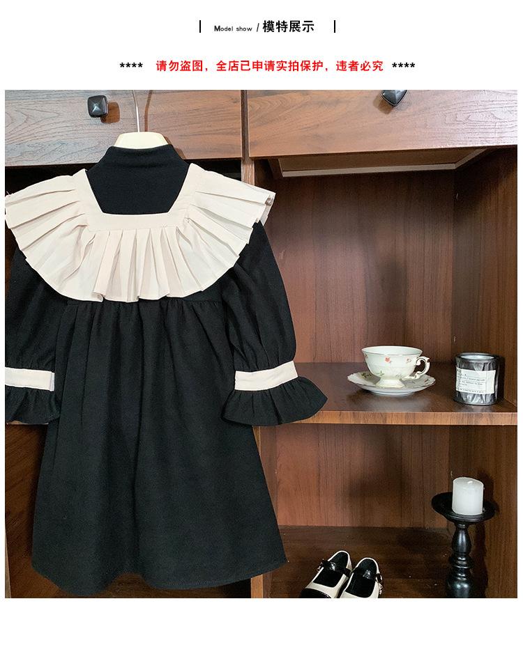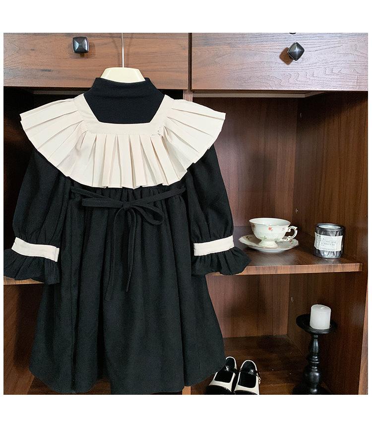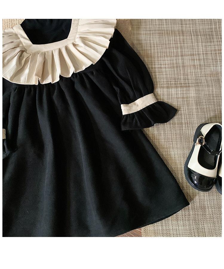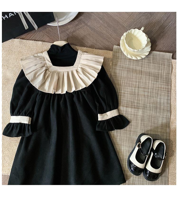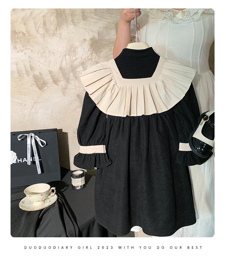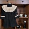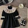 Ropa infantil estilo coreano vestido para niña Otoño 2023 nuevo manga larga Interior francés retro color de contraste solapa vestido de princesa