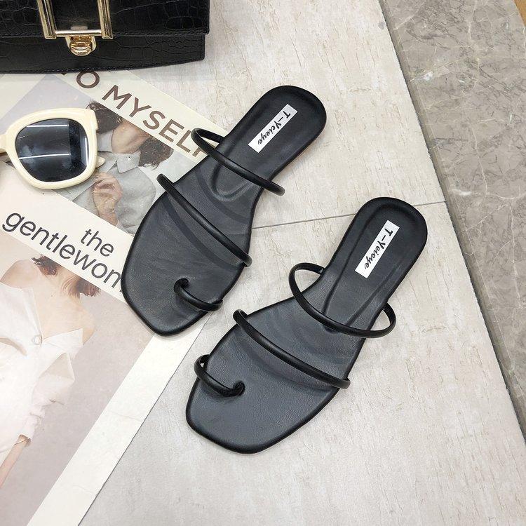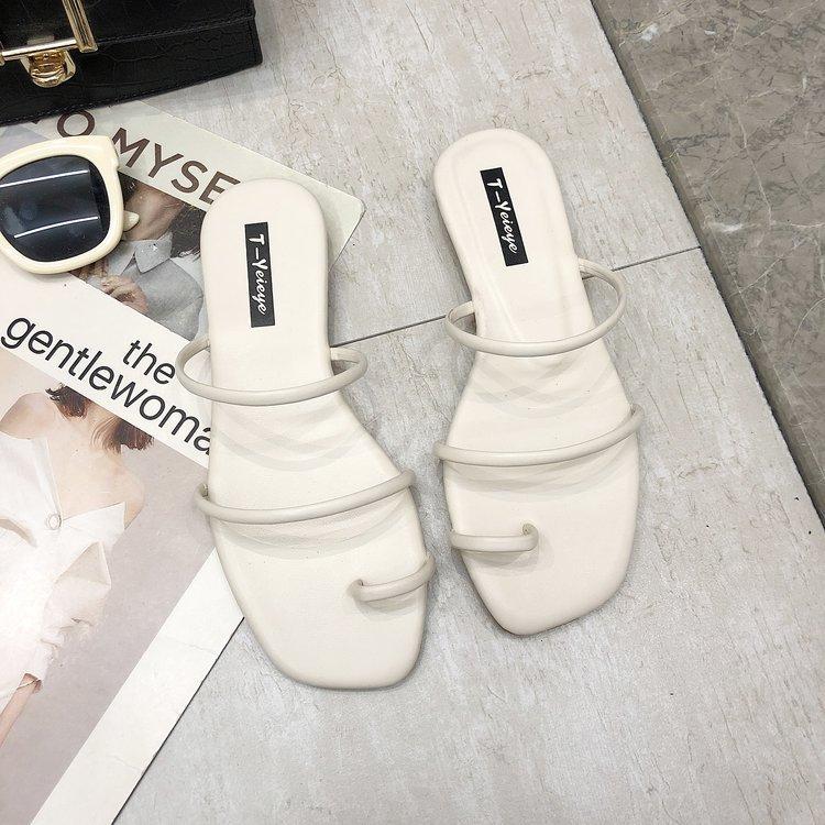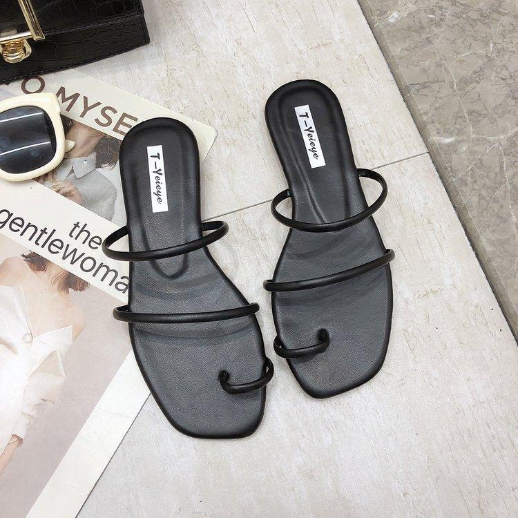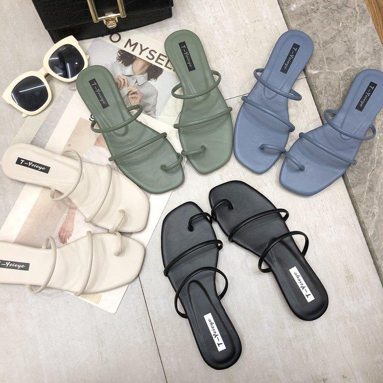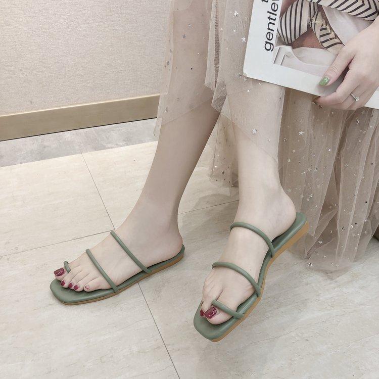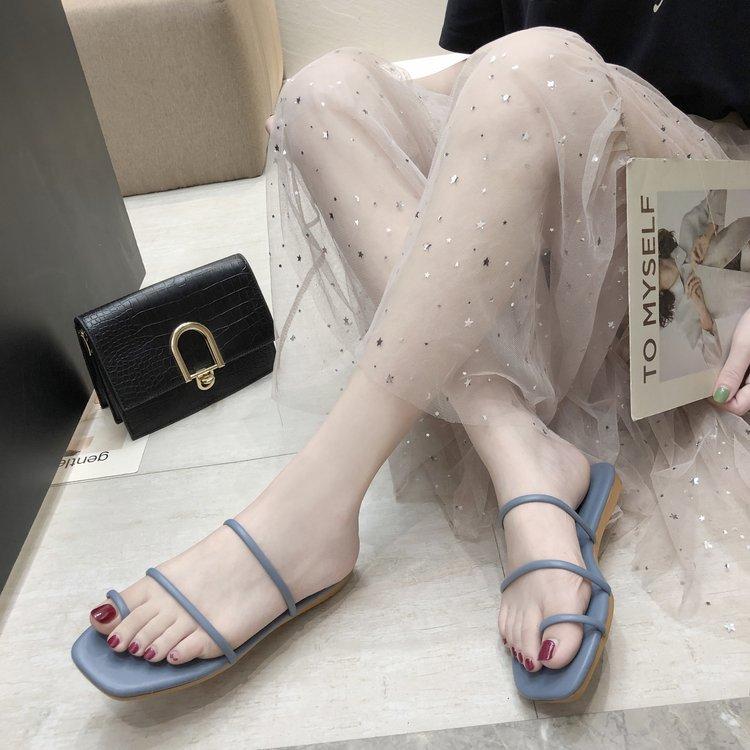 Zapatillas planas de verano 2020, versión coreana, para mujer, con puntera y sandalias de exterior, zapatos de moda para mujer, venta al por mayor