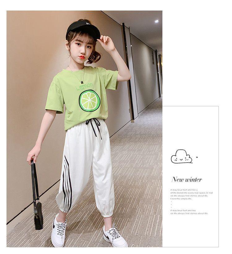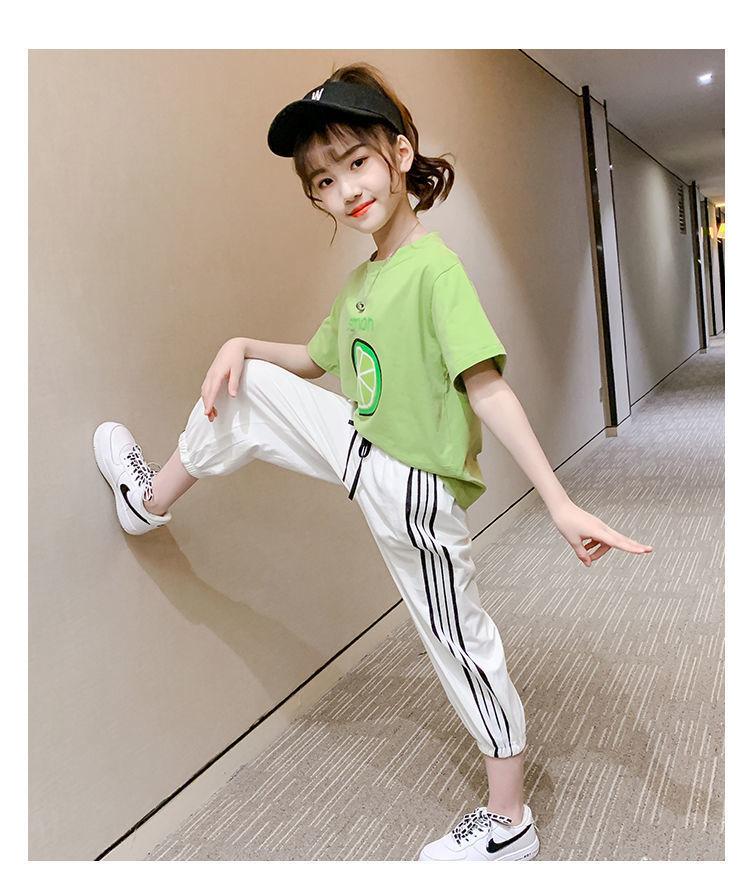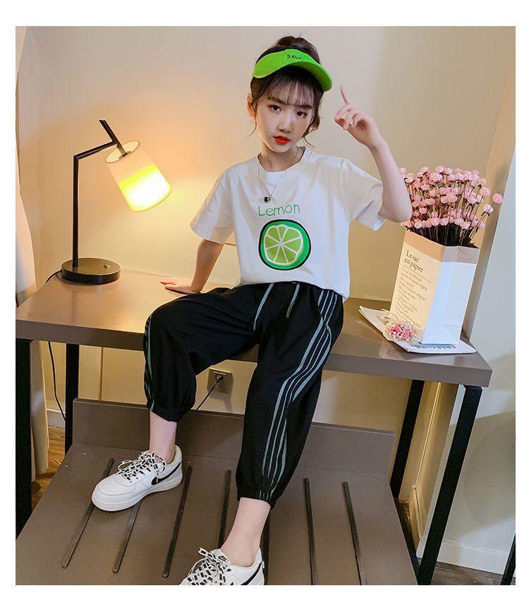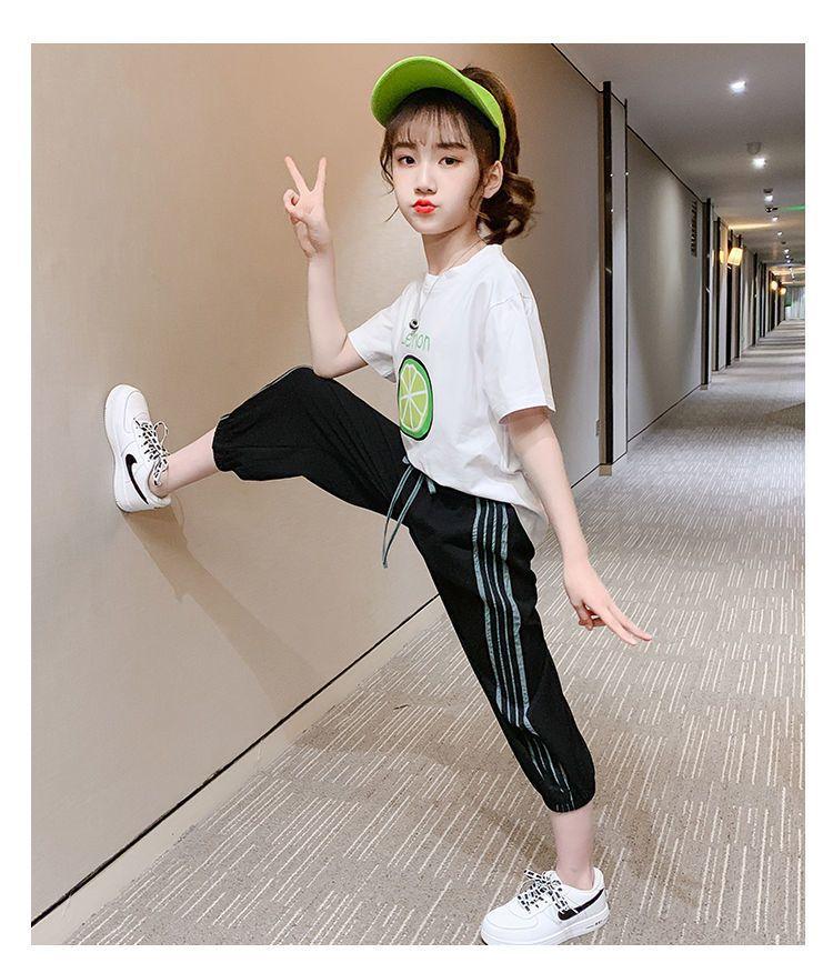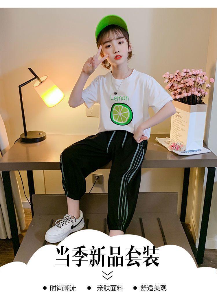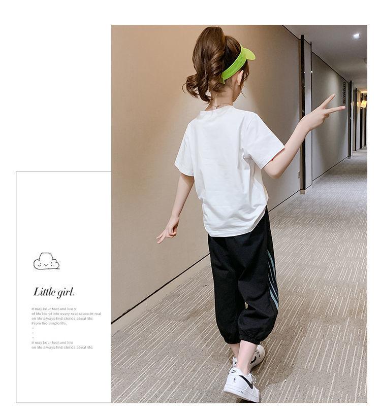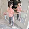 Traje de manga corta para niñas Verano 2024 Nuevo estilo coreano Celebridad de Internet Niños medianos y grandes Traje de dos piezas de moda para niñas