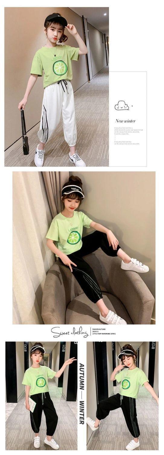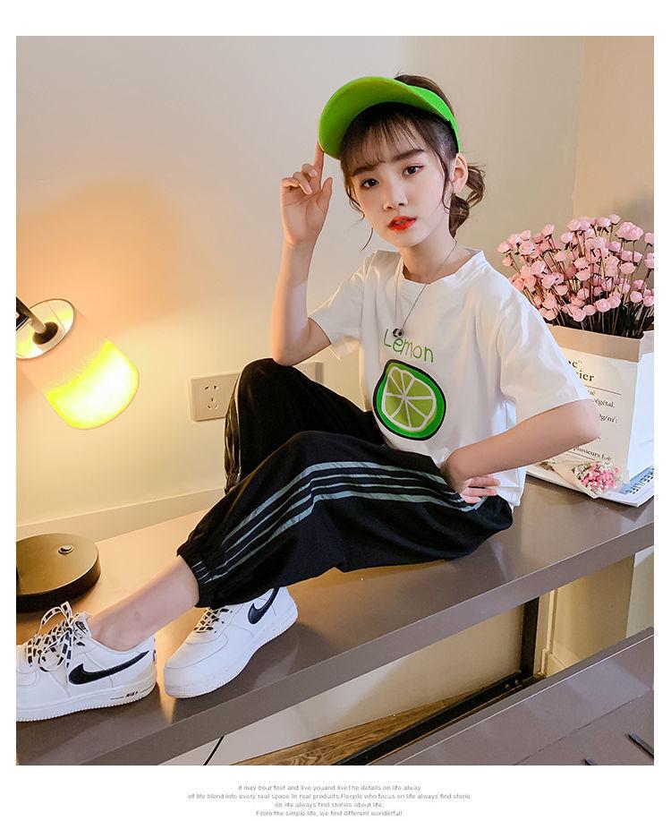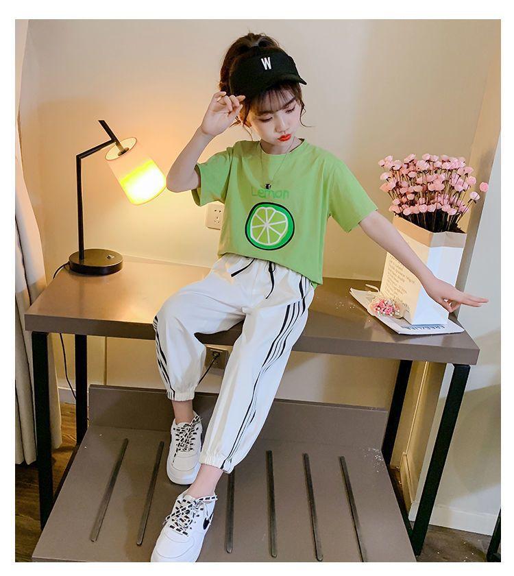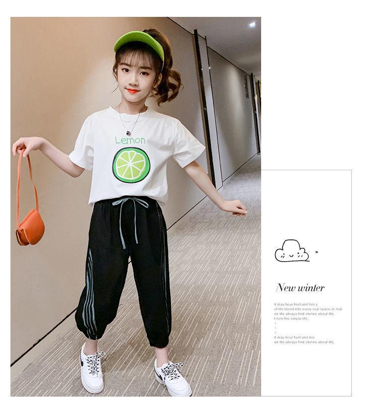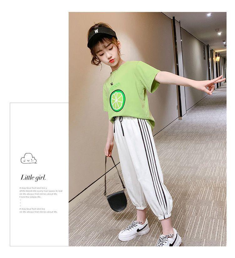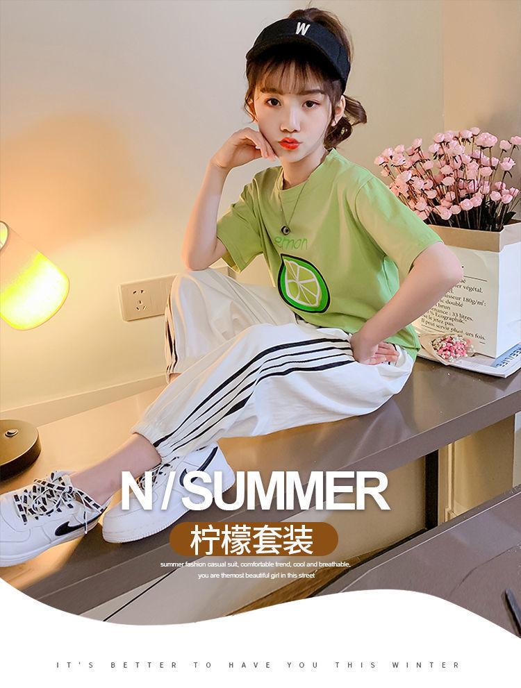 Traje de manga corta para niñas Verano 2024 Nuevo estilo coreano Celebridad de Internet Niños medianos y grandes Traje de dos piezas de moda para niñas