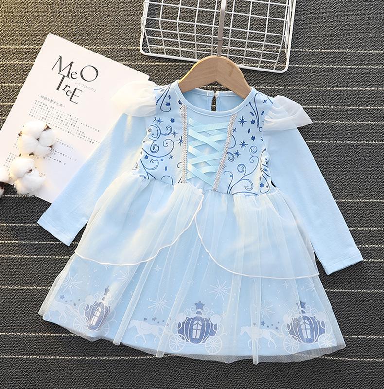 Vestido de verano para niñas, vestido de princesa Cenicienta, vestido de princesa Frozen para niños, vestido de malla esponjosa de alta gama