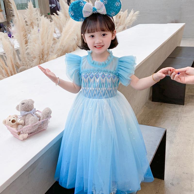 Ropa infantil 2021, nuevo vestido de princesa Elsa de Frozen, vestido degradado de manga corta para niñas, vestido de cumpleaños, falda