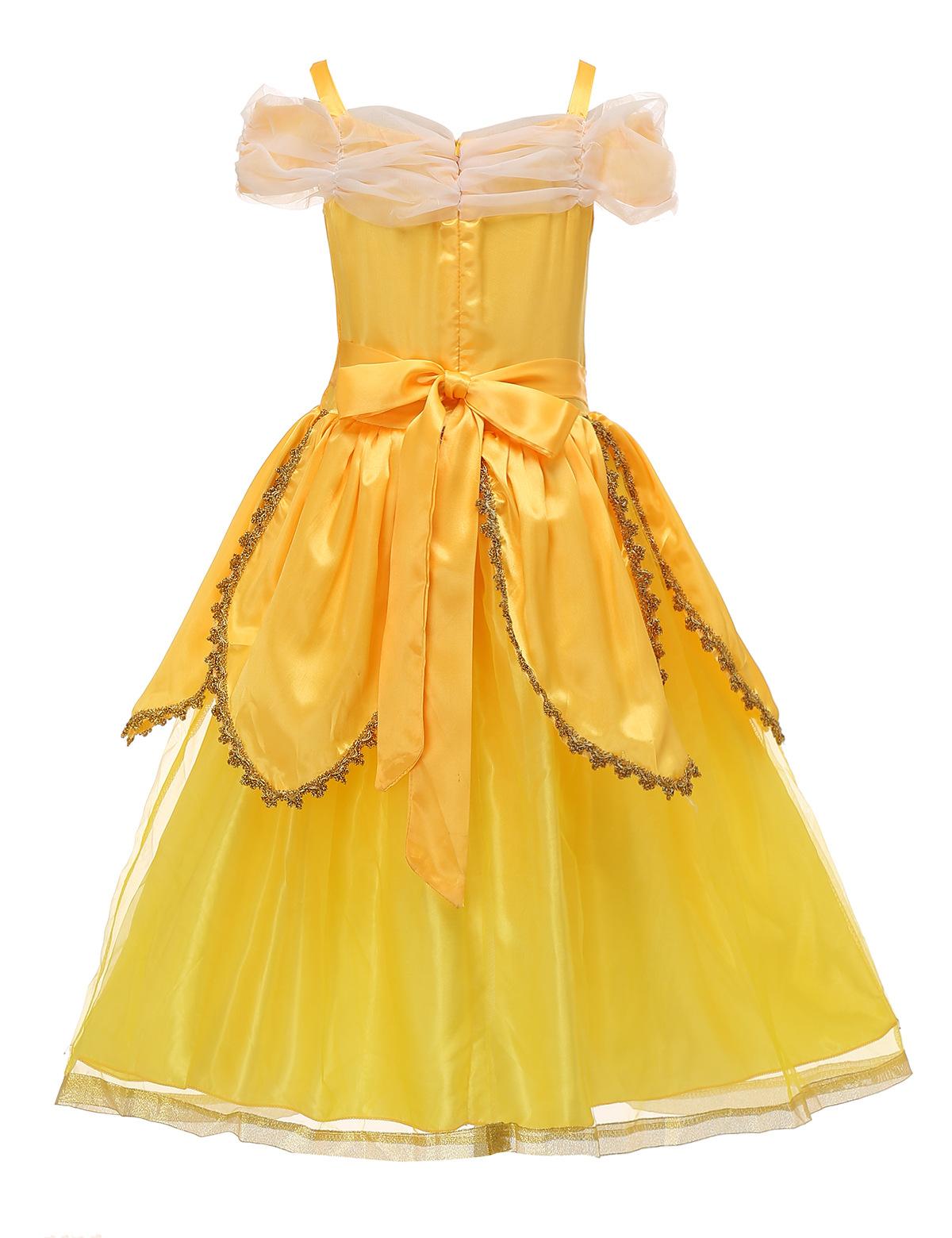 Disfraz del Día del Niño 2021, vestido de princesa Bella y la Bestia, vestido amarillo de princesa Bella para Halloween.