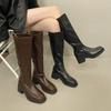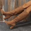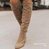 Botas largas de moda de tacón grueso, estilo europeo y americano de comercio exterior, adelgazantes, de gamuza, por encima de la rodilla, con cremallera lateral, de tacón alto, para mujer, wish