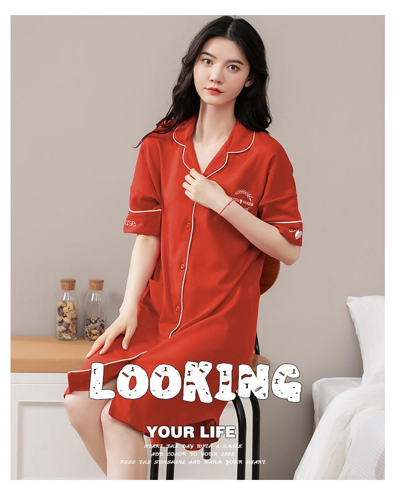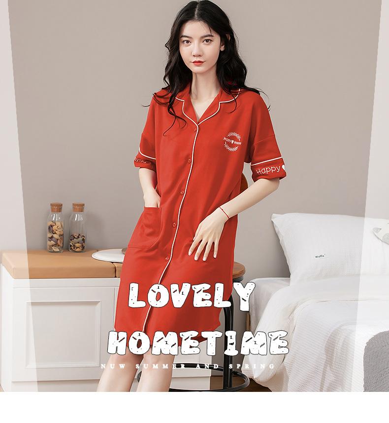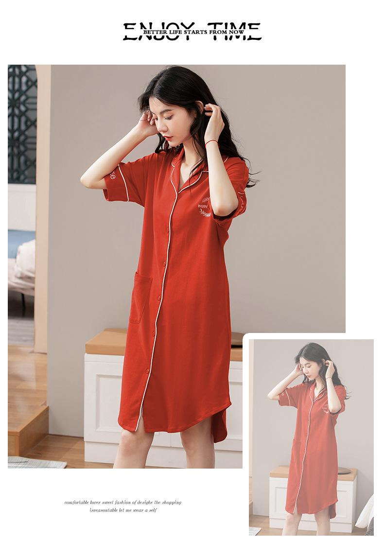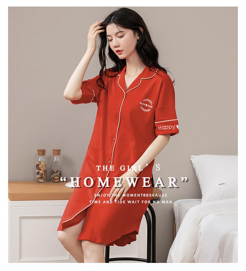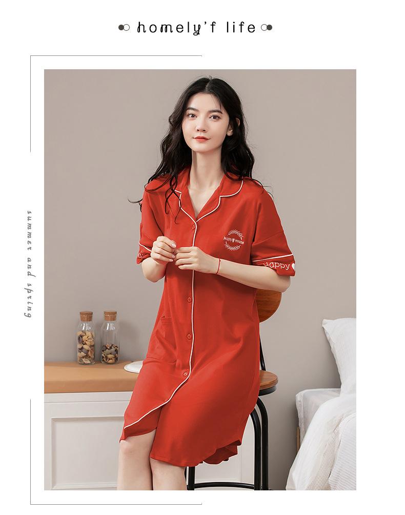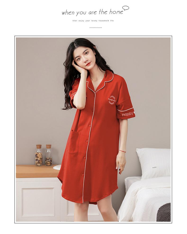 Camisón de algodón de verano para mujer, cárdigan de manga corta, para salir a casa, vestido fino informal holgado de longitud media