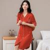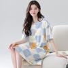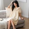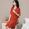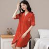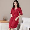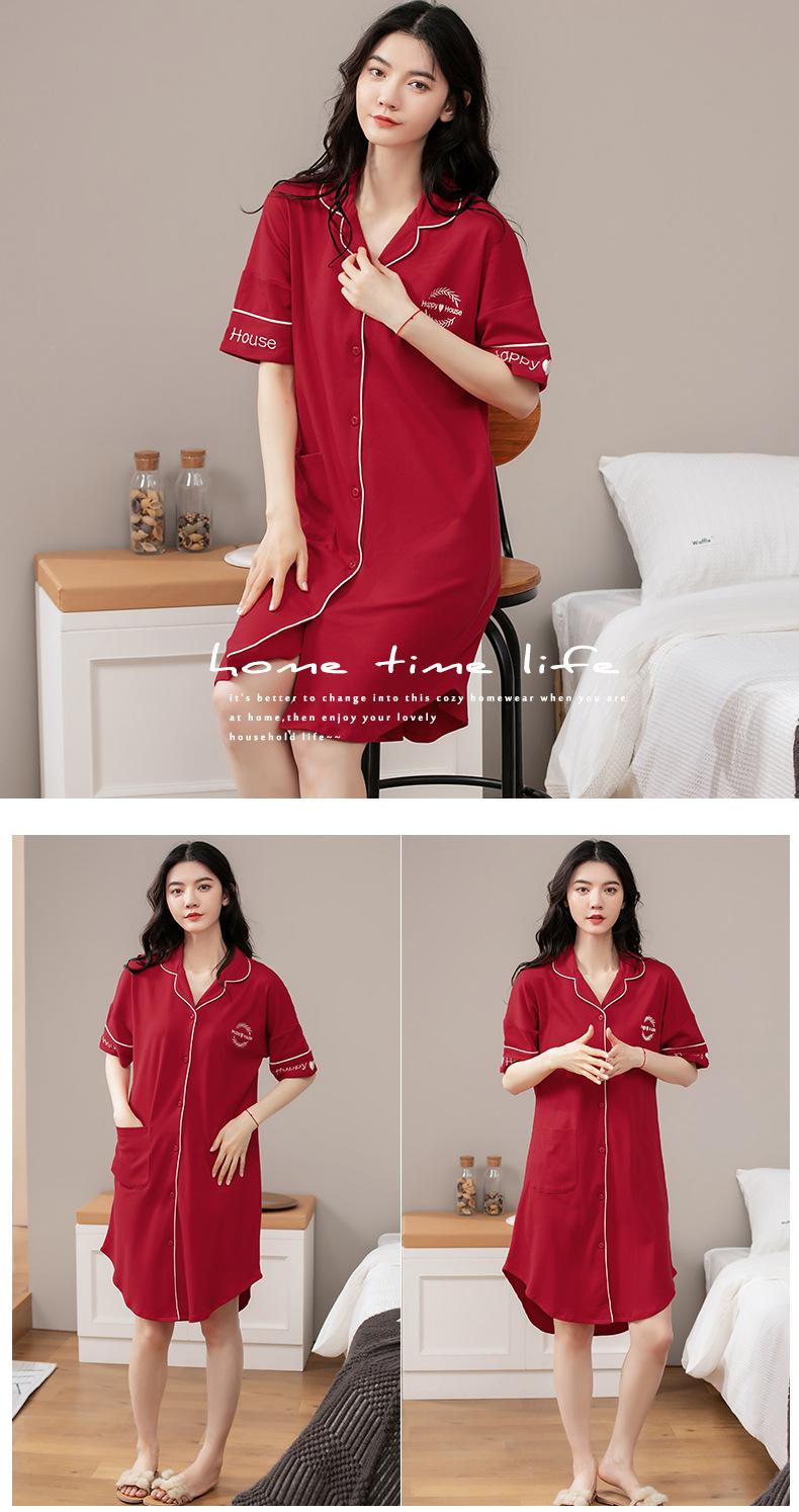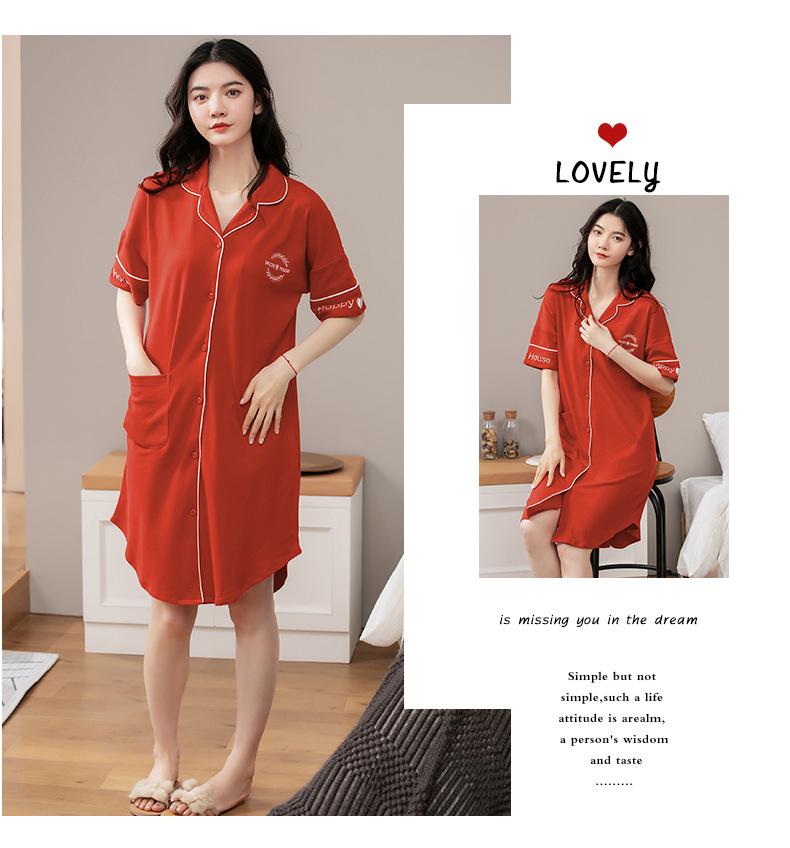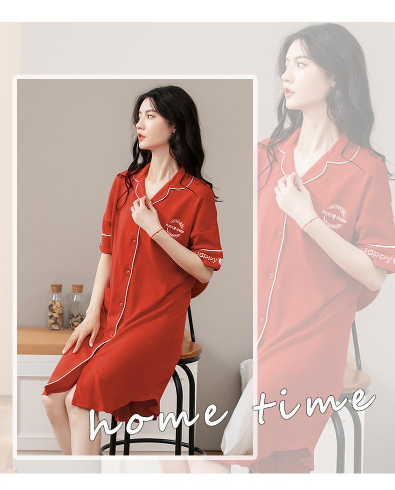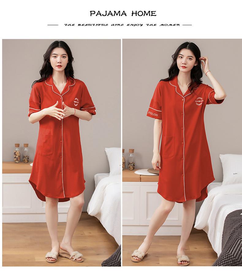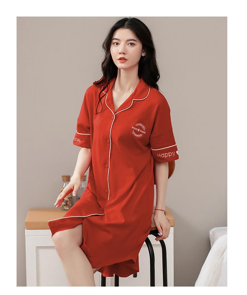 Camisón de algodón de verano para mujer, cárdigan de manga corta, para salir a casa, vestido fino informal holgado de longitud media