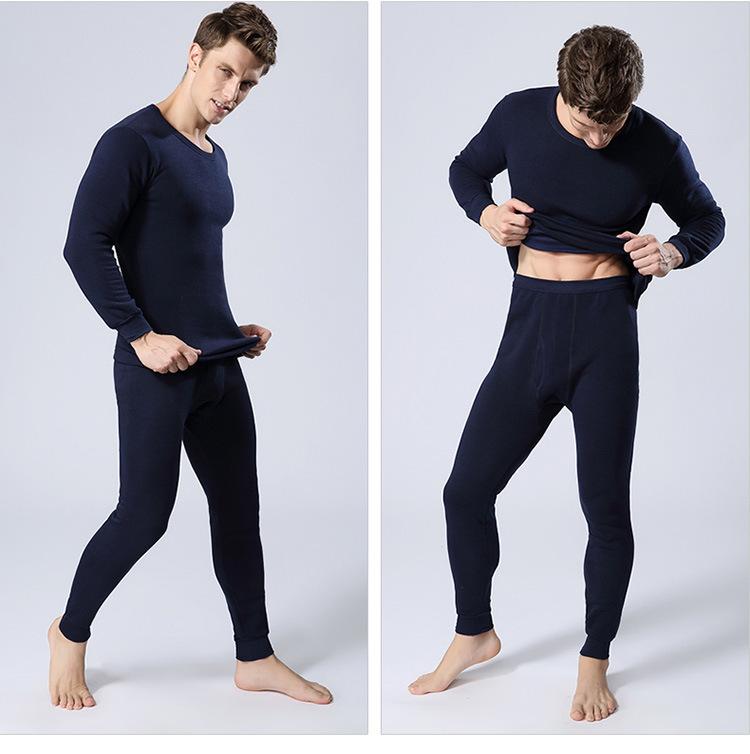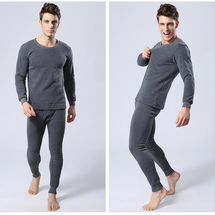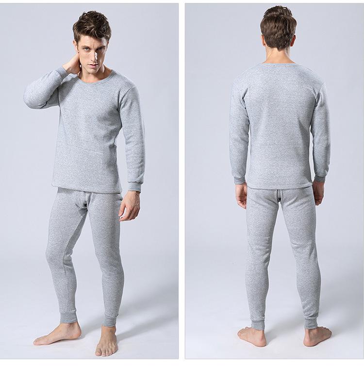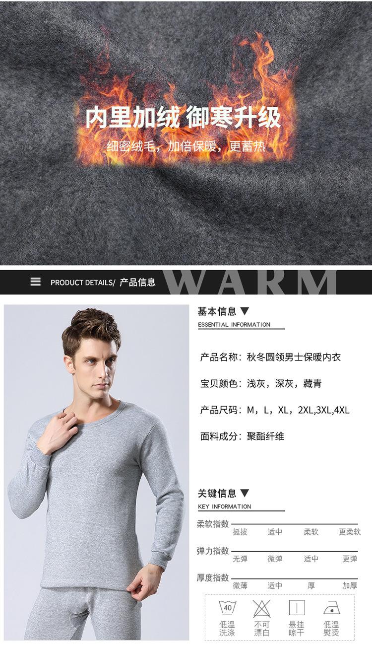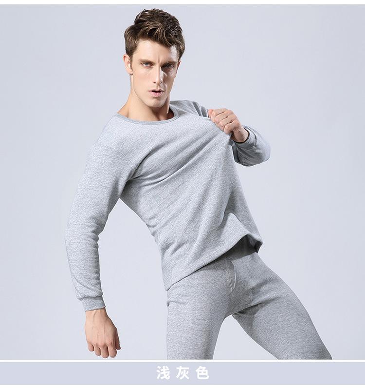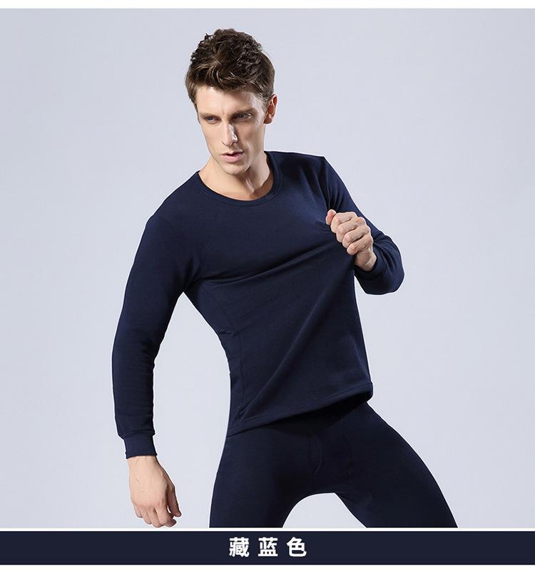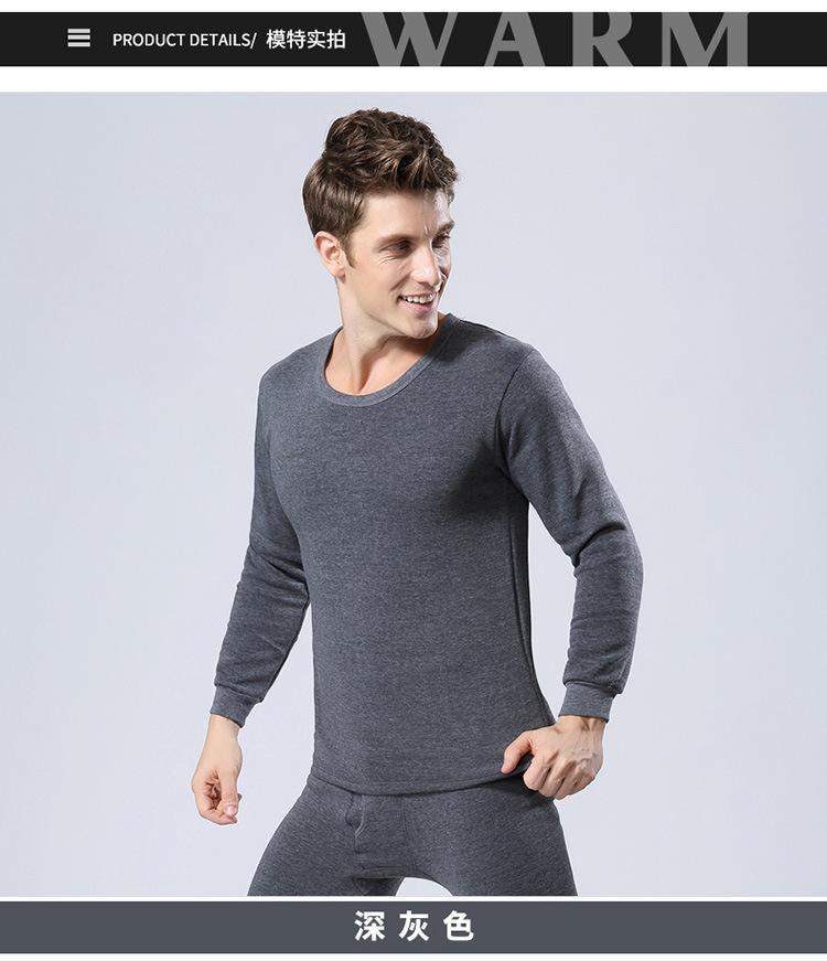 Ropa interior térmica de cuello redondo para hombre, suéter de algodón grueso con forro polar, ropa de otoño, pantalones de otoño, traje, camisa básica juvenil, corte ajustado.