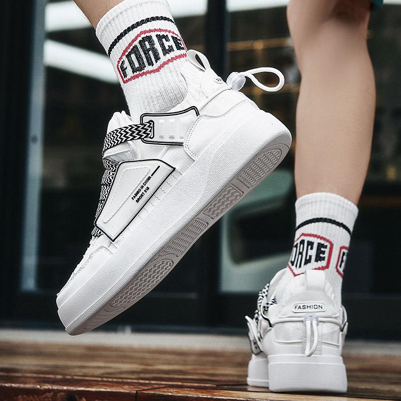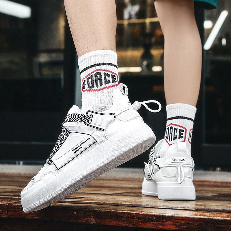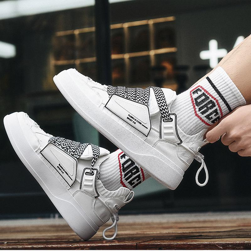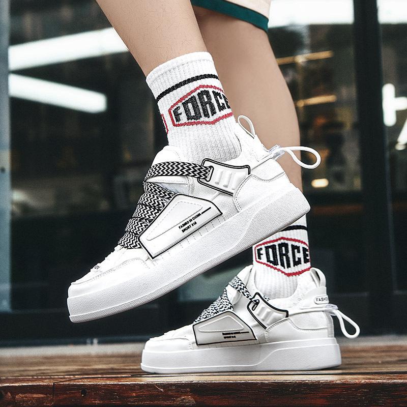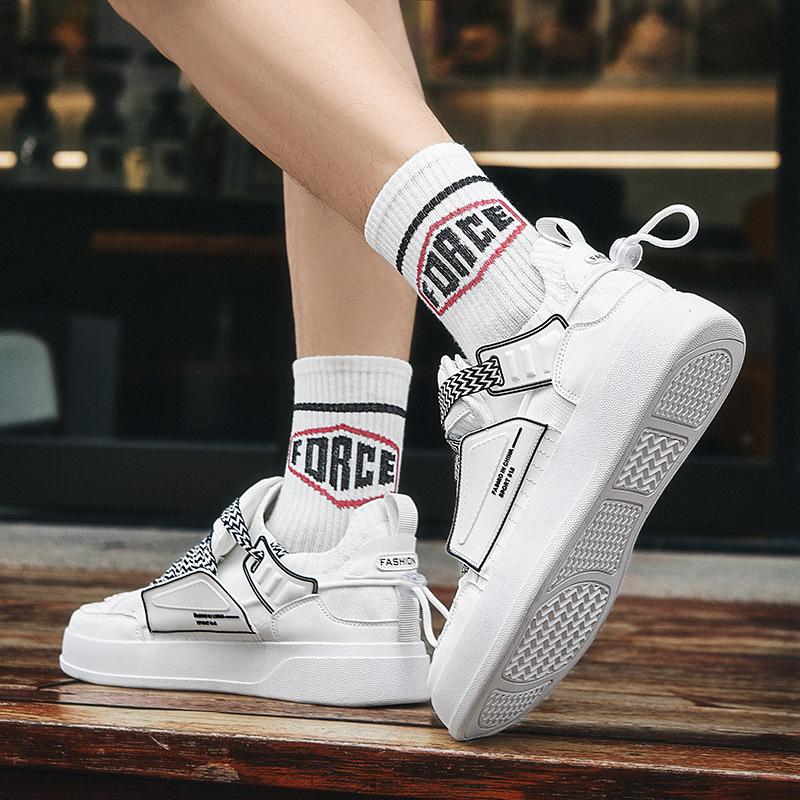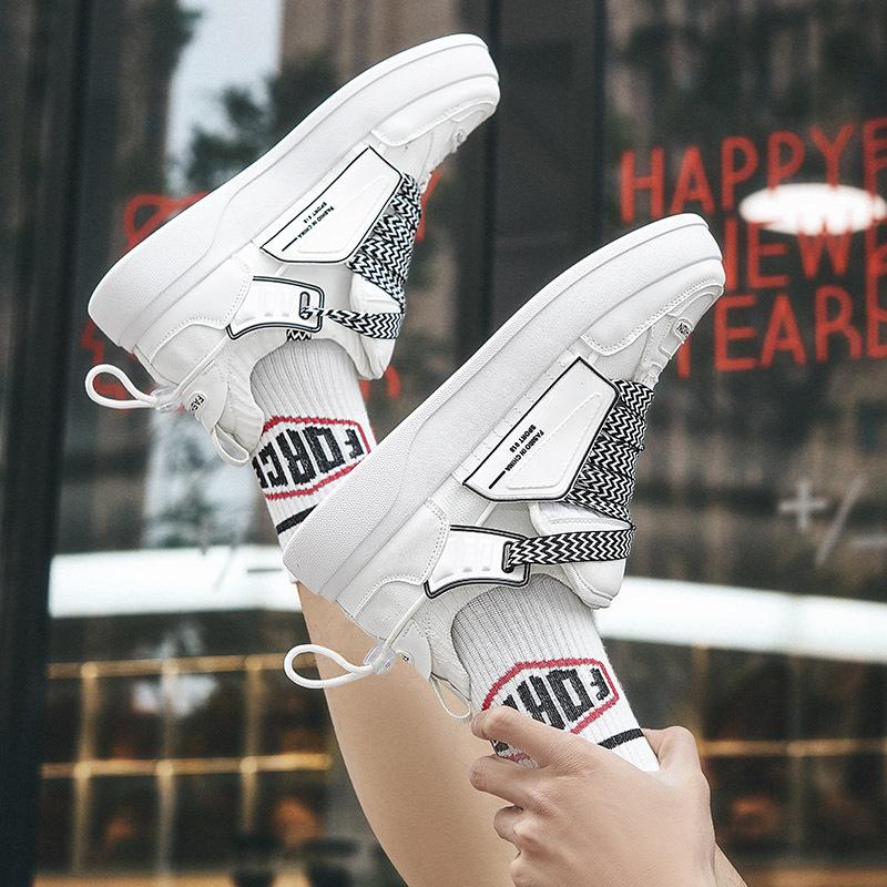 Zapatos blancos de caña alta para hombre, zapatillas informales de moda, versátiles, zapatos de tabla para hombre, zapatos de viaje ligeros y modernos, zapatos de estudiante para hombre