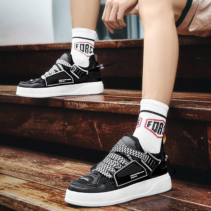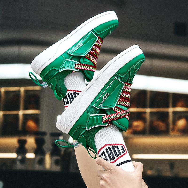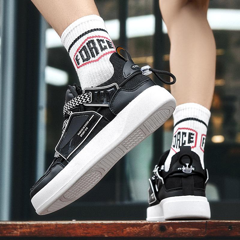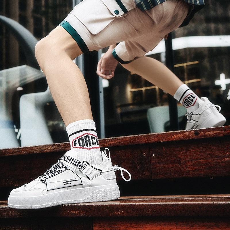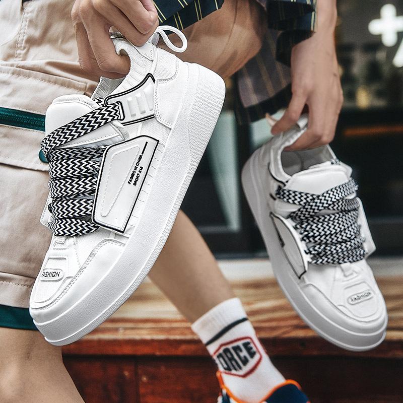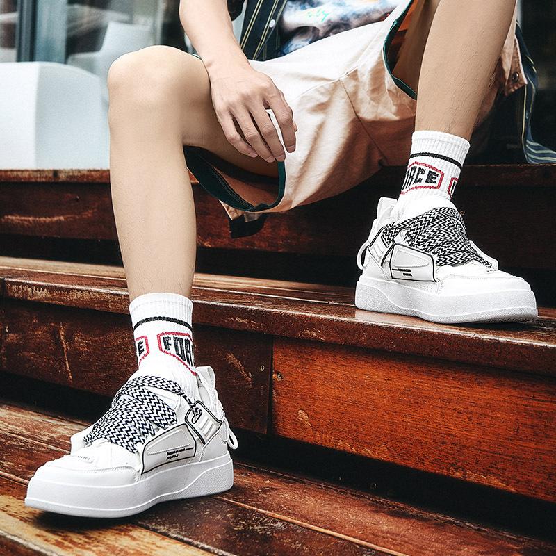 Zapatos blancos de caña alta para hombre, zapatillas informales de moda, versátiles, zapatos de tabla para hombre, zapatos de viaje ligeros y modernos, zapatos de estudiante para hombre