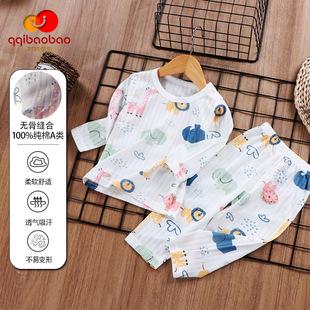 Conjunto de ropa para el hogar para niños algodón aire ropa para aire acondicionado algodón puro tipo A sin costuras primavera y otoño niños y niñas niños medianos y grandes pijamas de verano