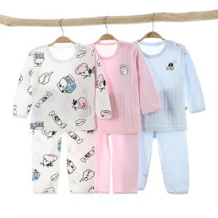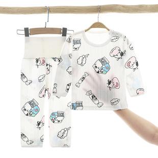 Traje de ropa para el hogar para niños de algodón puro tipo A sin costuras de cintura alta ropa para aire acondicionado 0-3 años ropa de verano para bebés pijamas para hombres y mujeres