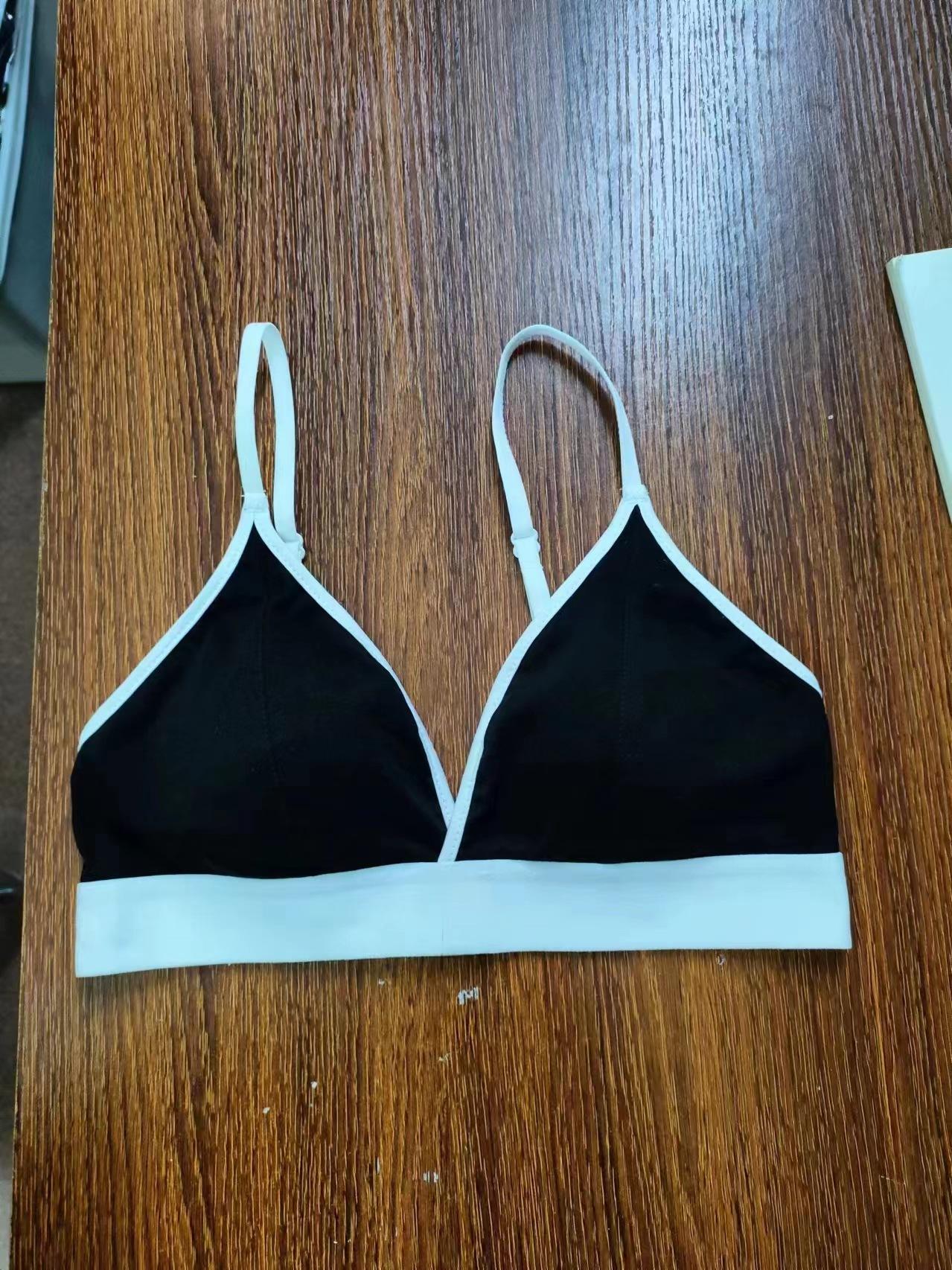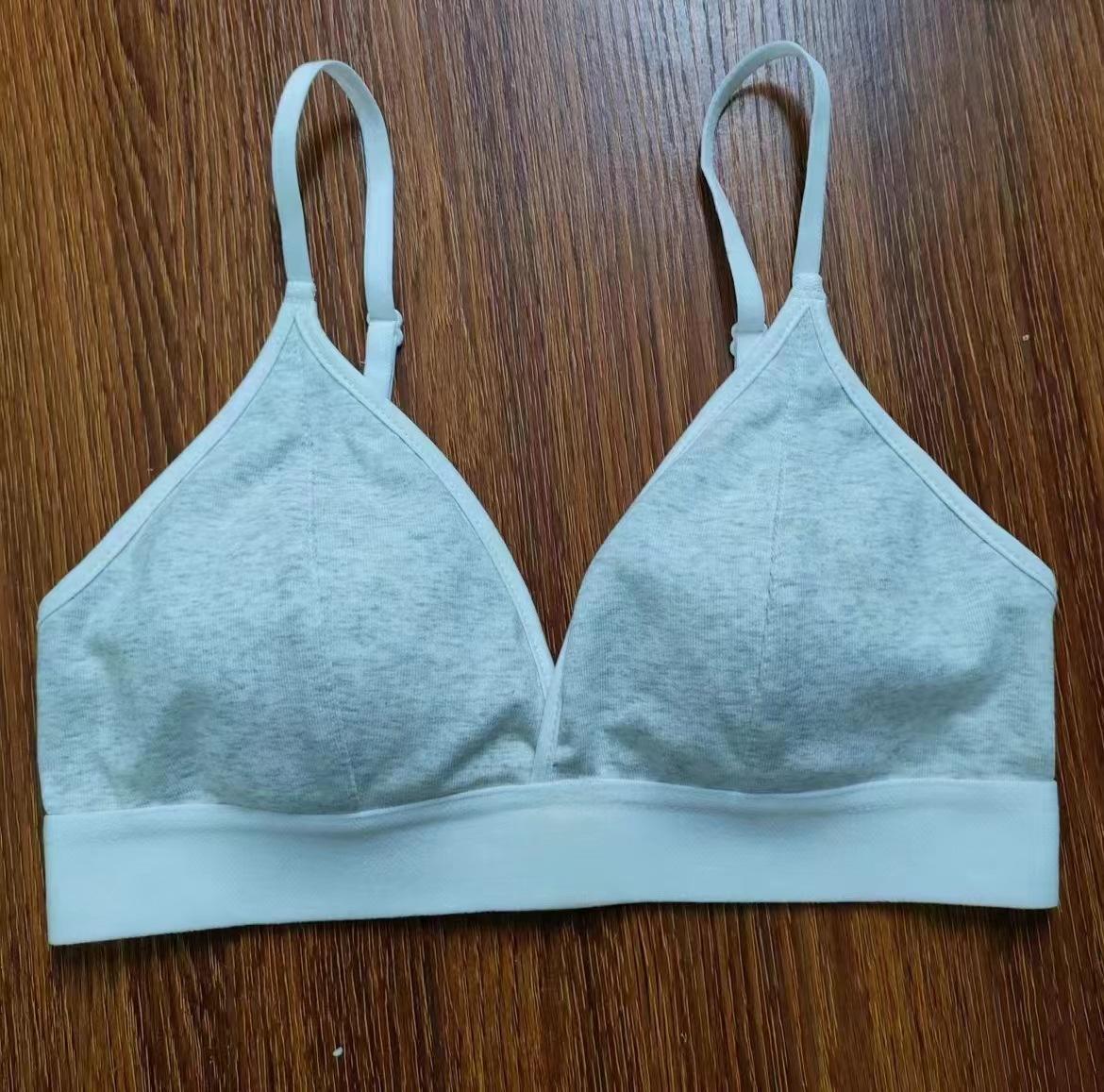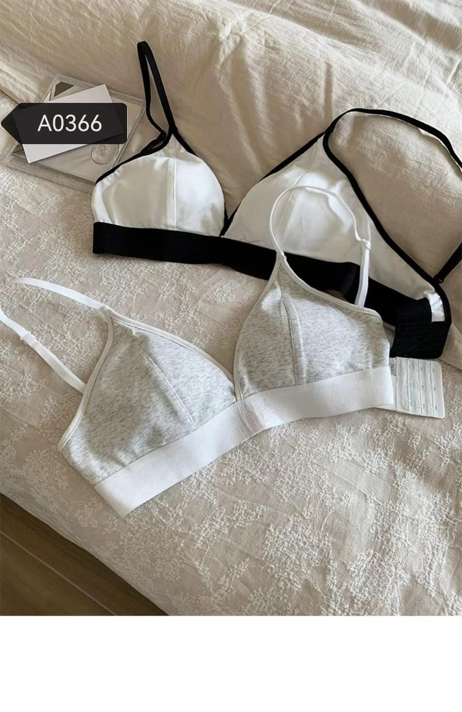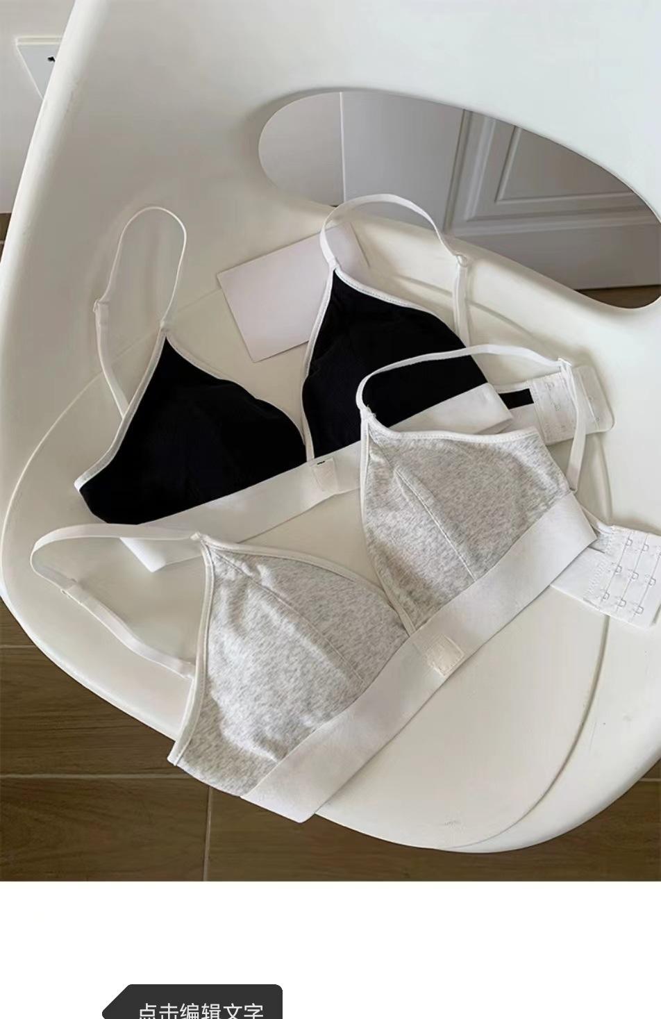 Sujetador de copa triangular sexy francés de color sólido, cómodo e inalámbrico, con tirantes finos para los hombros y hebilla frontal, tendencia