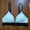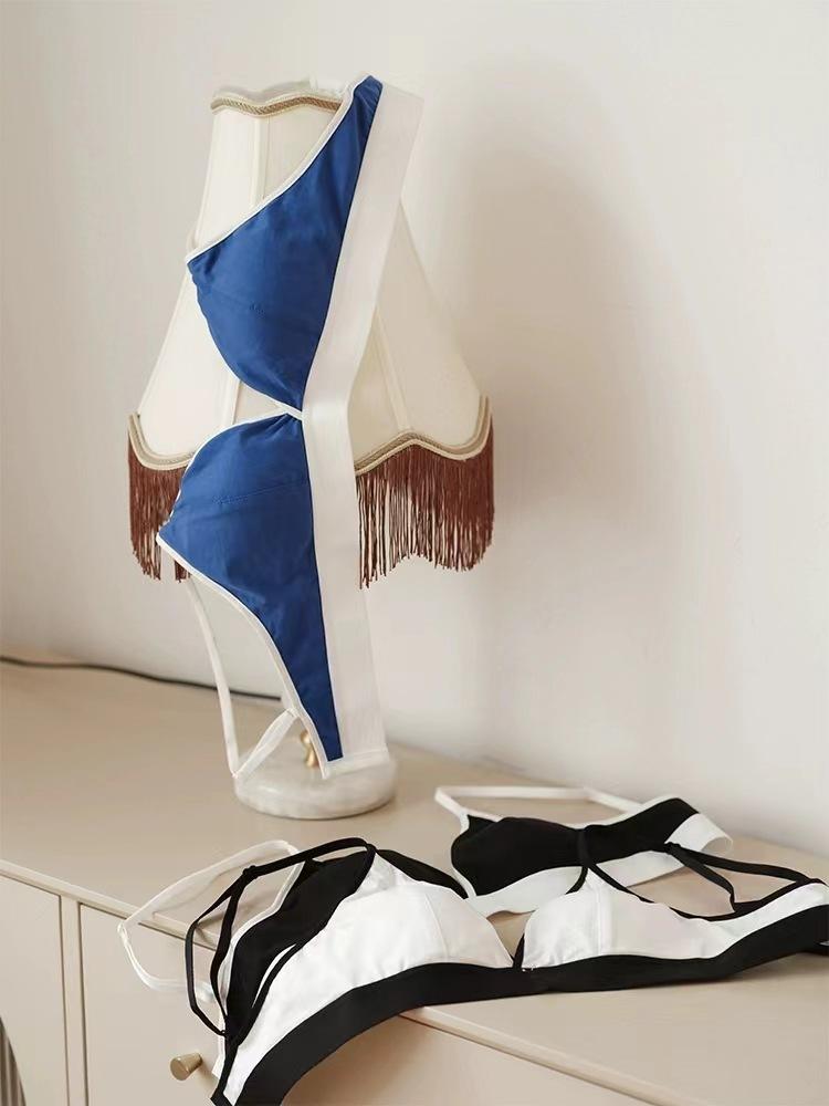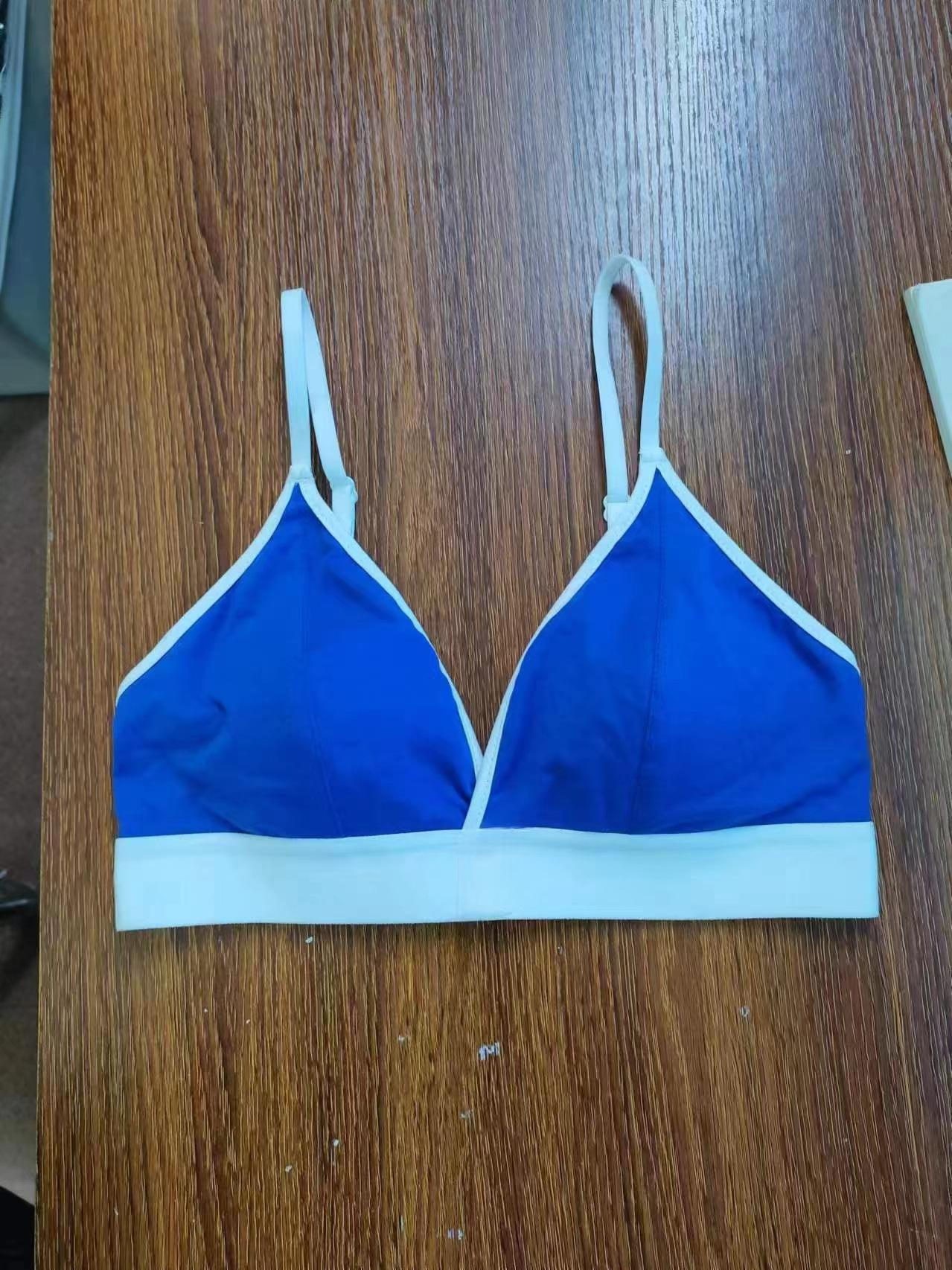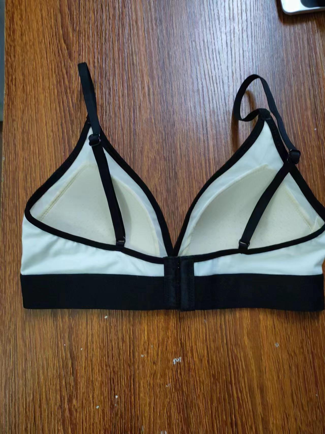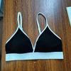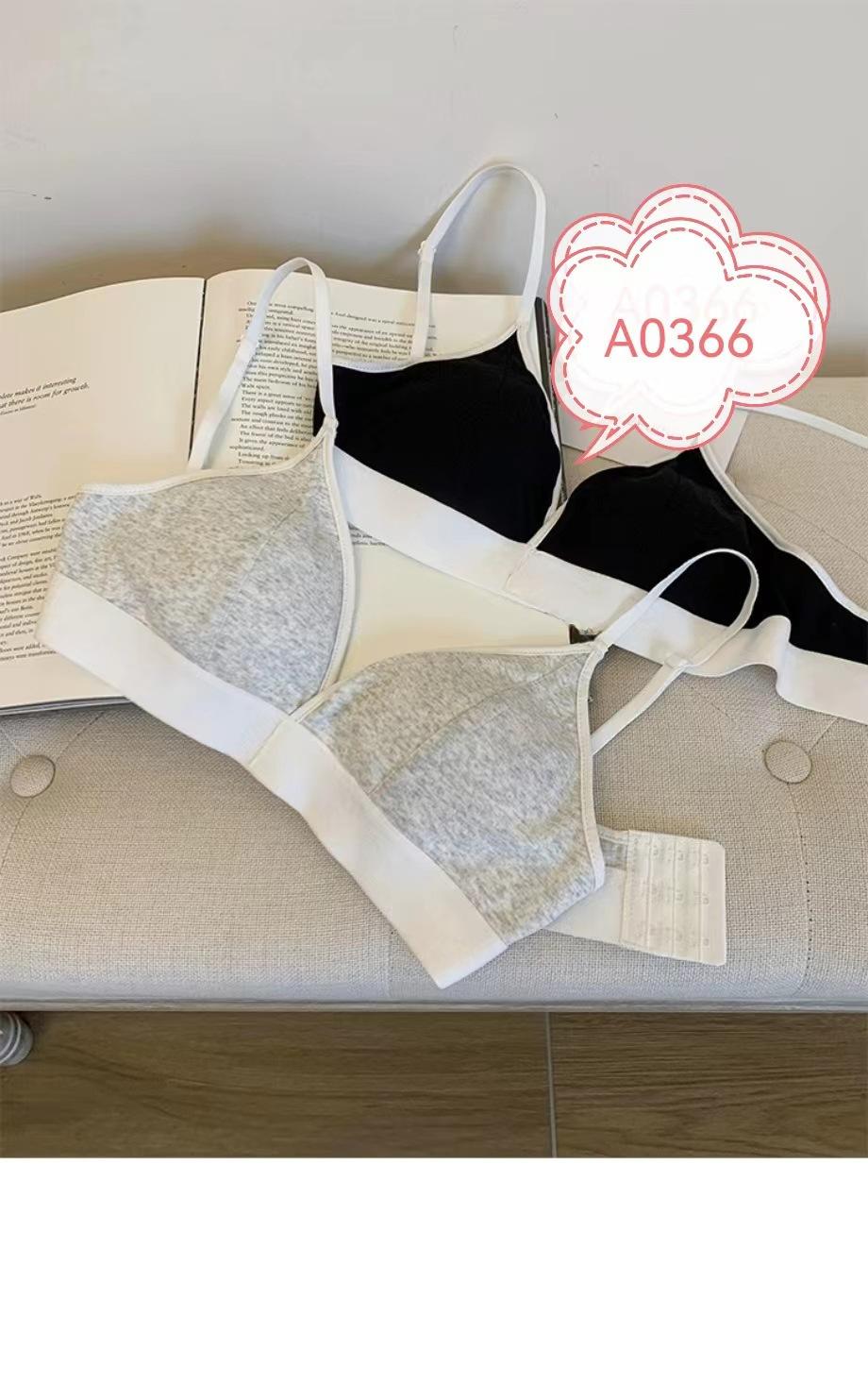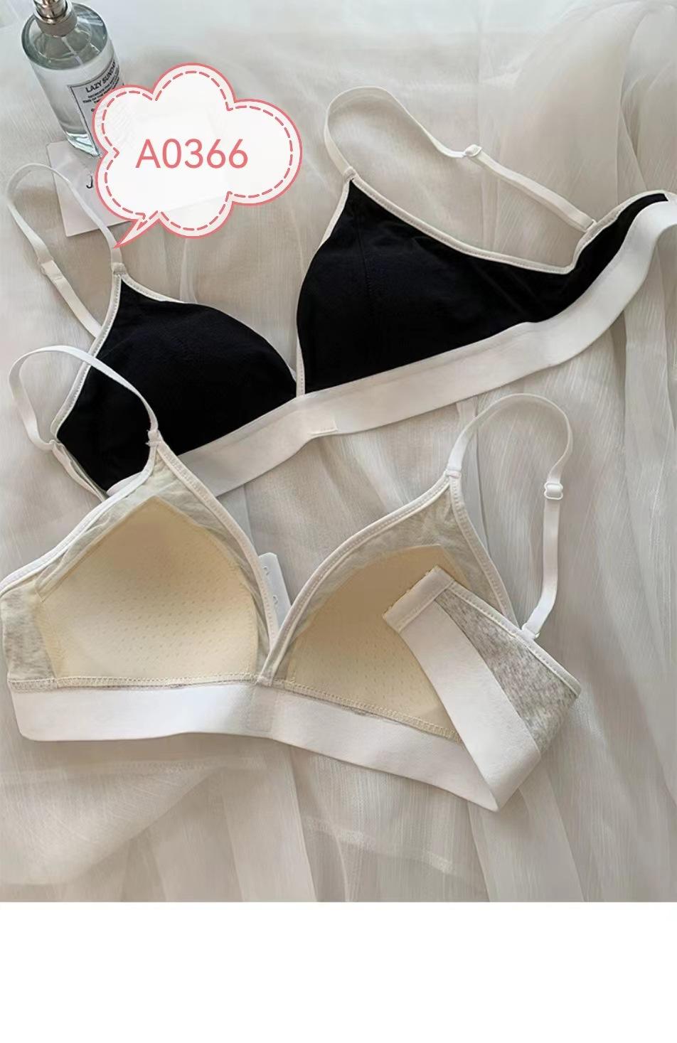 Sujetador de copa triangular sexy francés de color sólido, cómodo e inalámbrico, con tirantes finos para los hombros y hebilla frontal, tendencia