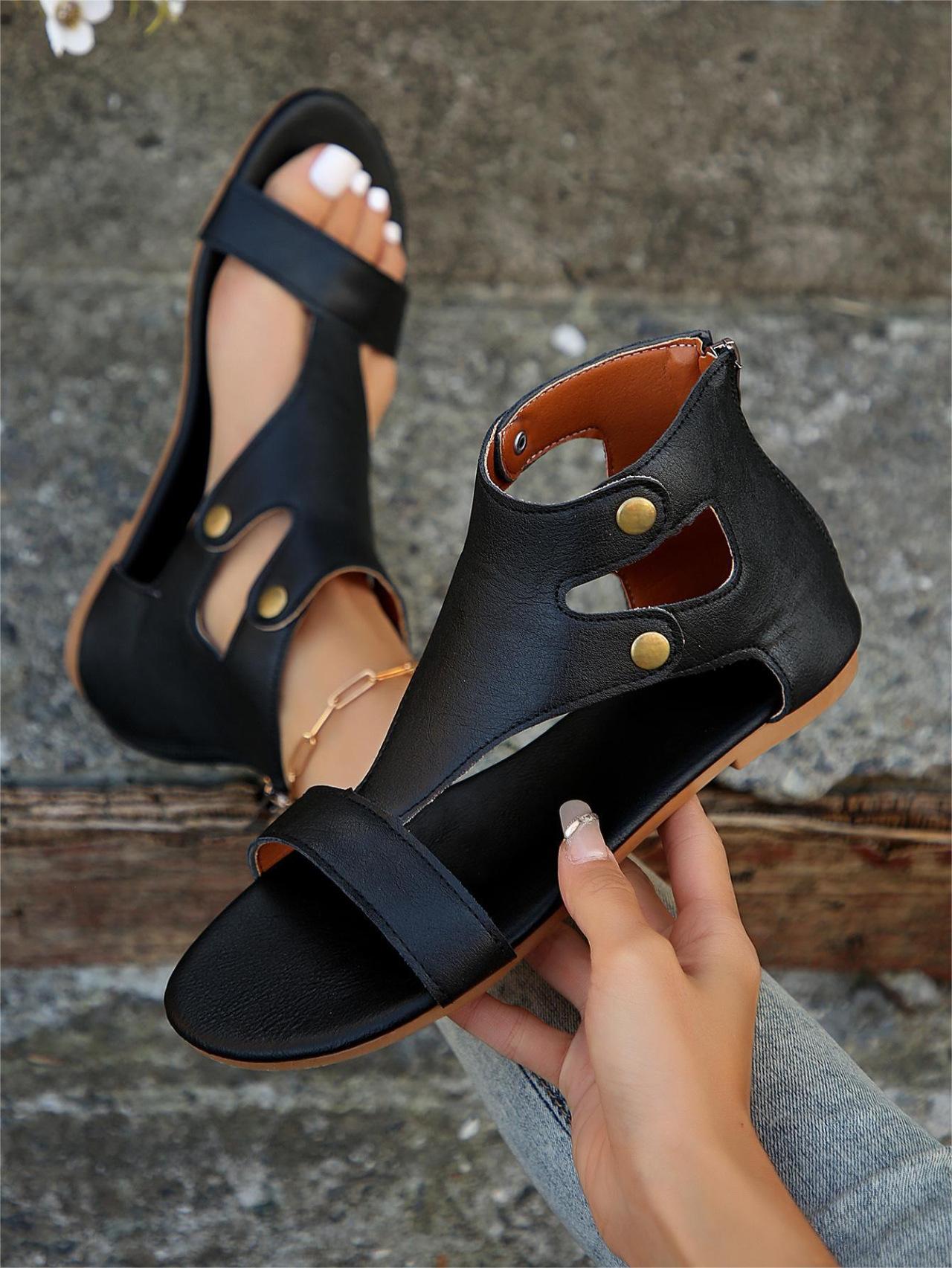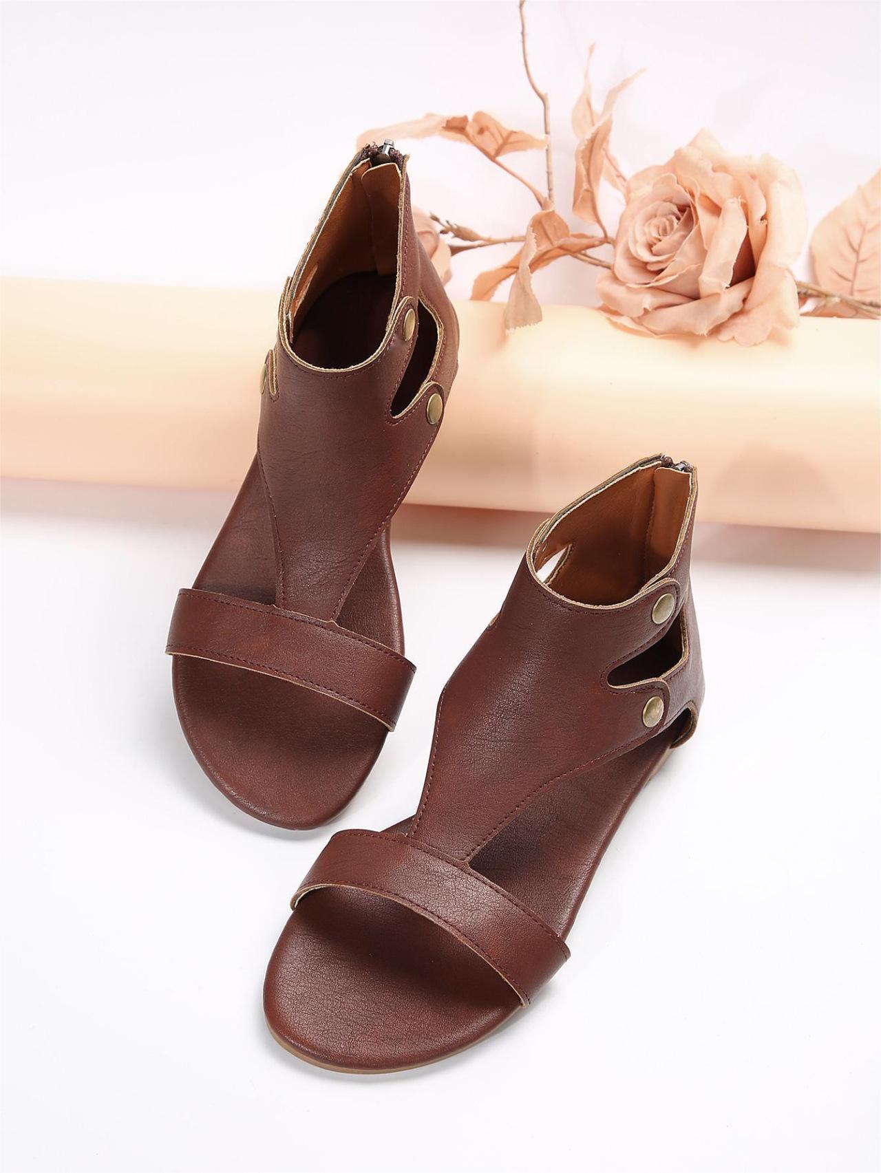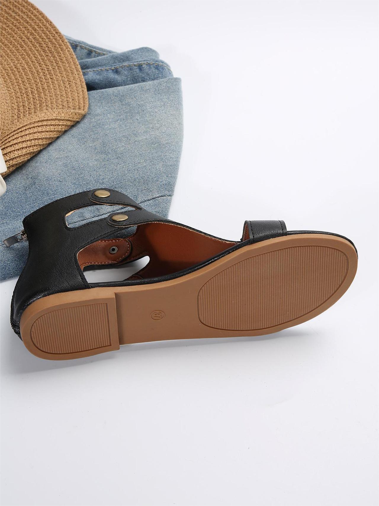 Sandalias planas de punta abierta hueca de comercio exterior europeo y americano con cremallera trasera para mujer, talla grande transfronteriza, sandalias de estilo retro, zapatos romanos