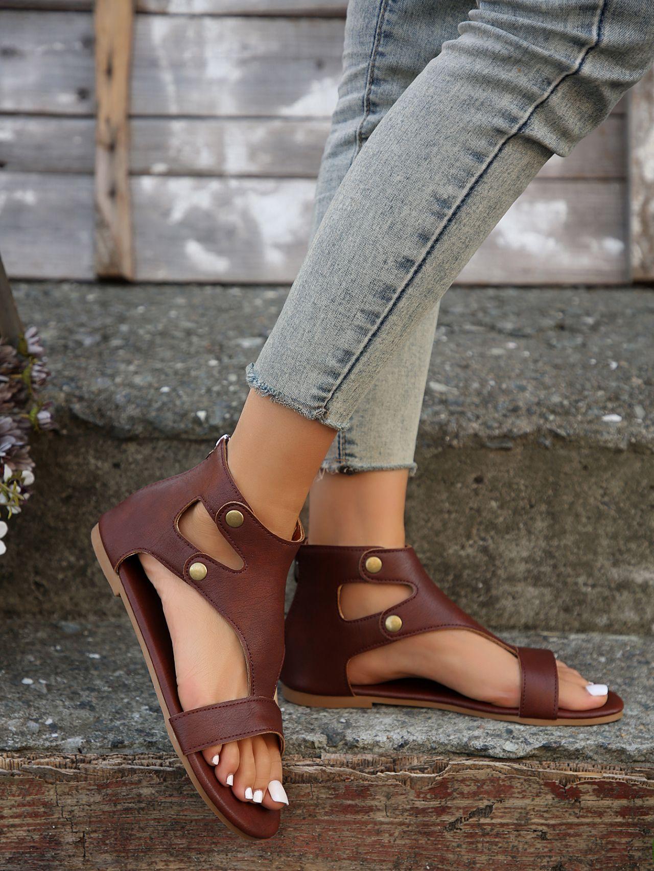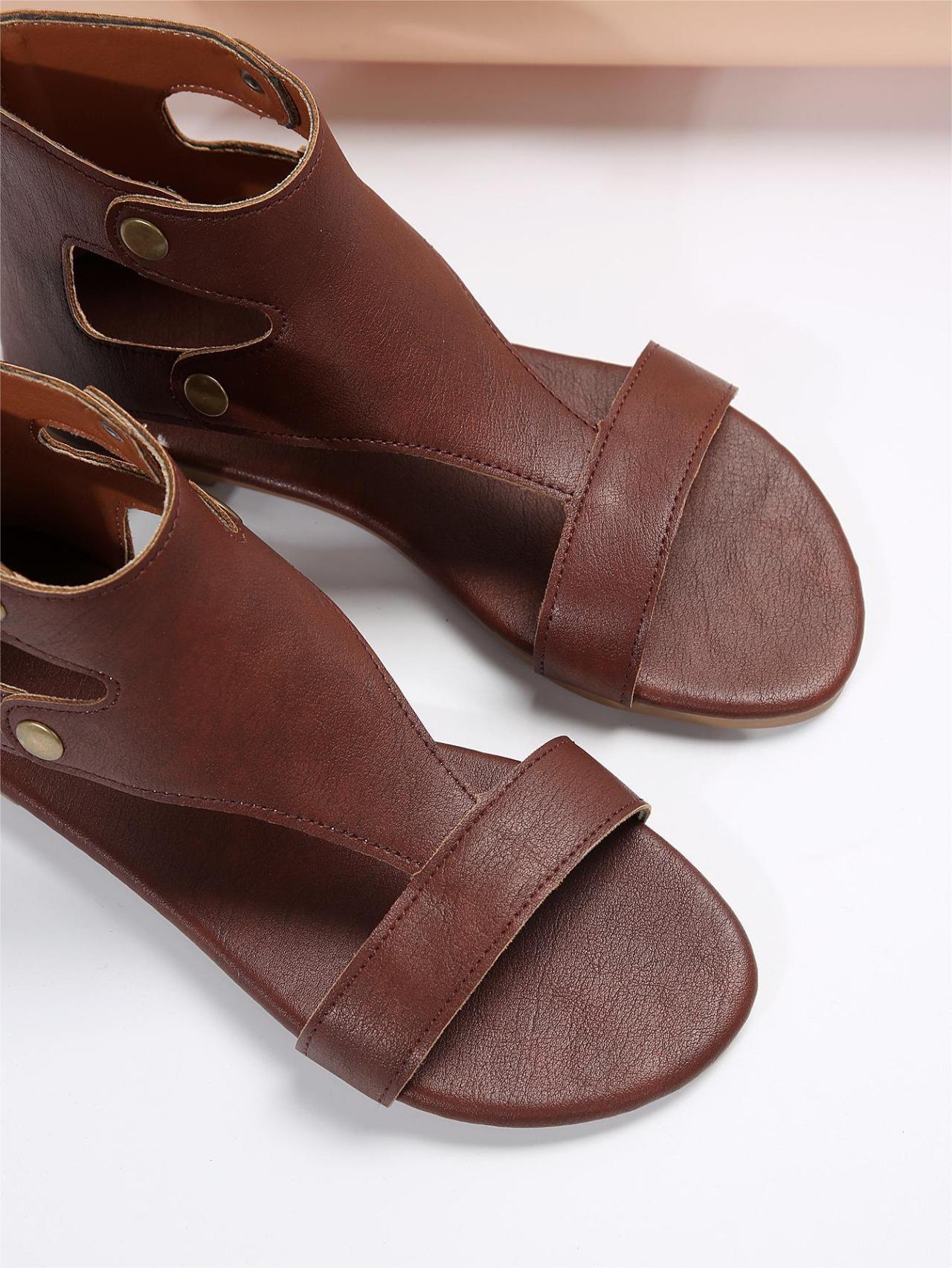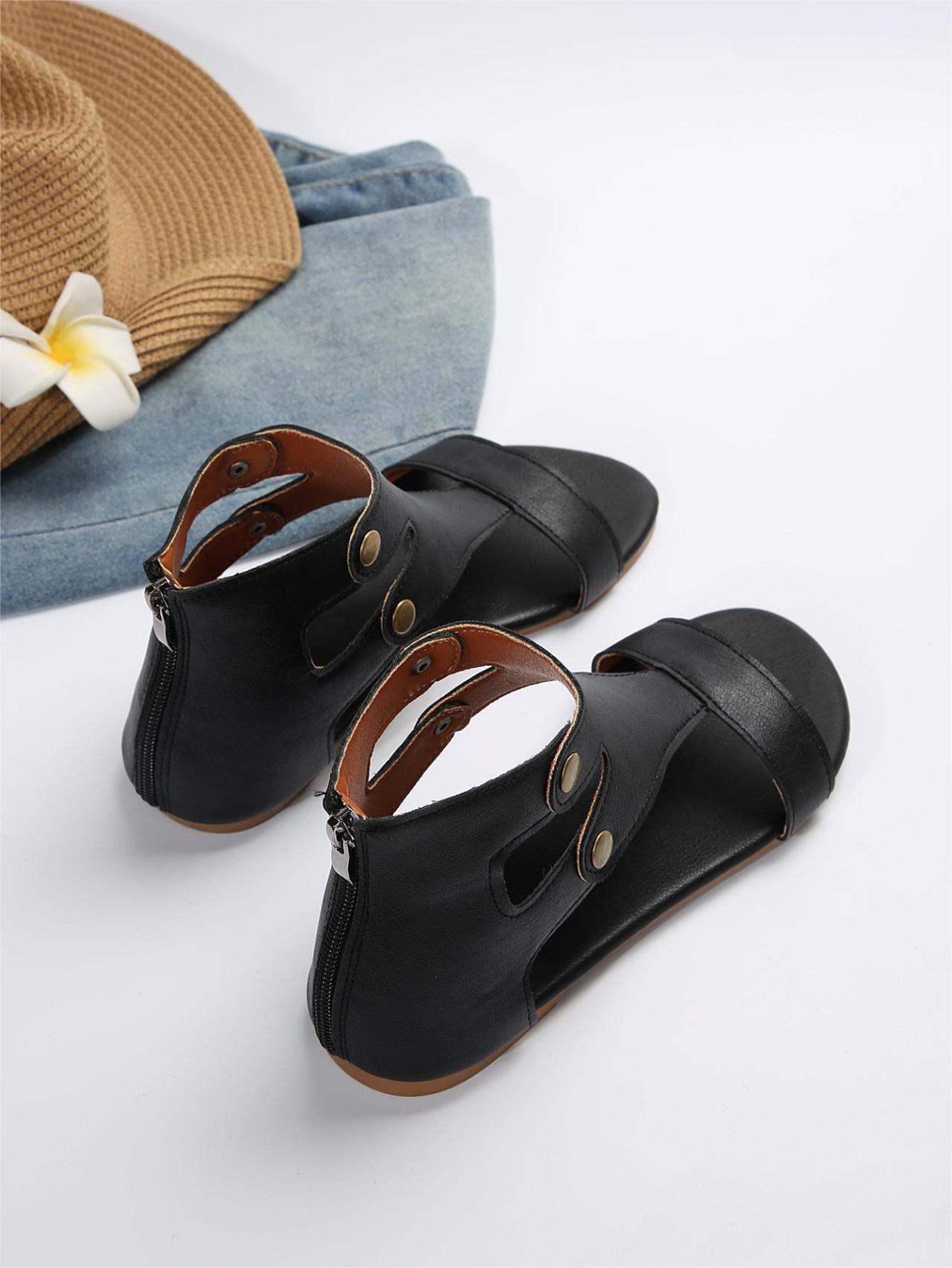 Sandalias planas de punta abierta hueca de comercio exterior europeo y americano con cremallera trasera para mujer, talla grande transfronteriza, sandalias de estilo retro, zapatos romanos