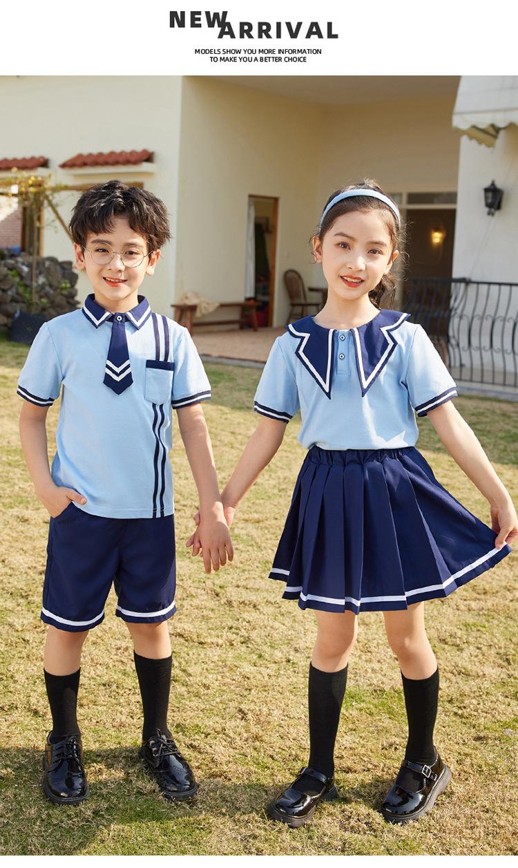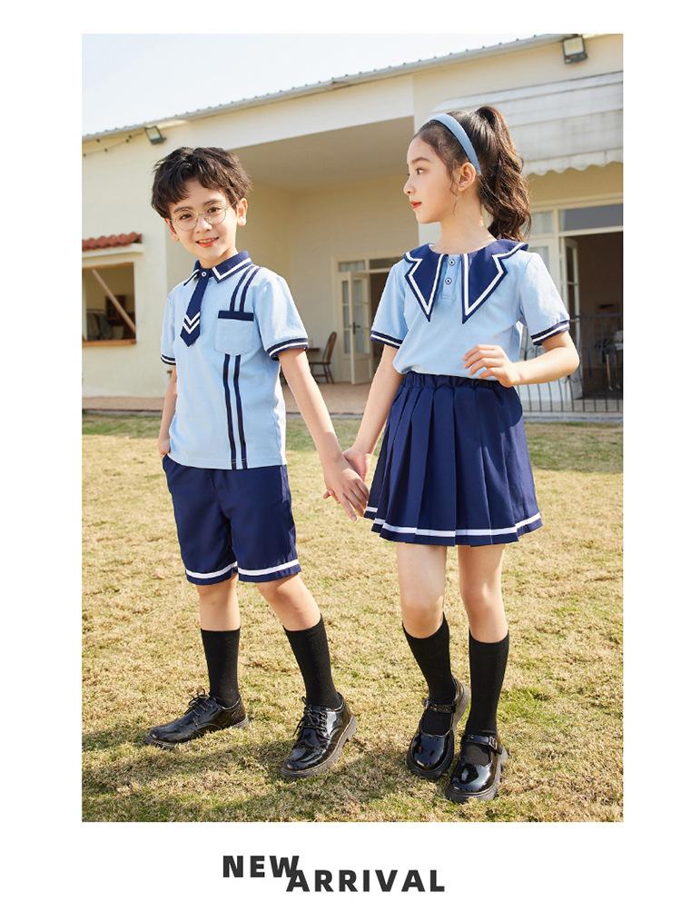 Uniforme escolar de verano de manga corta estilo academia británica para niños y niñas, estudiantes de primaria y secundaria, traje de clase.
