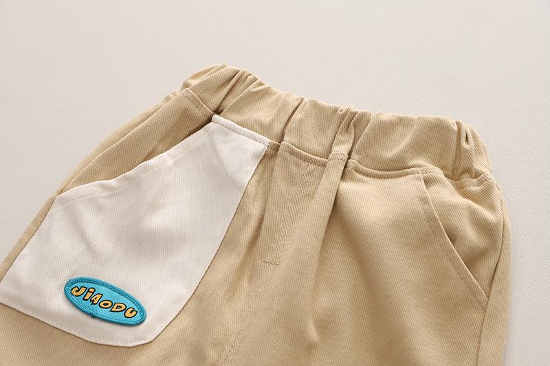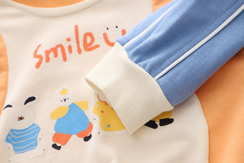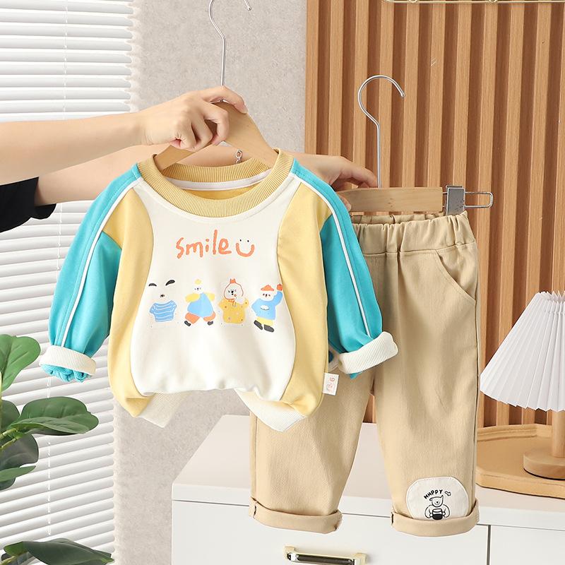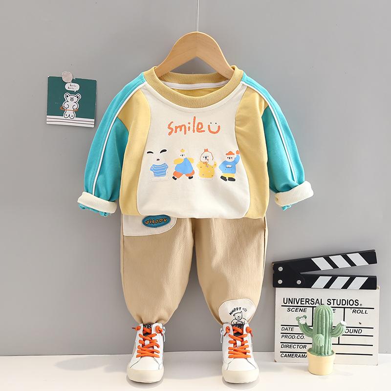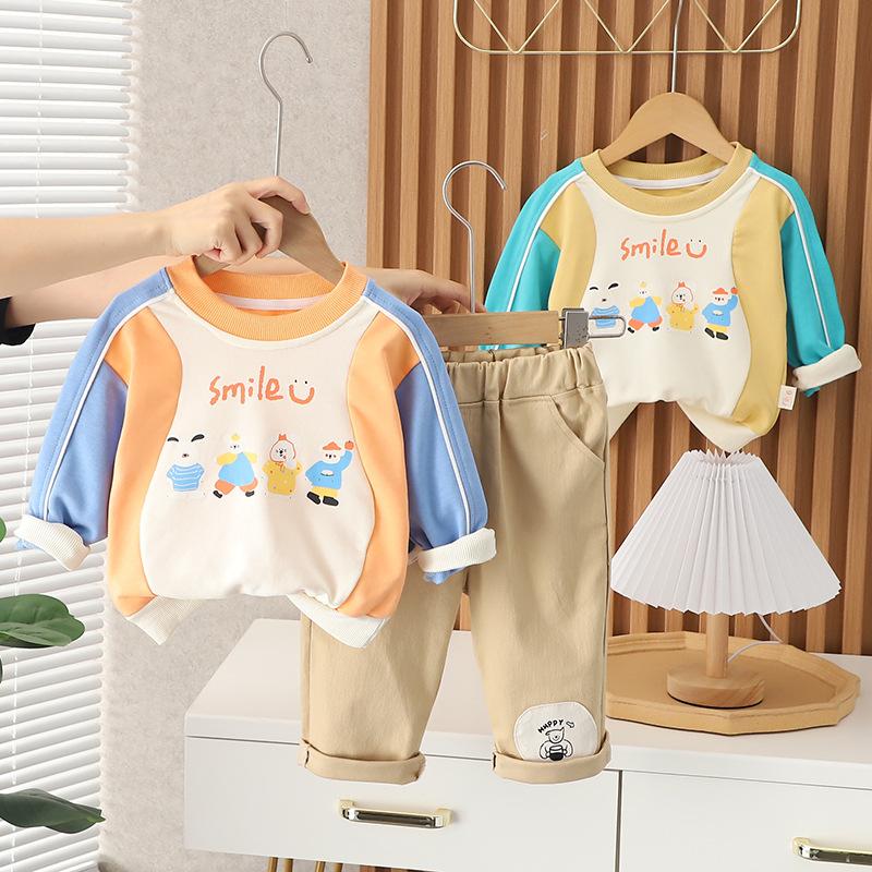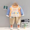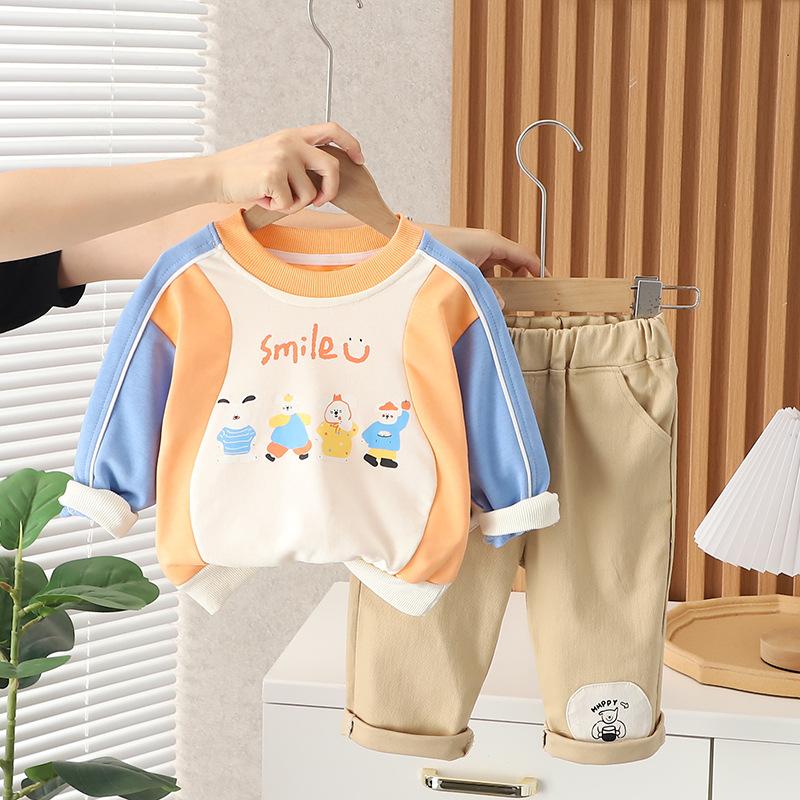 Ropa de primavera y otoño para bebé 2023 nuevo conjunto de dos piezas para niño con suéter de cuello redondo a bloques de color en contraste, traje casual para niños