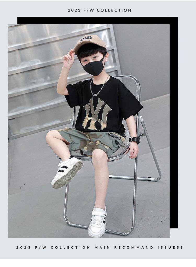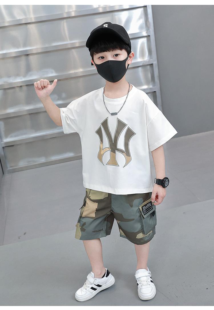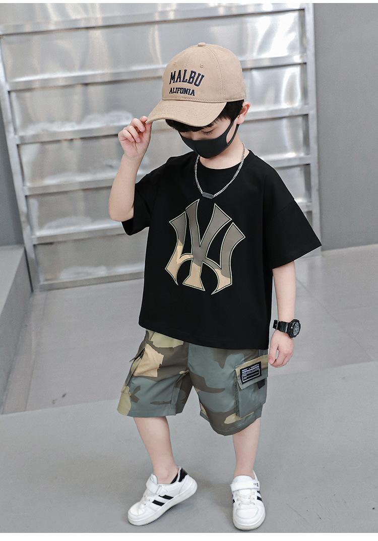 Traje Corto de Camuflaje de Verano para Niños 2025 Verano Nuevo Estilo Bebé Guapo Exportación Ropa para Niños Transfronteriza para Niños Pequeños y Medianos