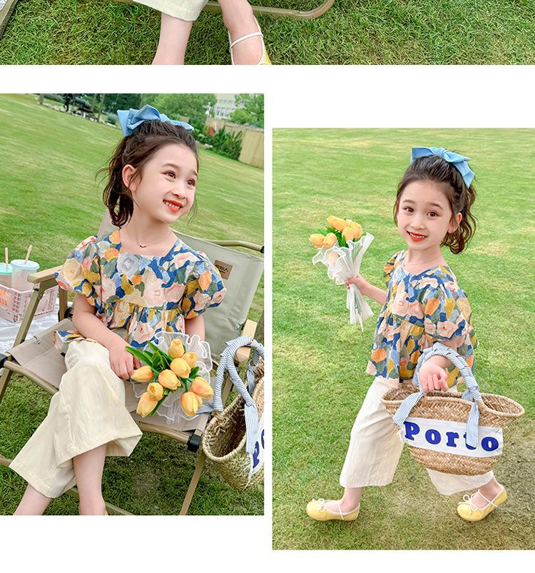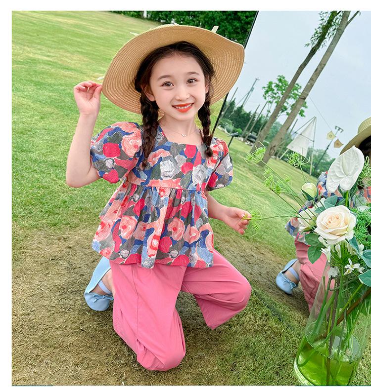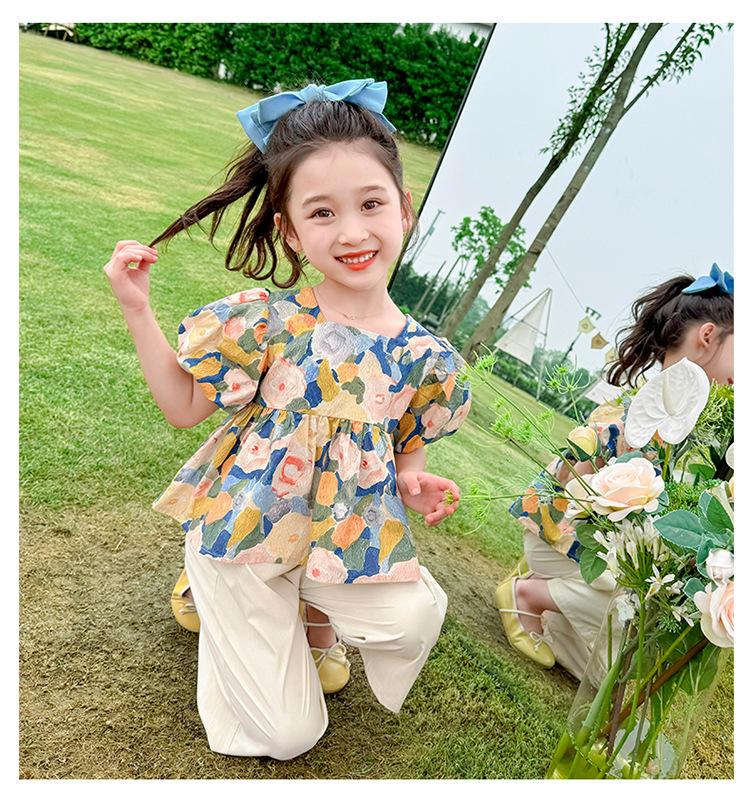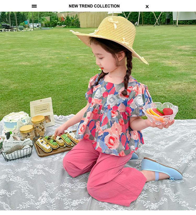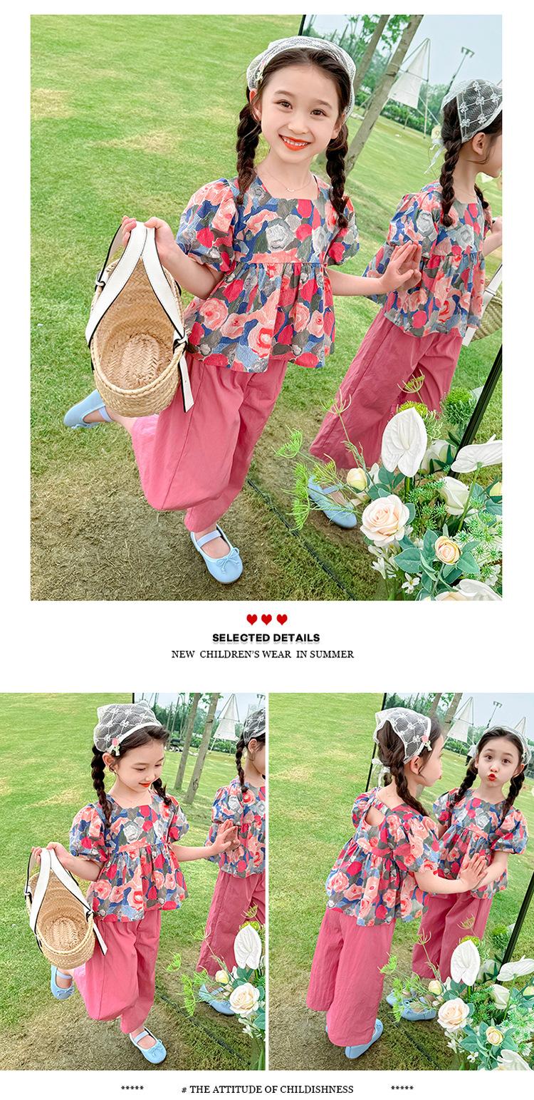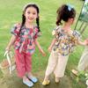 Conjunto Casual de Pantalones con Flores para Niñas Verano 2025 Nuevo Estilo Ropa de Moda para Niños Conjunto Dulce de Dos Piezas para Bebé