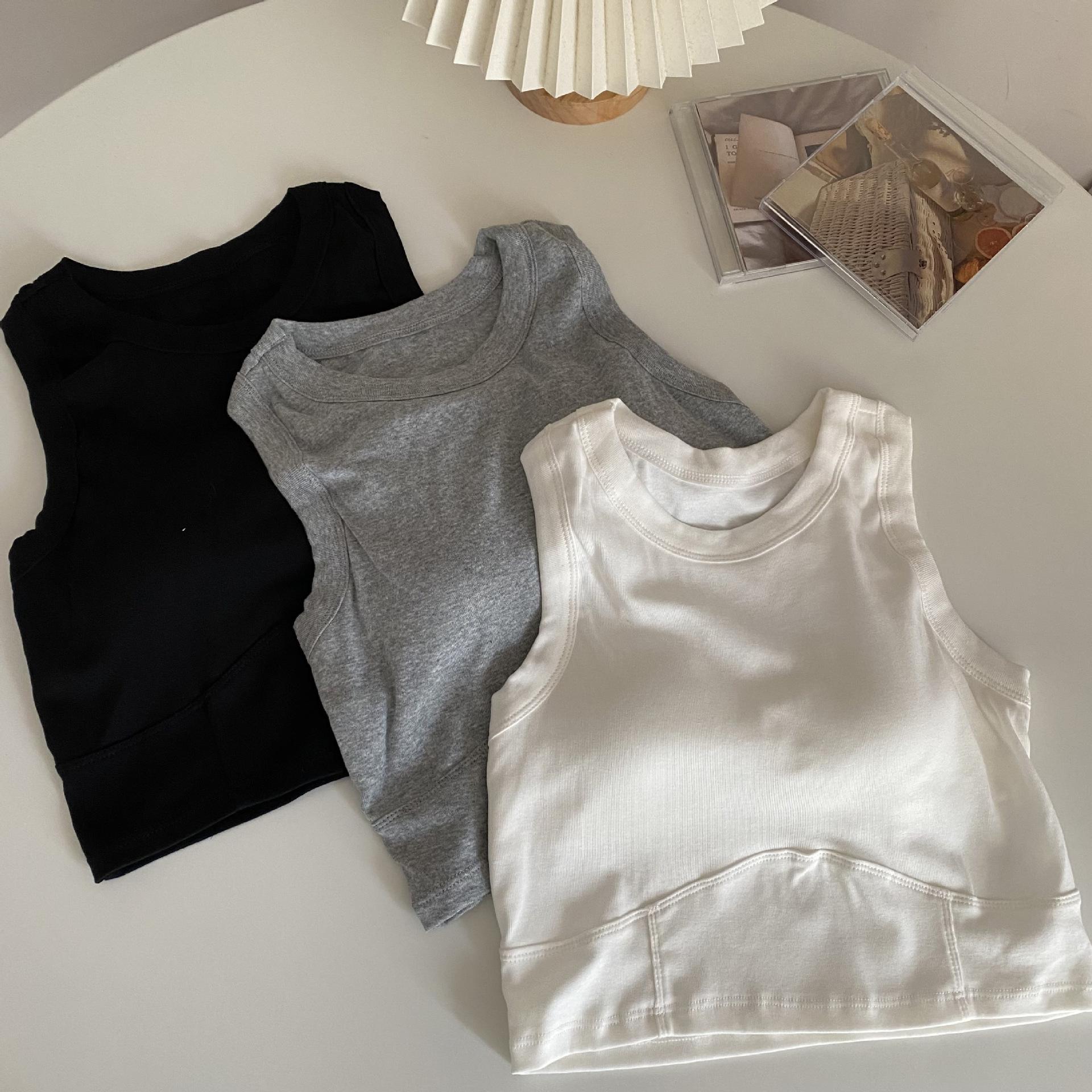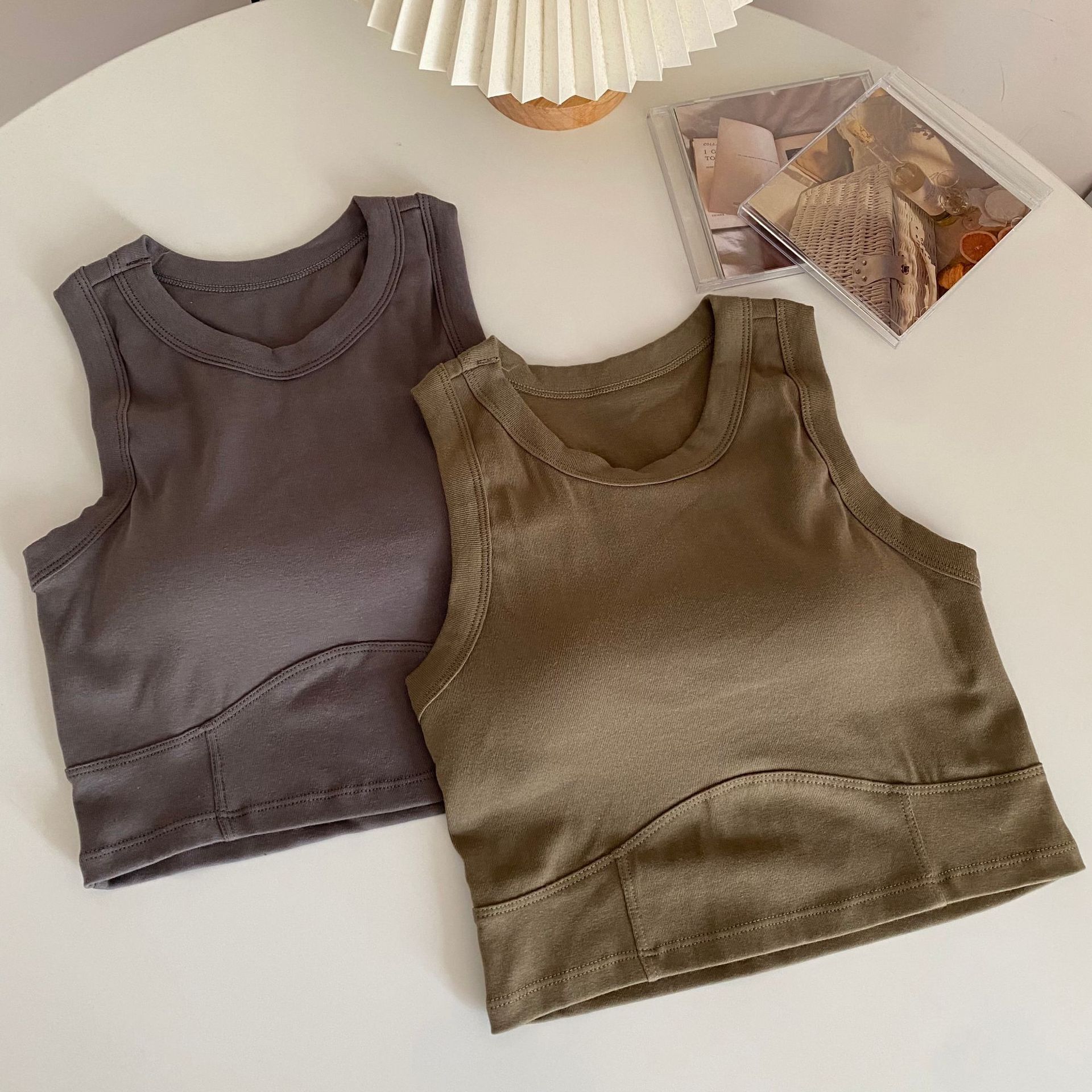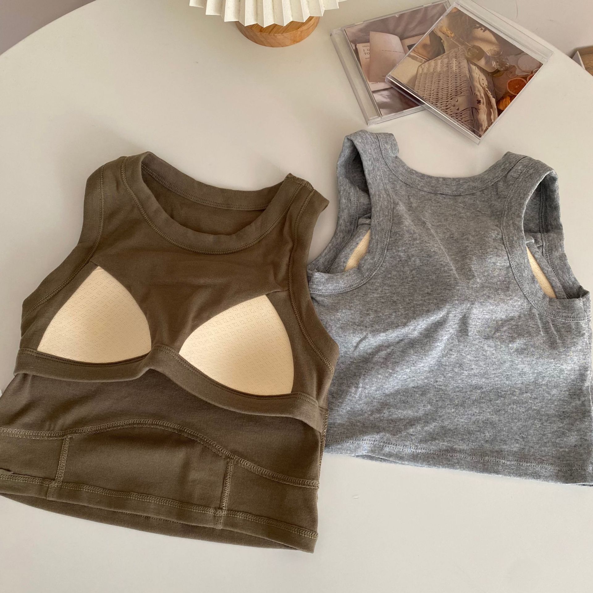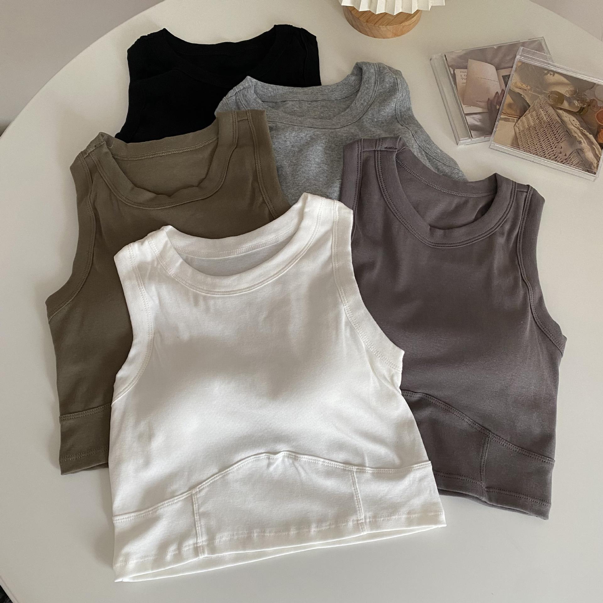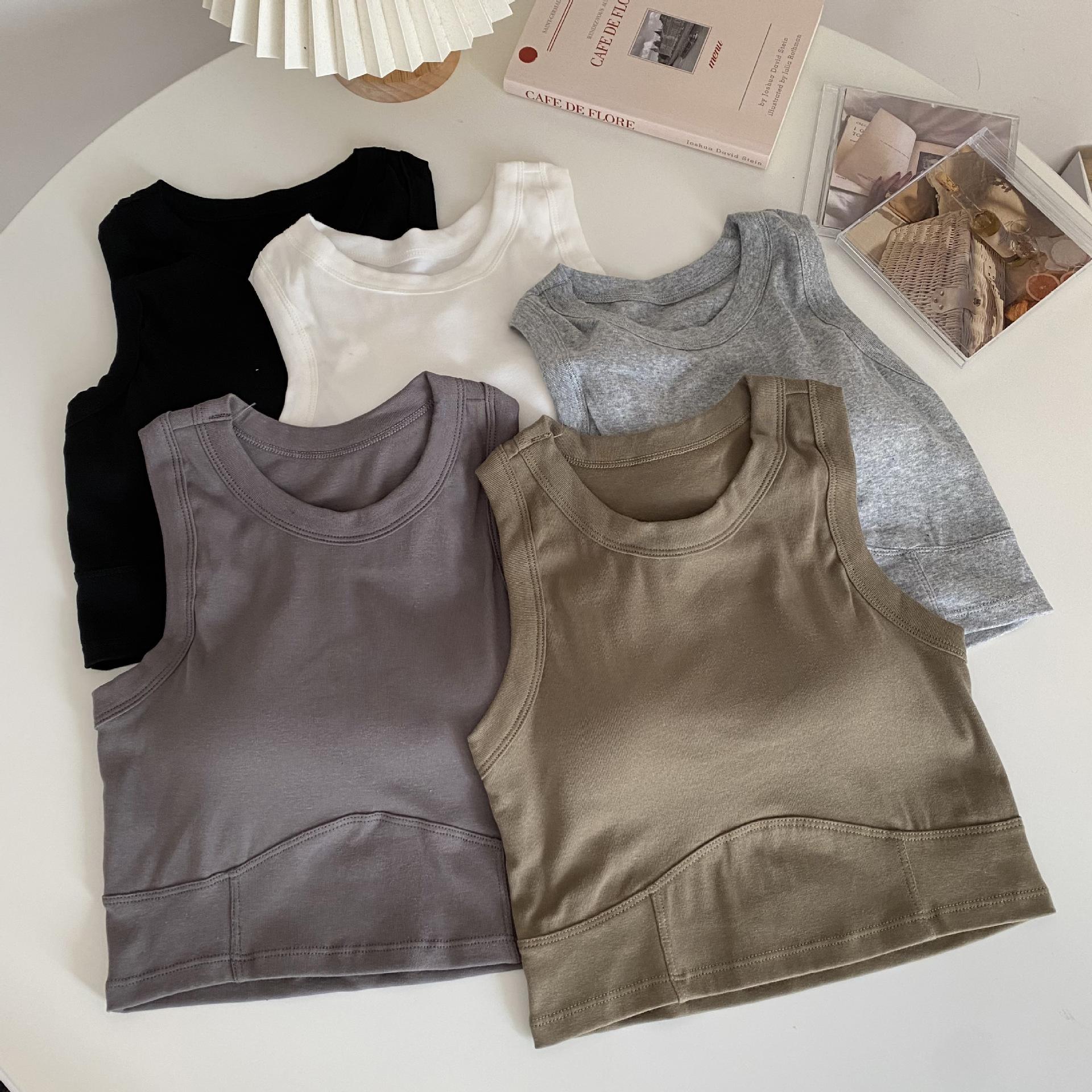 Algodón de Verano Color Puro Interior Deportivo Camisola Pequeña para Mujer Ajustada Envuelto en el Pecho Interior con Espalda Hermosa Top Tubo con Copa Fija Trendy