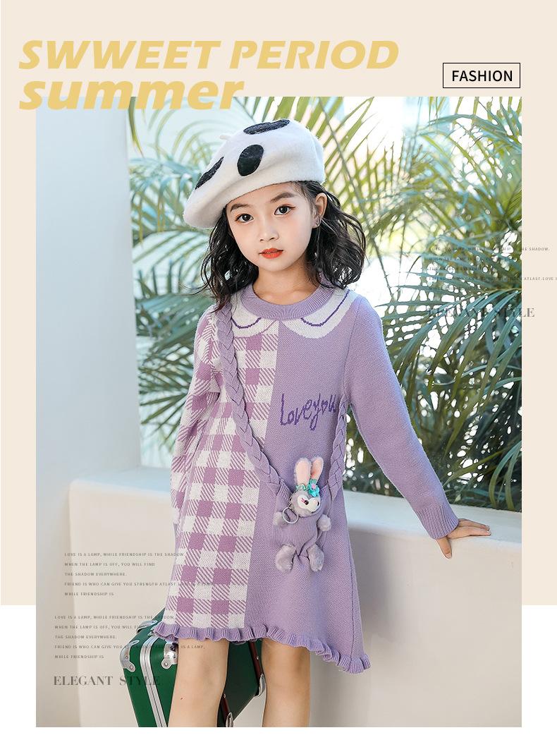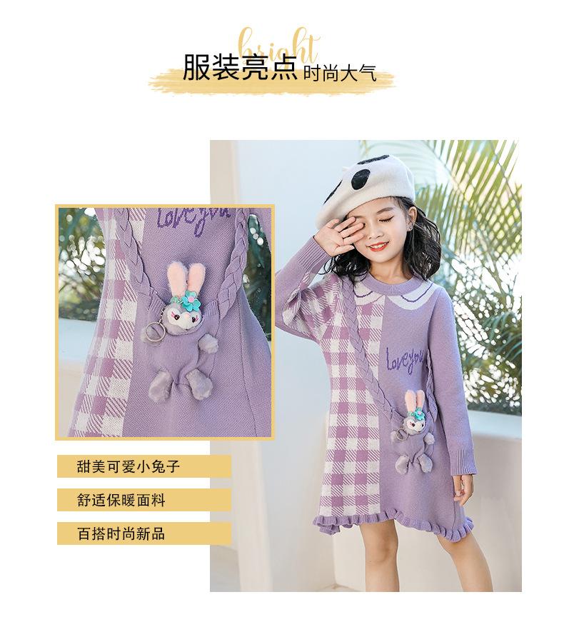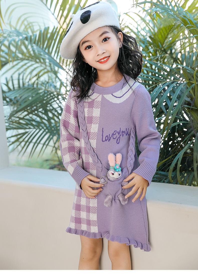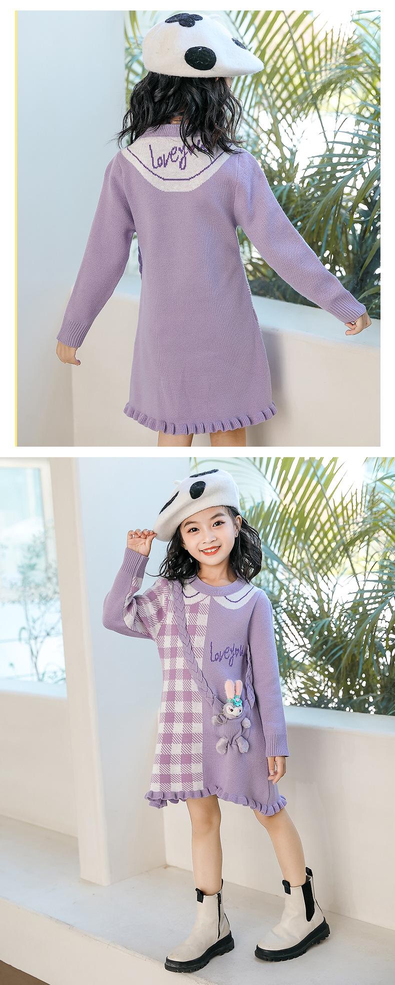 Nuevo Vestido de Princesa Rocío de Estrella Frozen para Niñas Vestido Suéter Morado de Moda para Bebé con Conejo de Dibujos Animados