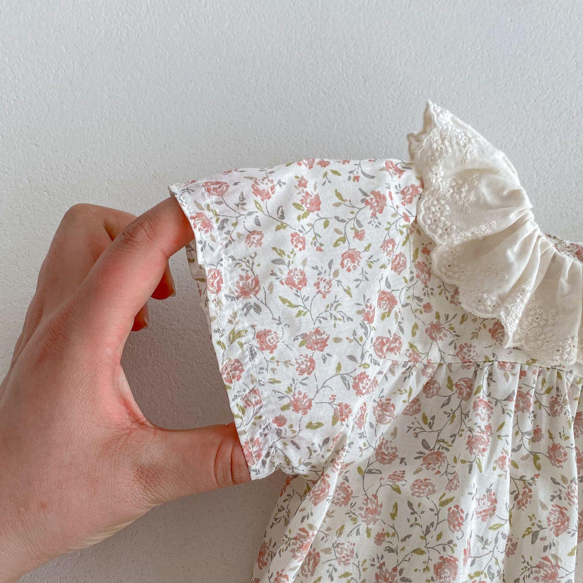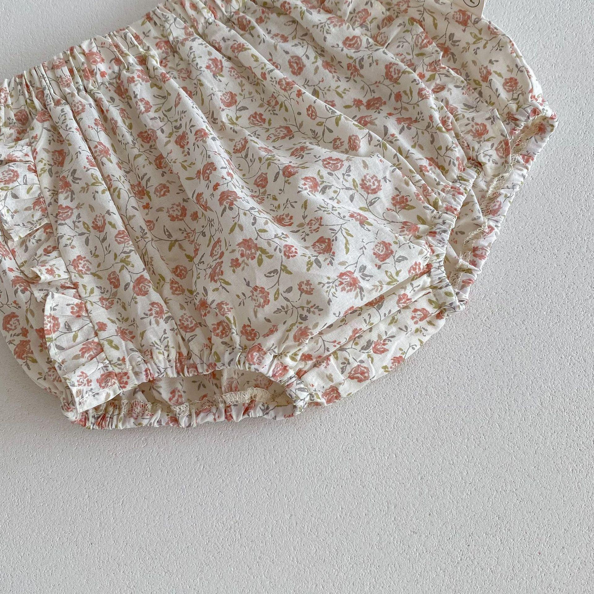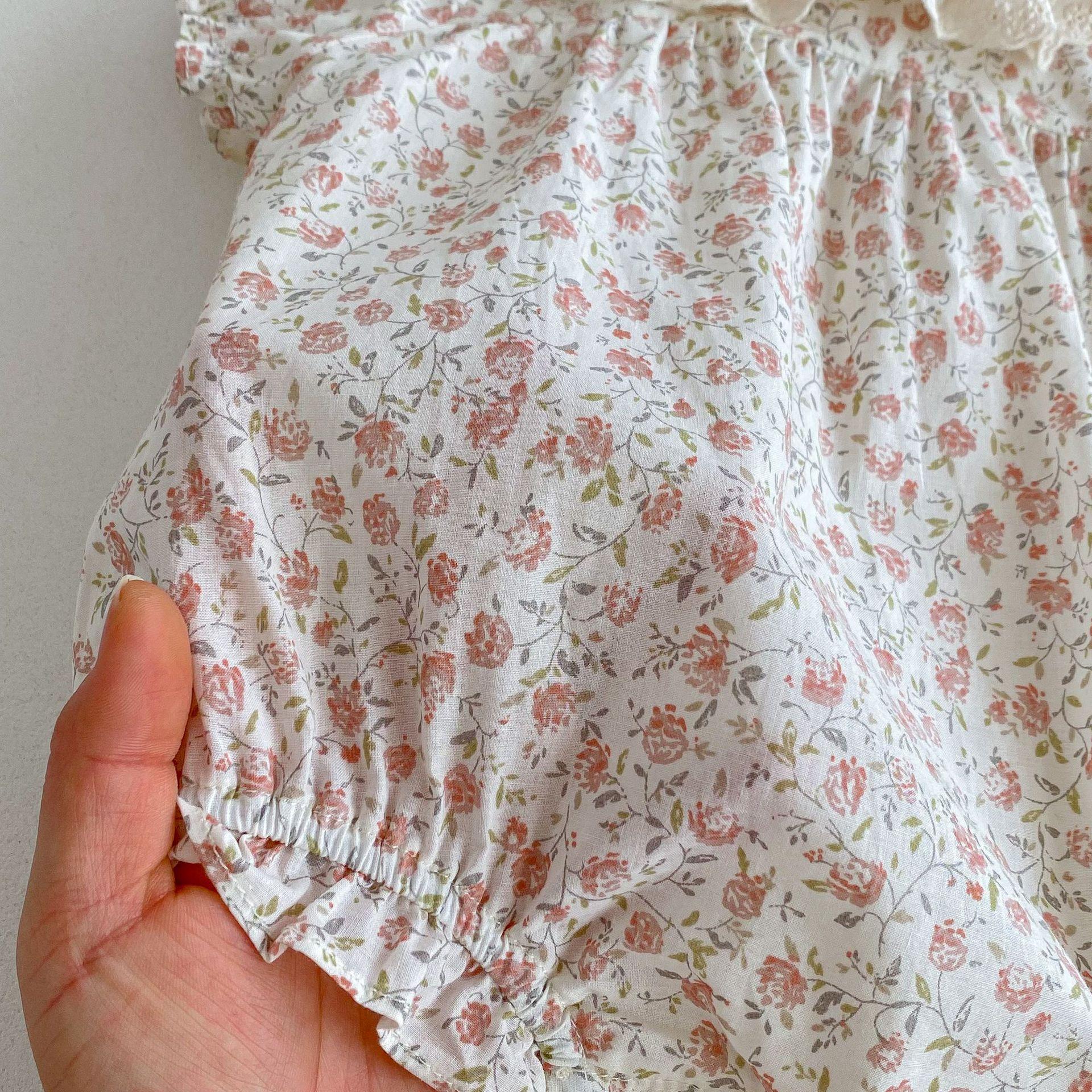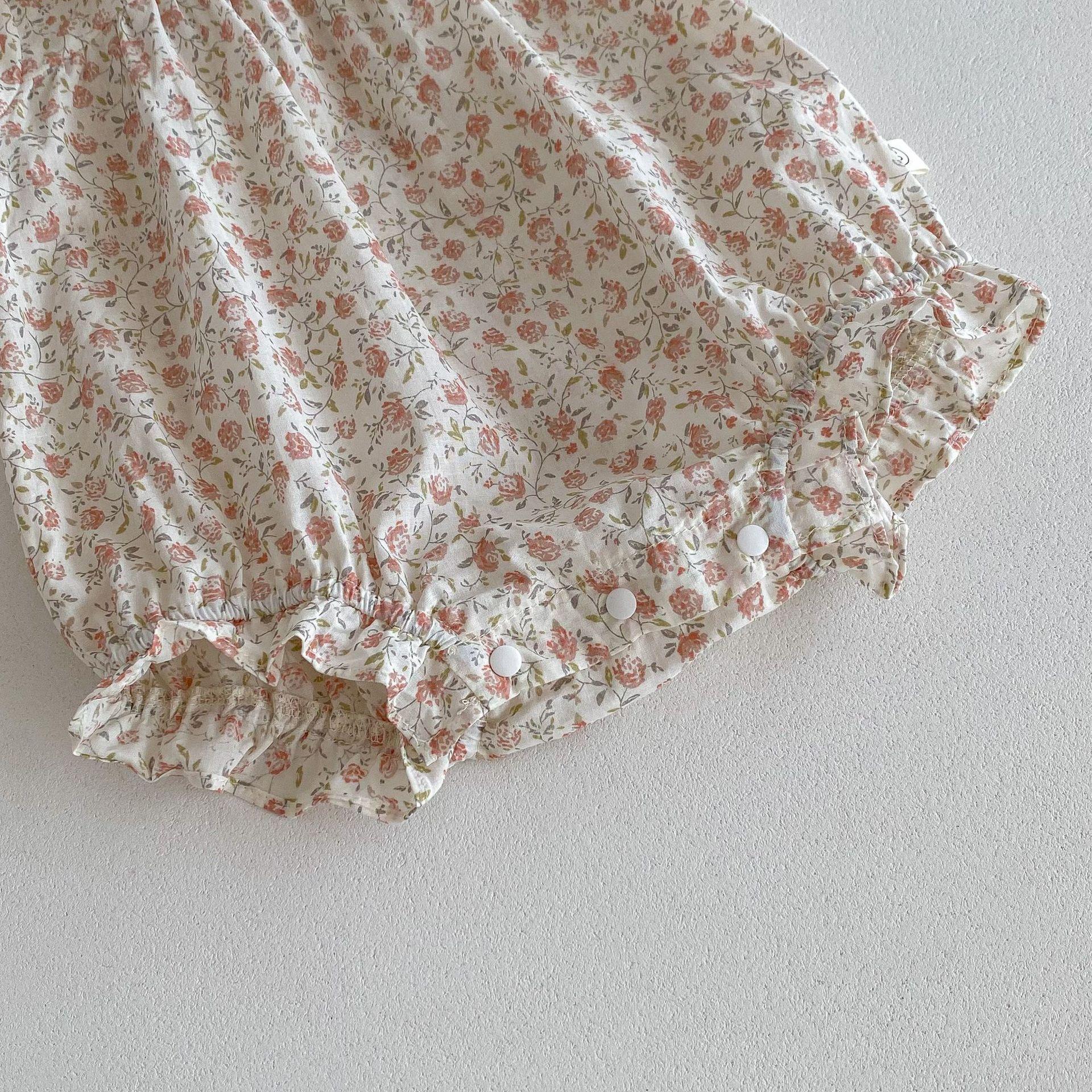 Ins Verano Estilo Coreano Bebé Niña Manga Corta Cuello de Muñeca Floral Una Pieza Triángulo Harem Traje Elegante Delgado para Gatear