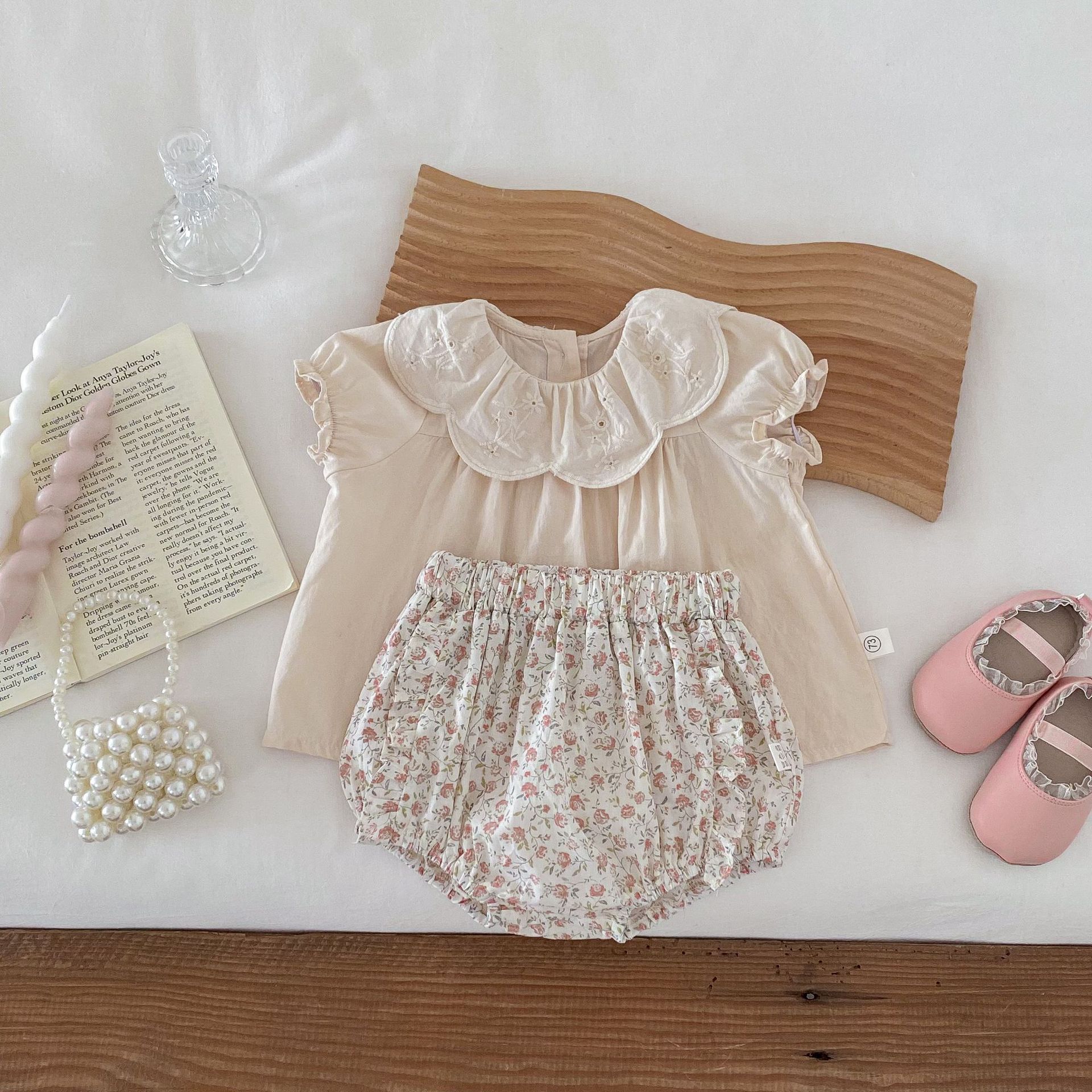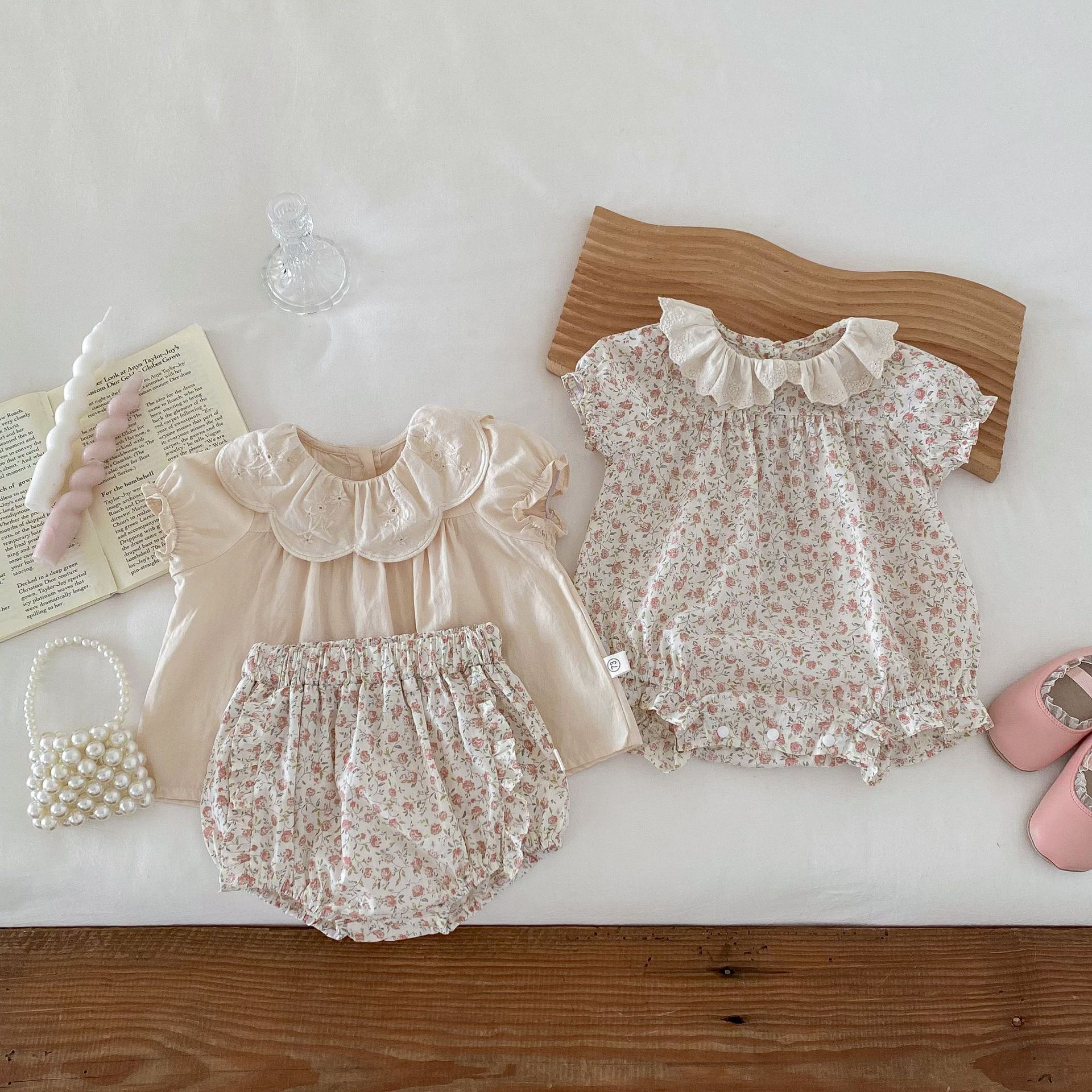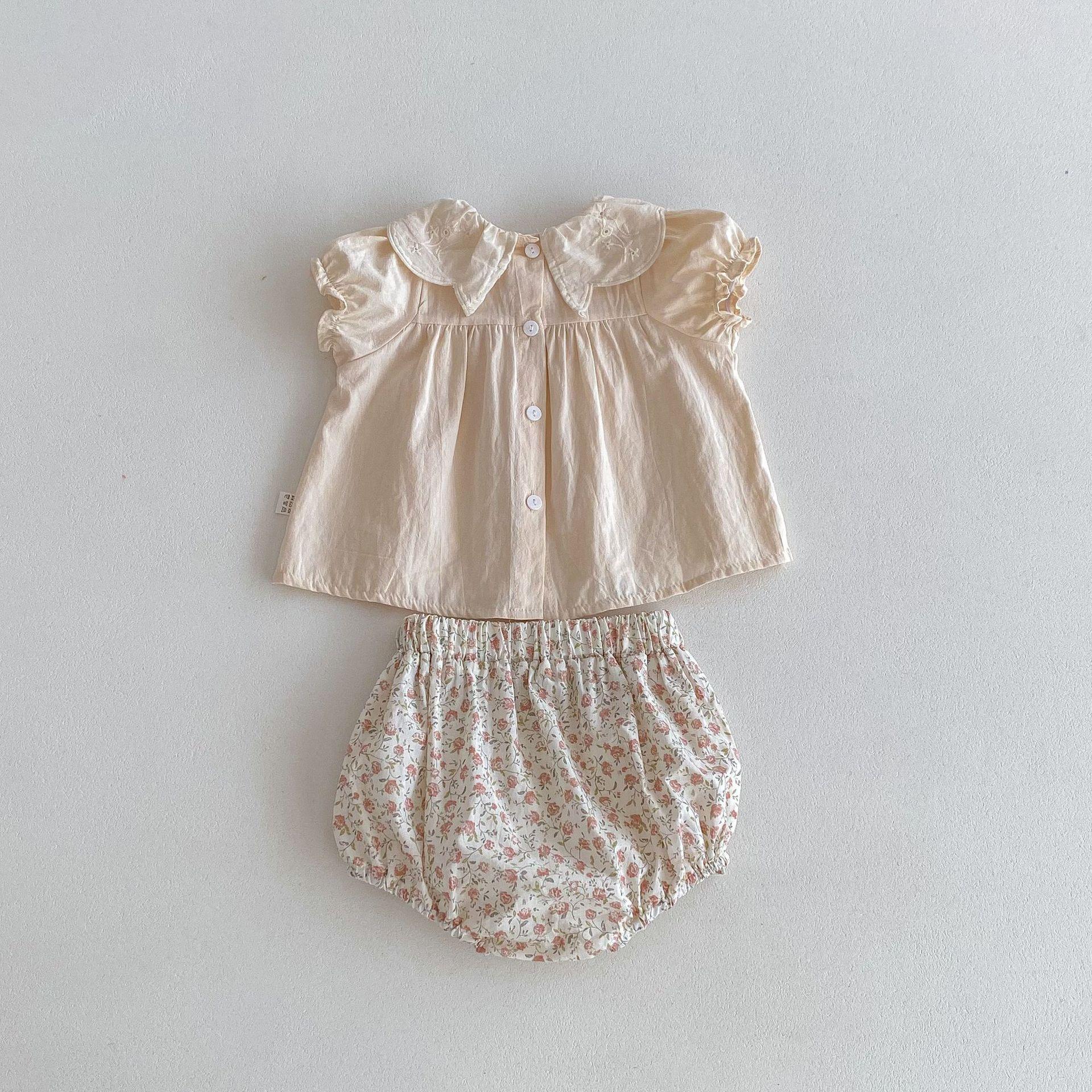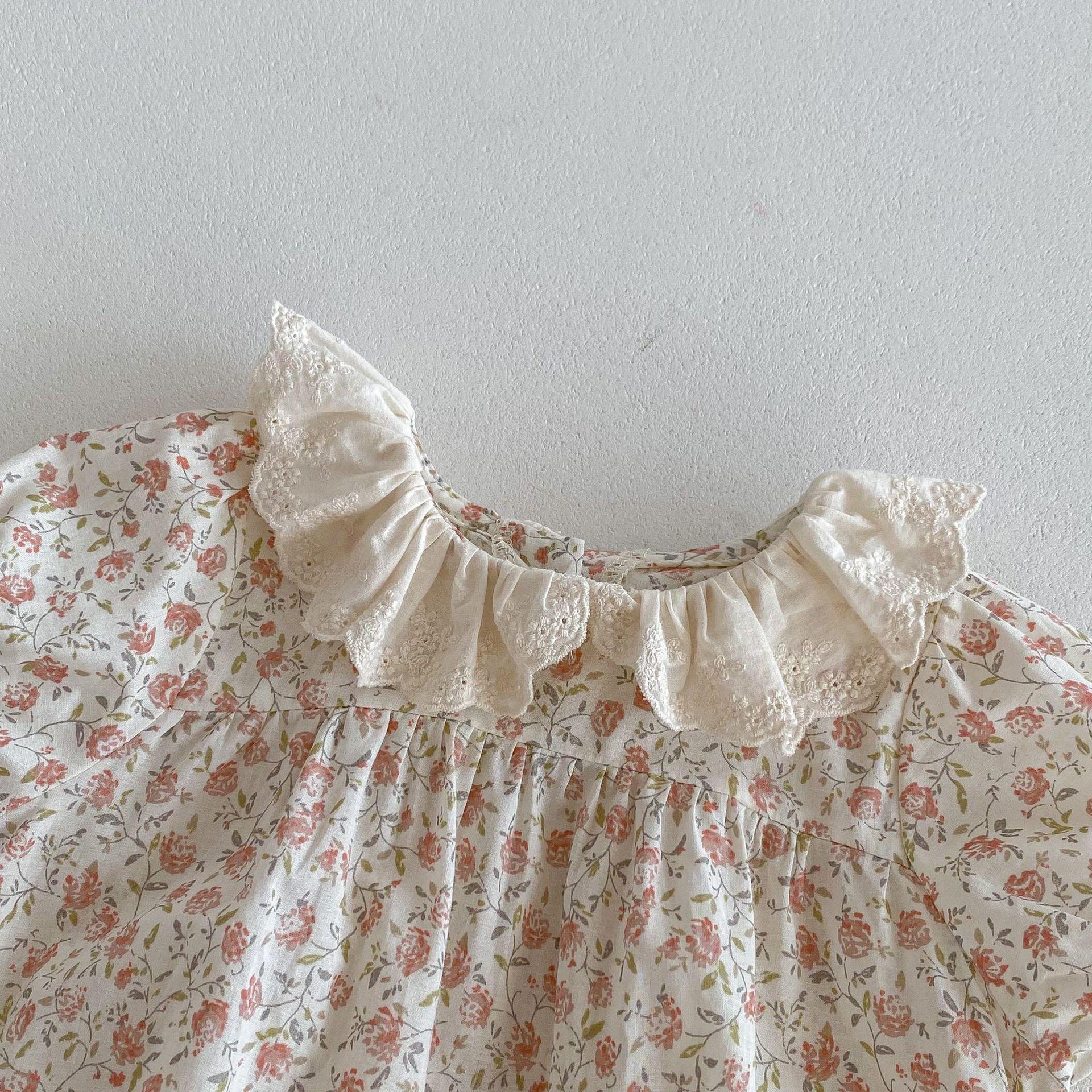 Ins Verano Estilo Coreano Bebé Niña Manga Corta Cuello de Muñeca Floral Una Pieza Triángulo Harem Traje Elegante Delgado para Gatear