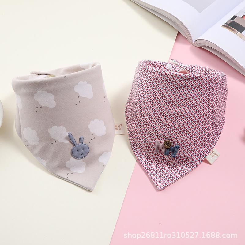 Babero de bebé triangular de algodón de doble capa con botón a presión, impermeable, para recién nacidos, bufanda para niños, primavera y otoño