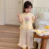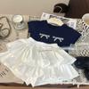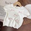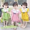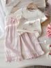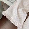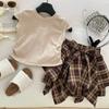 Traje de verano para niñas 2024, nuevo conjunto de dos piezas de camiseta de manga corta para bebé coreana, con encaje a cuadros y pantalones anchos.
