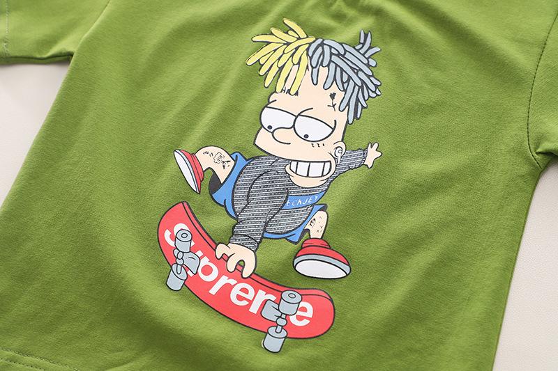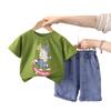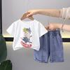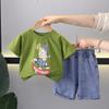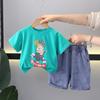 Vestido de verano para niño 2024, nuevo traje de bebé de dibujos animados de manga corta, estilo occidental, traje informal fino de verano de dos piezas.