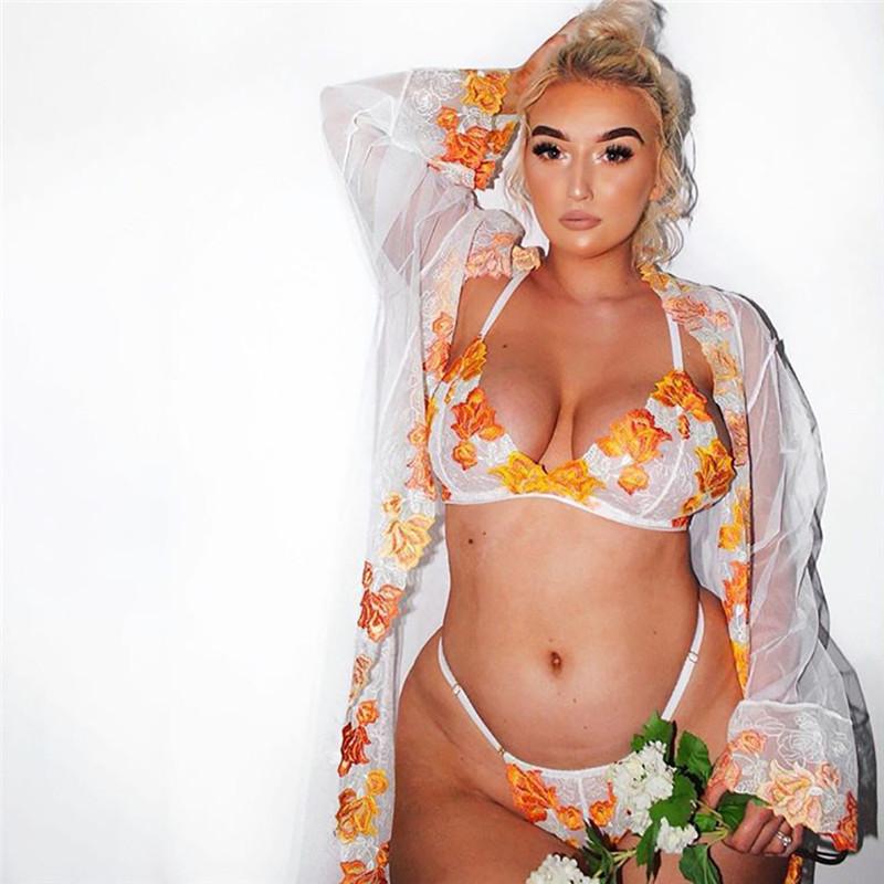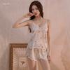 Ropa Interior Sexy Camisón Encaje de Tres Puntos Cárdigan Camisón Largo Pijama de Perspectiva Sexy Europeo y Americano