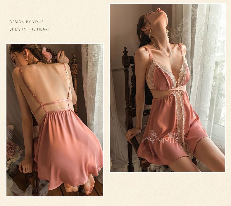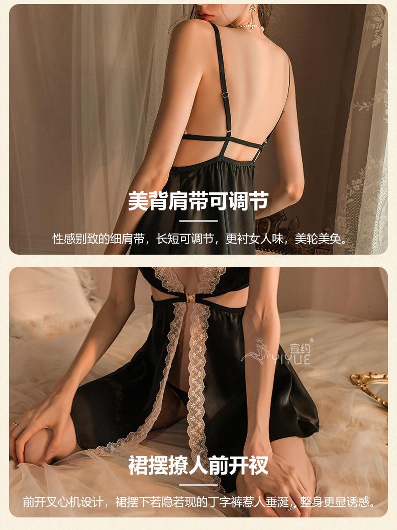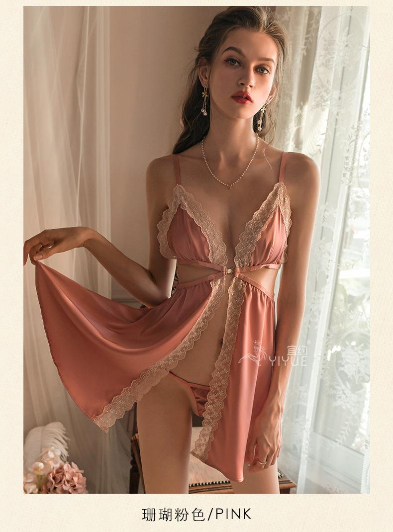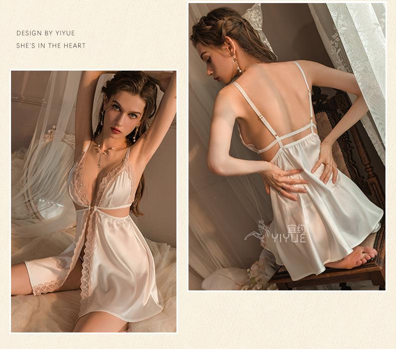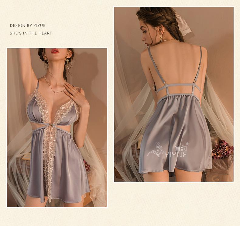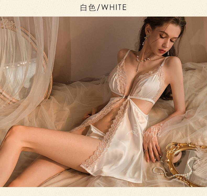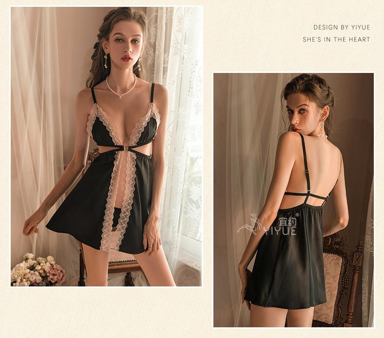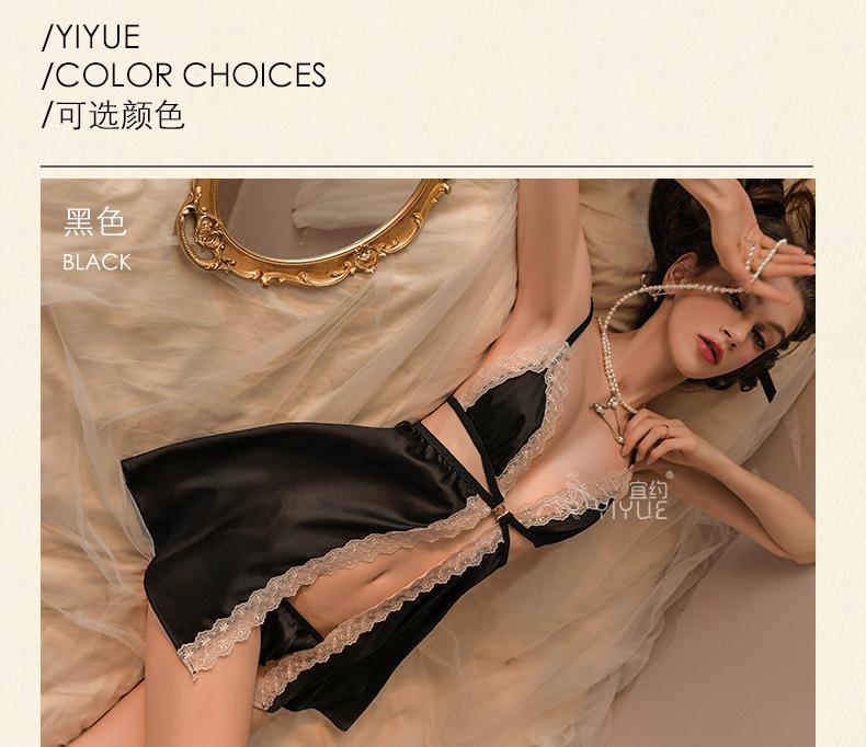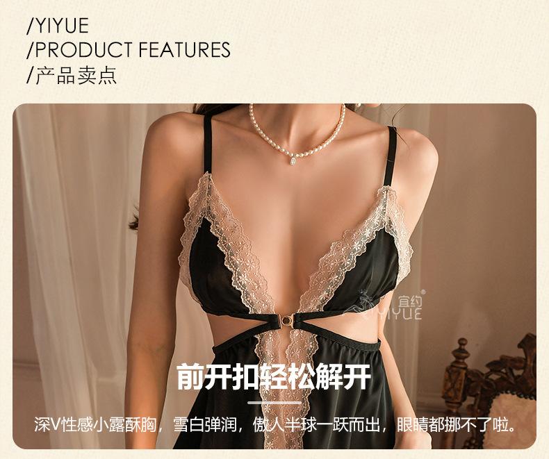 Yiyo ropa interior sexy sexy encaje hueco profundo V pijama delgado con abertura pijama de pasión caliente al por mayor 8491