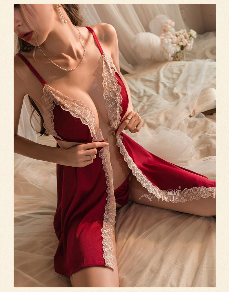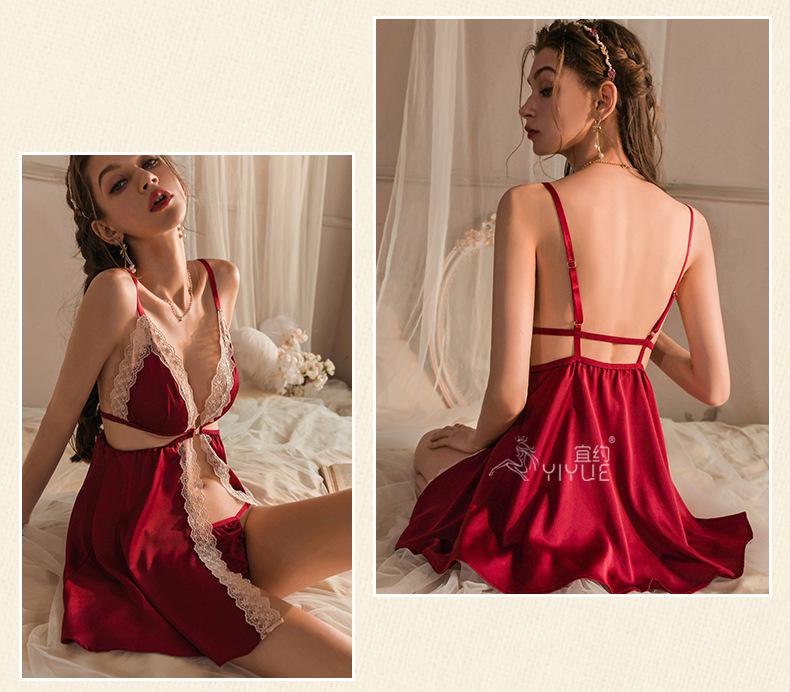 Compra Yiyo ropa interior sexy sexy encaje hueco profundo V pijama delgado con abertura pijama de pasión caliente al por mayor 8491 al por mayor en Joom.pro