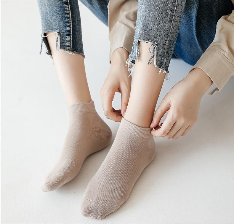 7A Calcetines de Algodón Antibacterianos Nuevos para Mujer Color Sólido Calcetines Cortos Absorbentes de Sudor Transpirables Resistentes al Olor Versátiles de Corte Bajo para Mujer