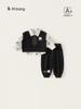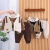 Traje de niño primavera y otoño estilo universitario 2023 nueva ropa de bebé chaleco de bebé conjunto de tres piezas lote