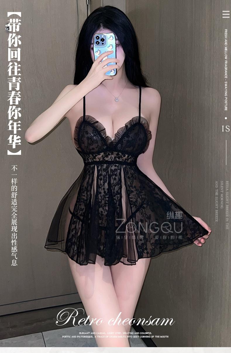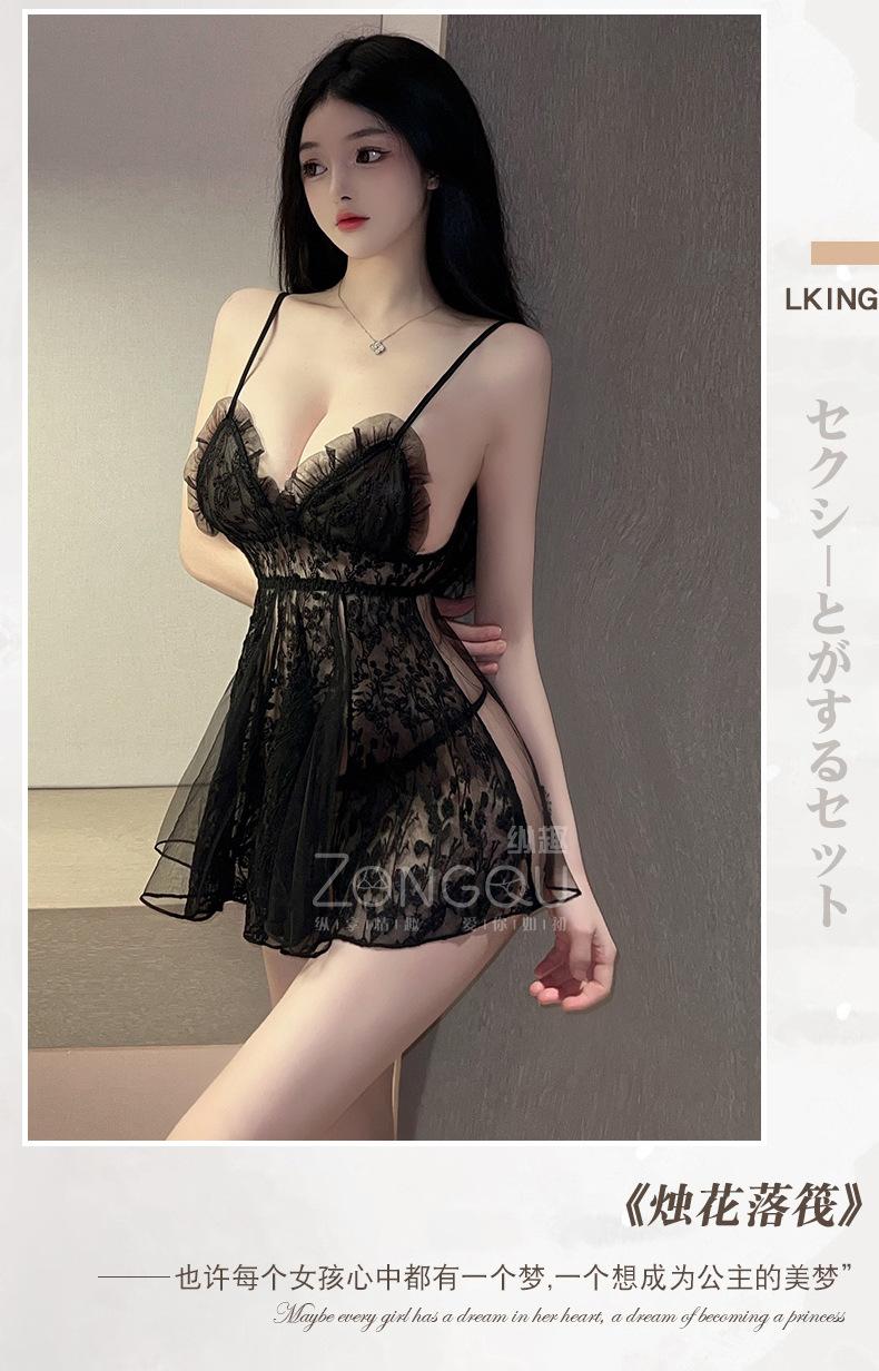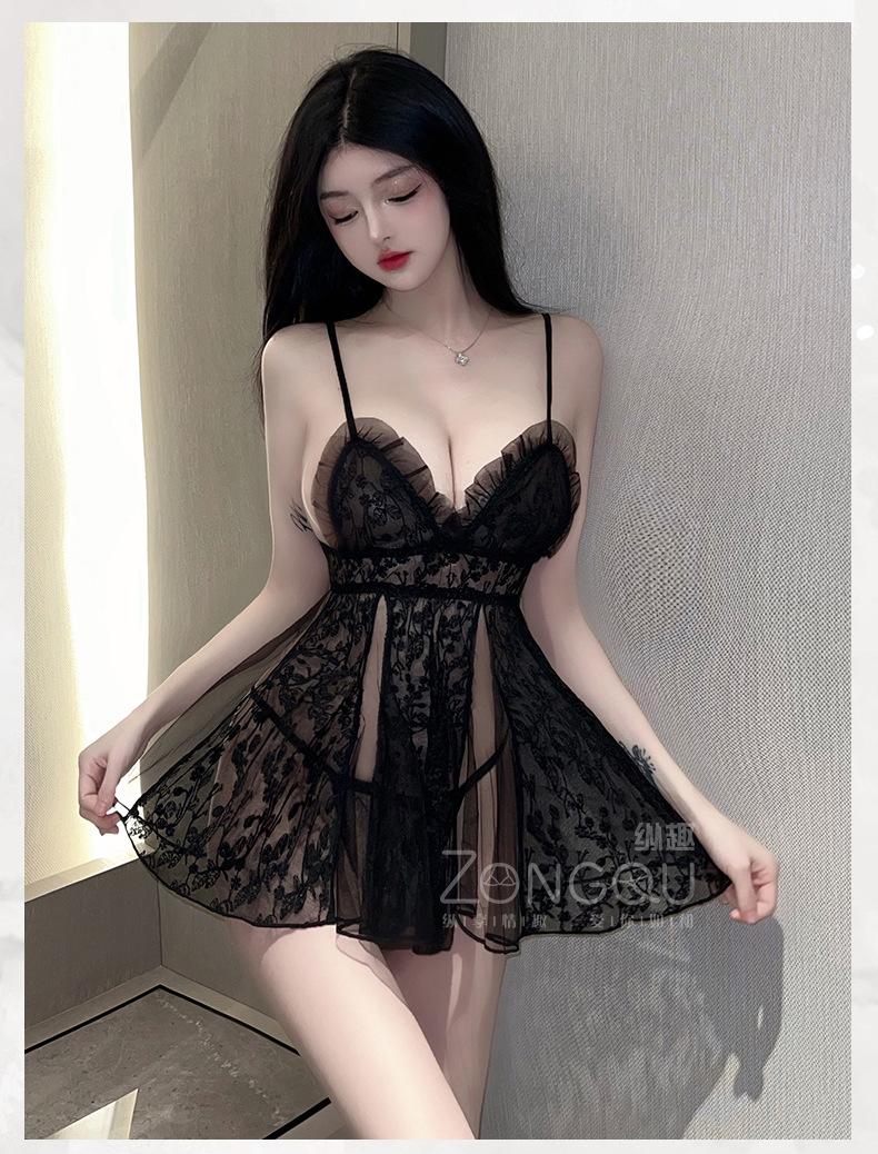 Lencería sexy vertical divertida, camisón de tentación de encaje sexy, traje de puro deseo, pijama transparente caliente de extremo abierto, pasión 6016