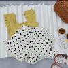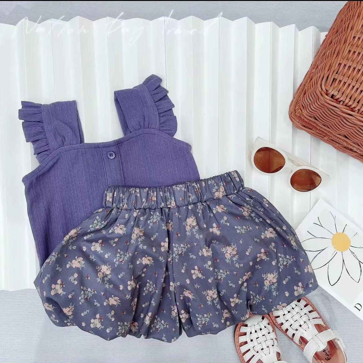 Traje de chaleco para niña 2023 nuevo estilo top de manga volada tirantes pantalón corto capullo de flor traje de dos piezas floral versión coreana