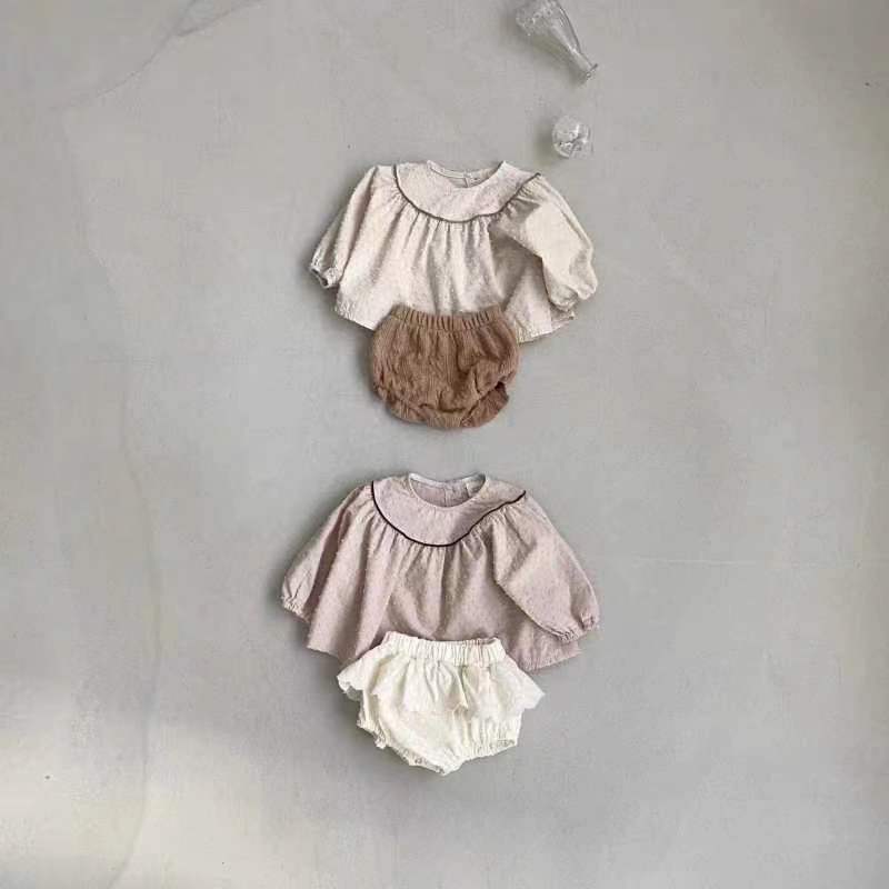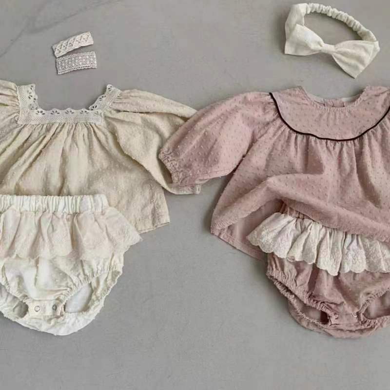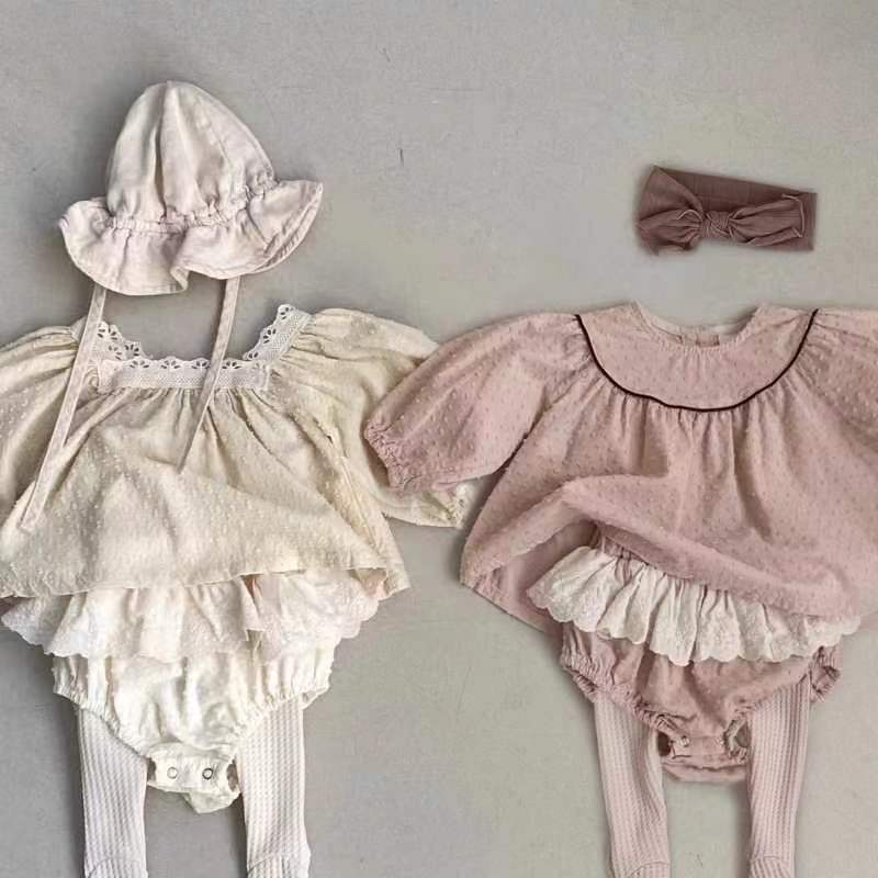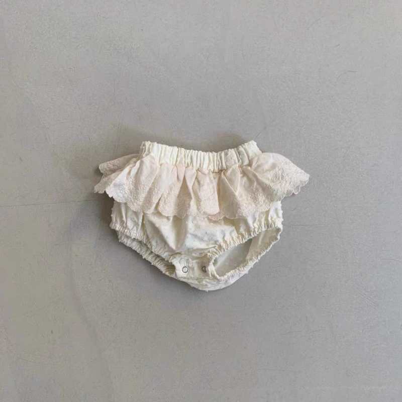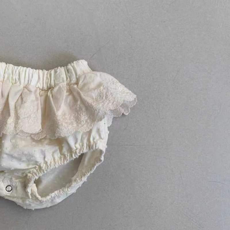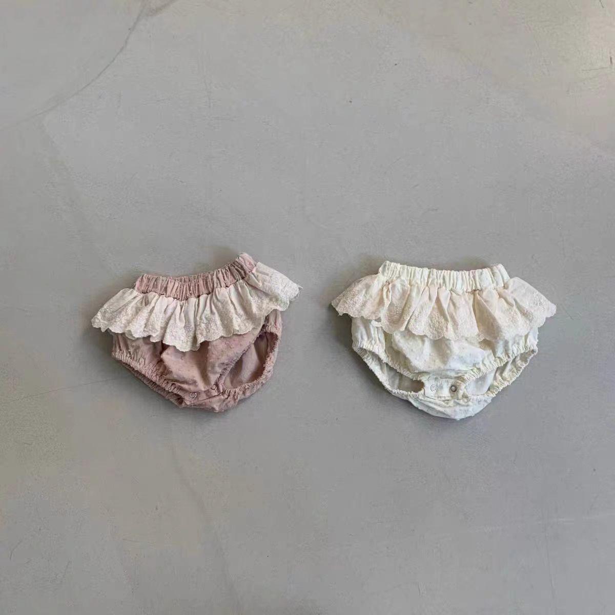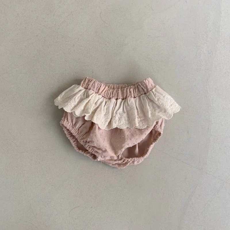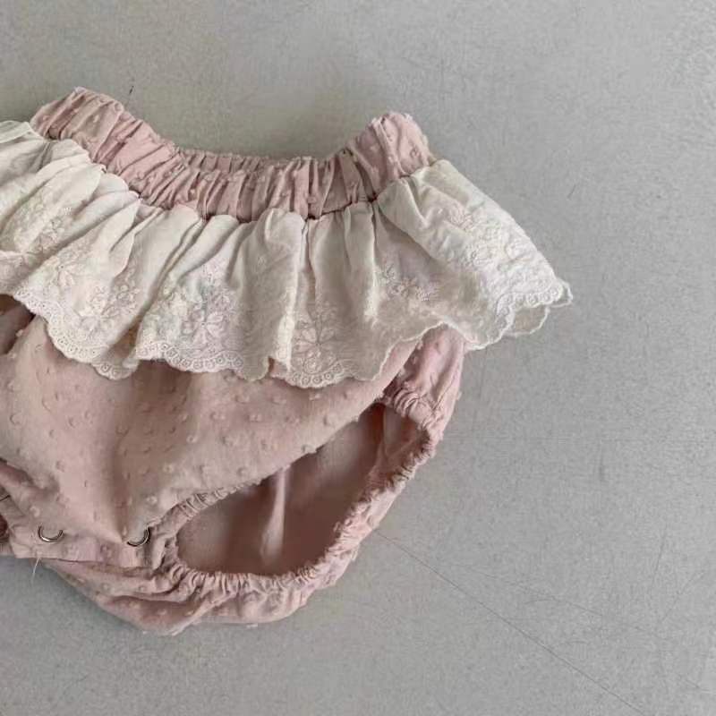 Ropa infantil de estilo coreano para verano, pantalones cortos de moda con bordado de encaje y lunares para recién nacidas.