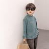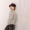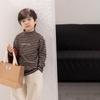 [Venta de liquidación] camiseta infantil de invierno 2023 de terciopelo doble cara cálida a rayas para usar debajo, top para bebé con cuello medio y letras