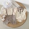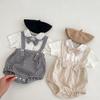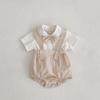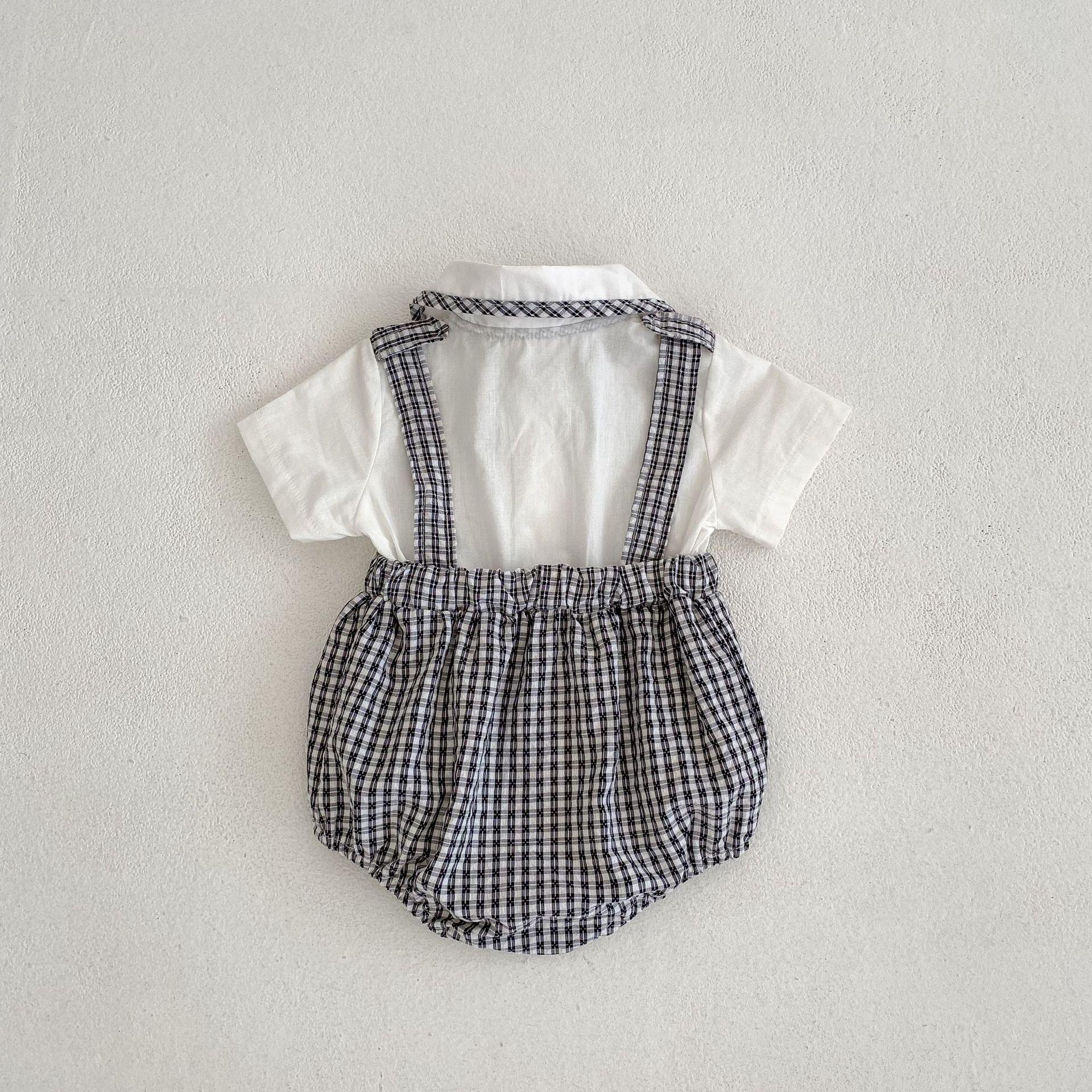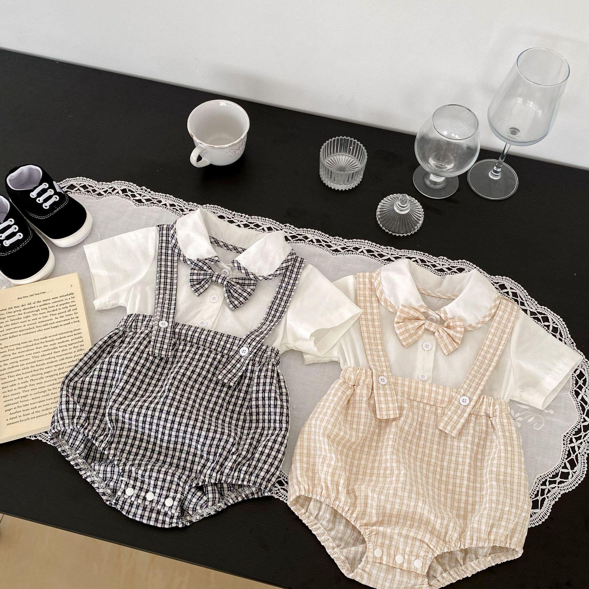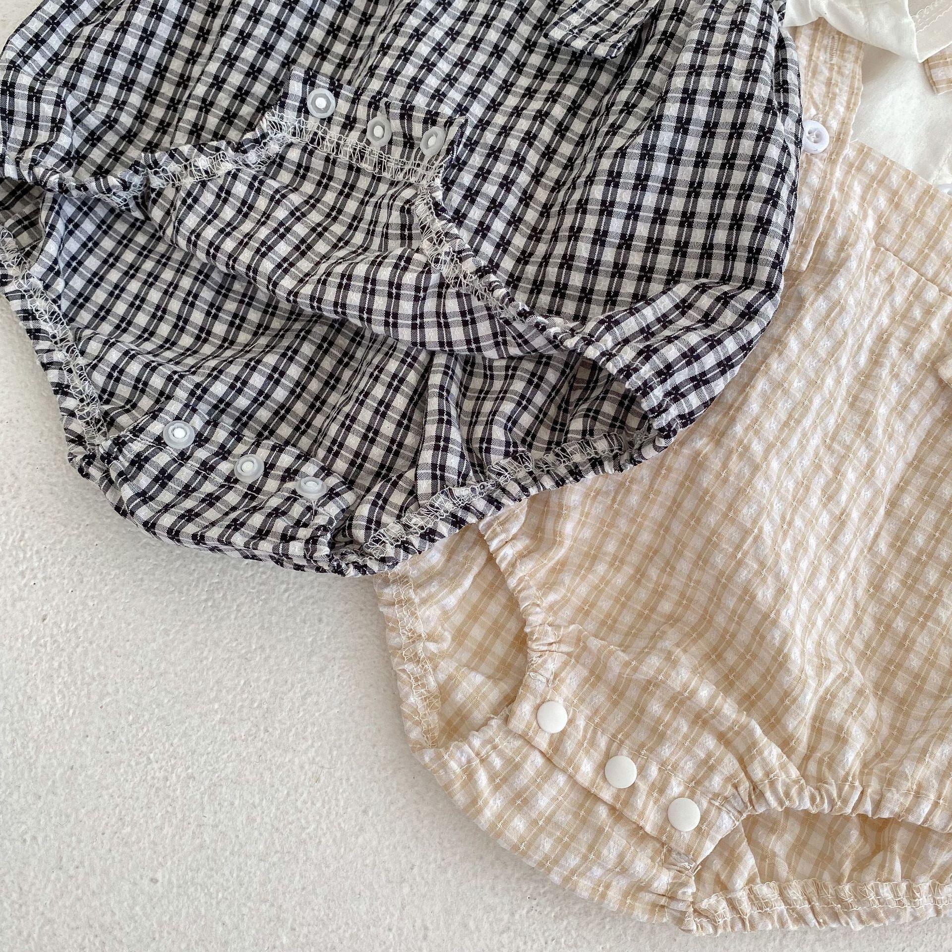 Ropa de Verano Ins Ropa de Una Pieza para Bebés y Niños Pequeños para Niños y Niñas Cuello de Muñeca Bebé a Cuadros Falso de Dos Piezas Triangular Ropa Ha-ha para Gatear
