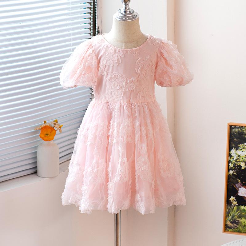 Vestido de Verano Nuevo para Niñas 2025 Falda para Niños Vestido de Flores Tridimensionales Vestido de Princesa para Niñas de Manga Corta