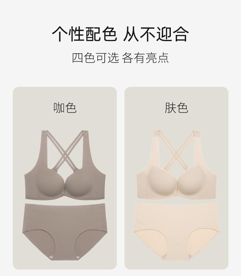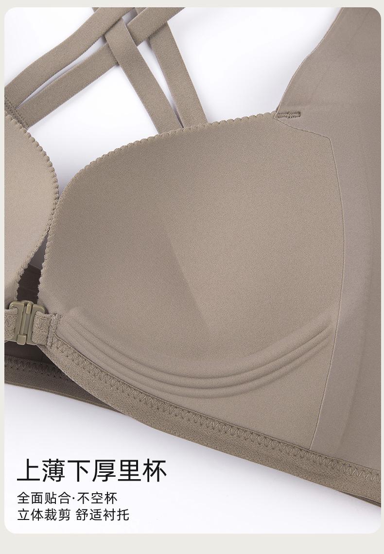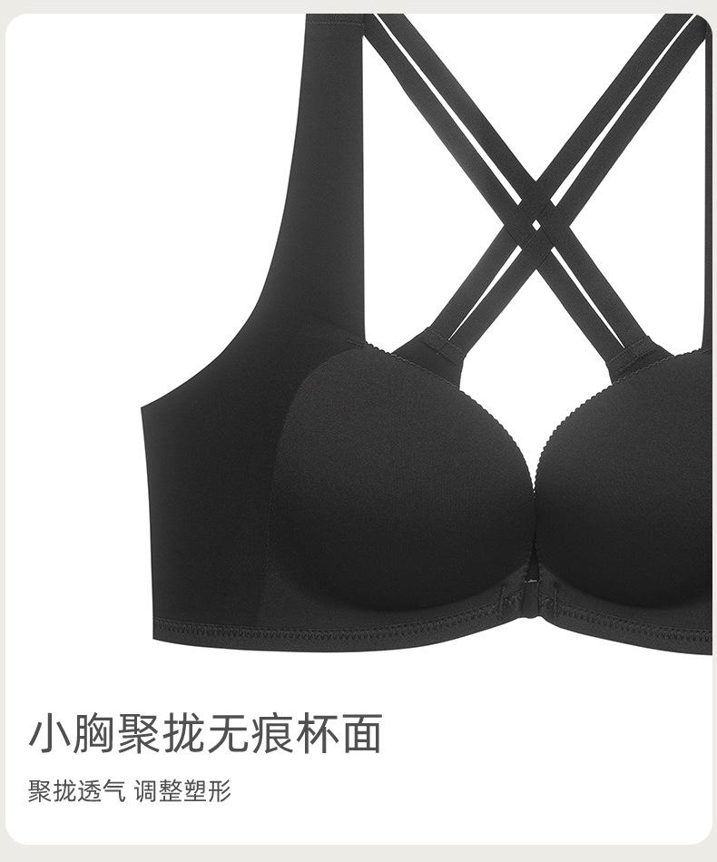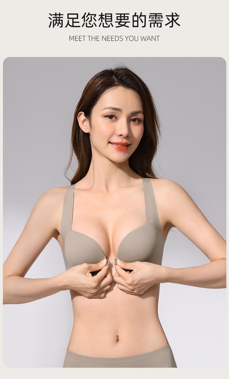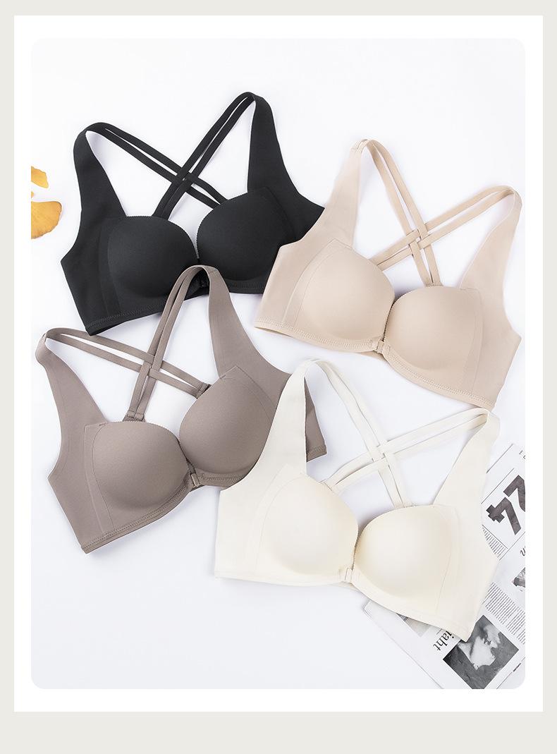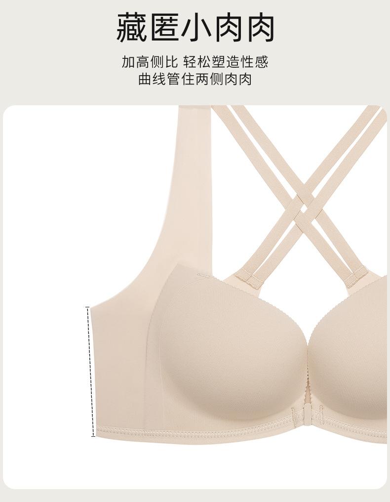 | Nueva y hermosa ropa interior trasera para mujer, fruncido sin costuras, cómodo sujetador con rosca sin aro de acero, almohadilla de copa mediana y larga con copa fija |