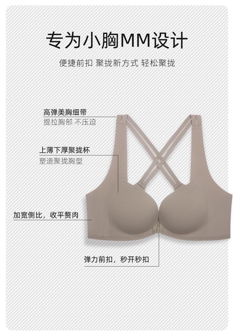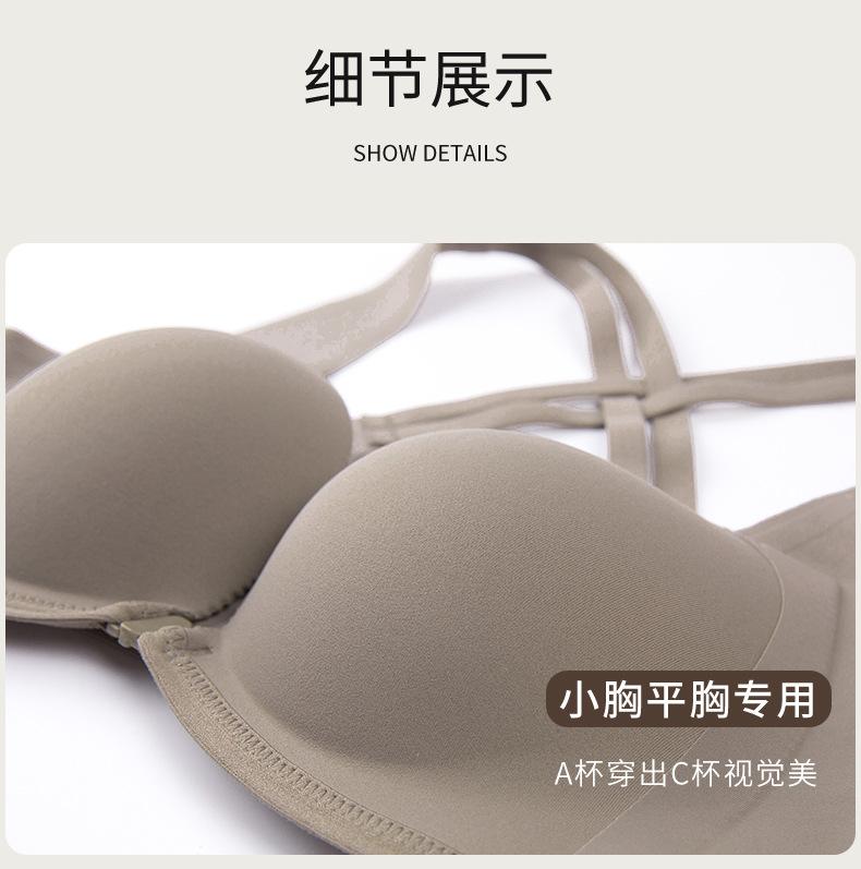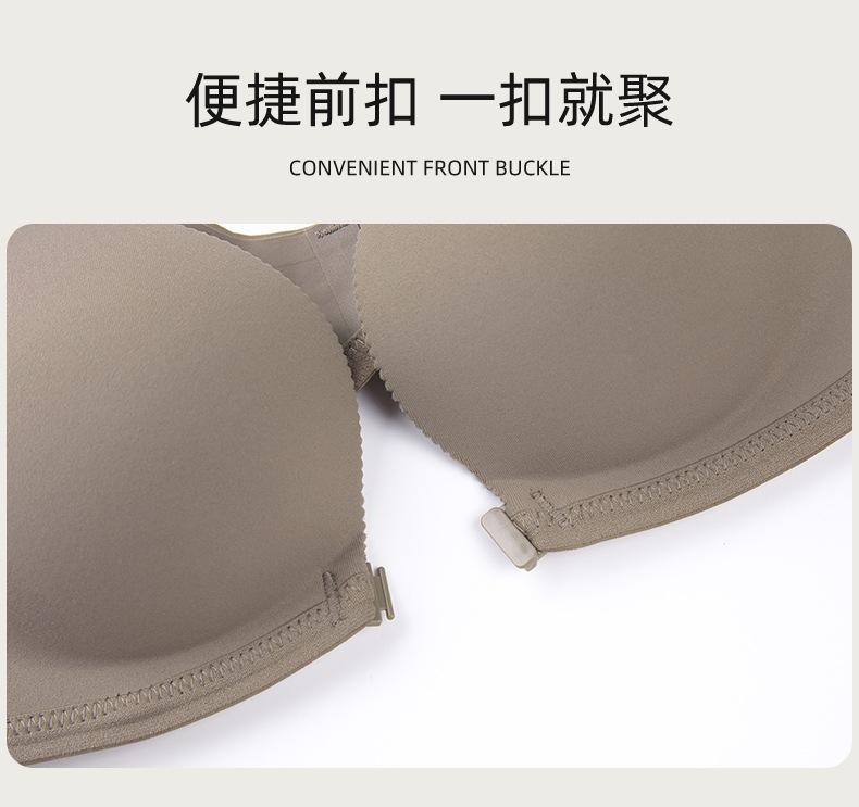 | Nuevo estilo de ropa interior de tubo sin tirantes con hebilla frontal para mujer con pequeño pecho fruncido, soporte superior con copa para los dedos, sujetador suave sin costuras para mujer |