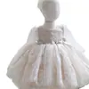 Vestido de Princesa para Niñas Manga Larga Abullonada Tul Niña de las Flores Vestido de Boda Cumpleaños Infantil Vestido Primer Cumpleaños Lazo Vestido de Bebé