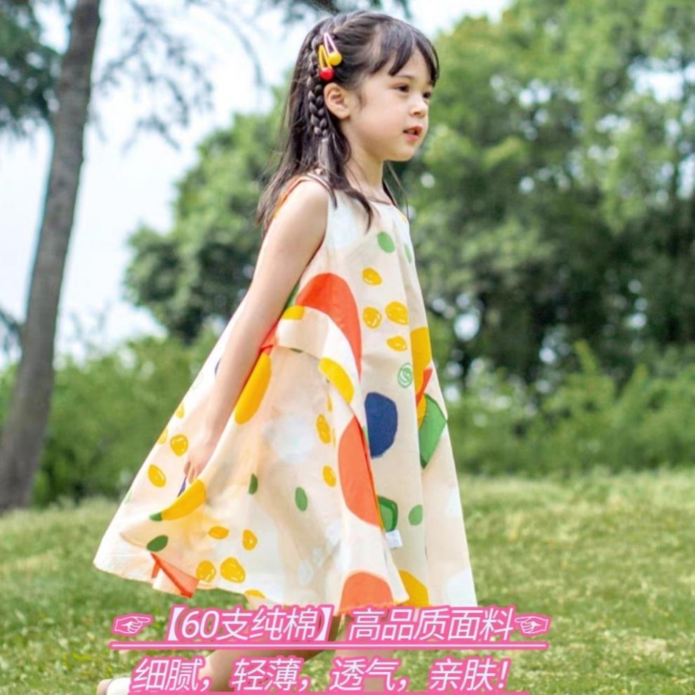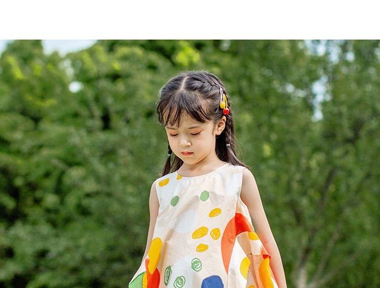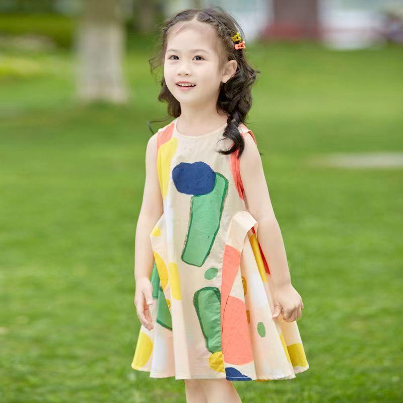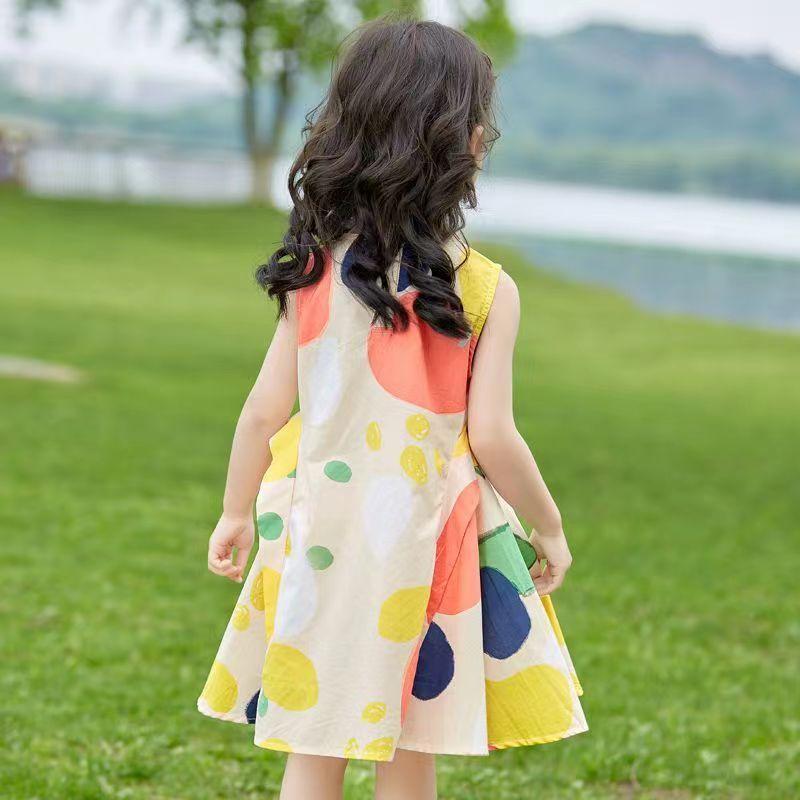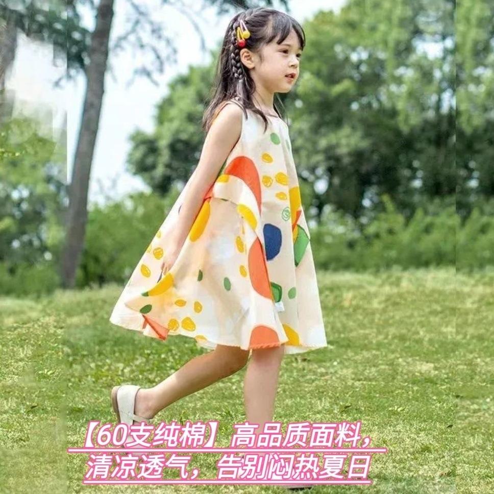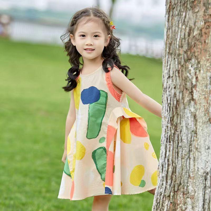 Vestido de Niña Verano Nuevo Vestido Chaleco Sin Mangas Vestido de Princesa Pintado para Niña Algodón Puro Delgado Estilo Princesa