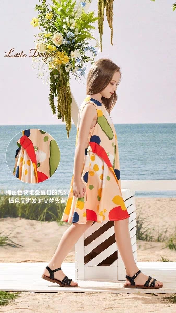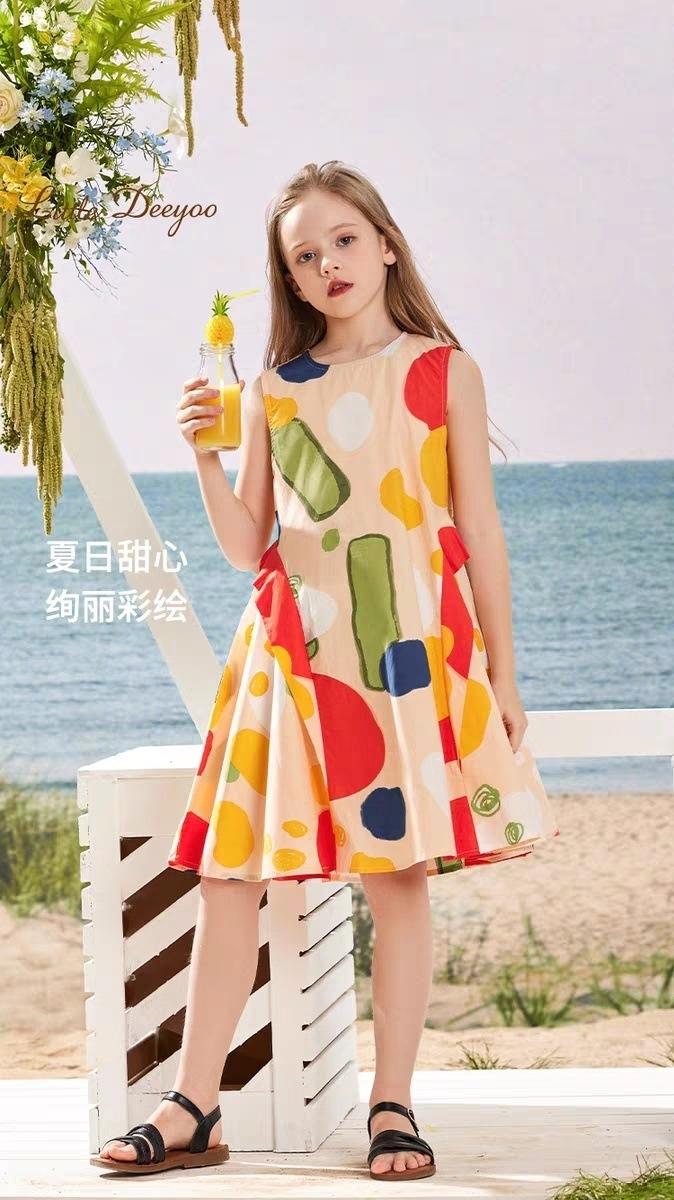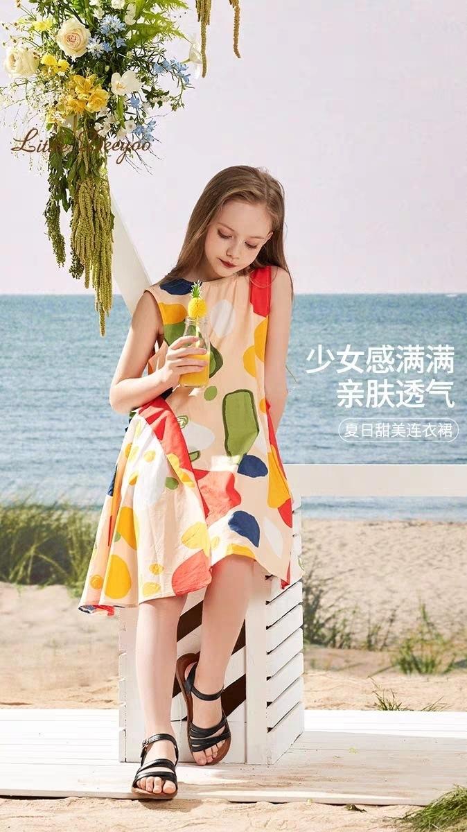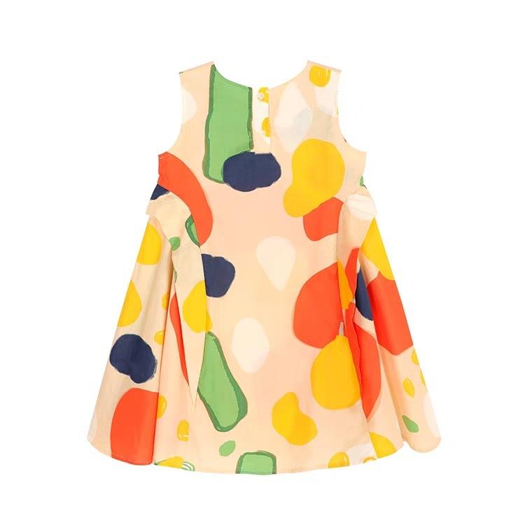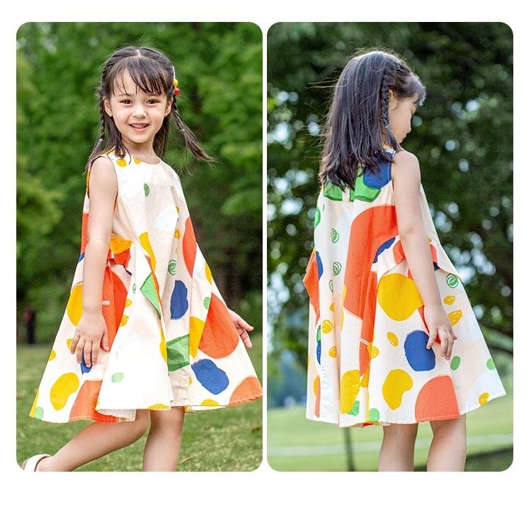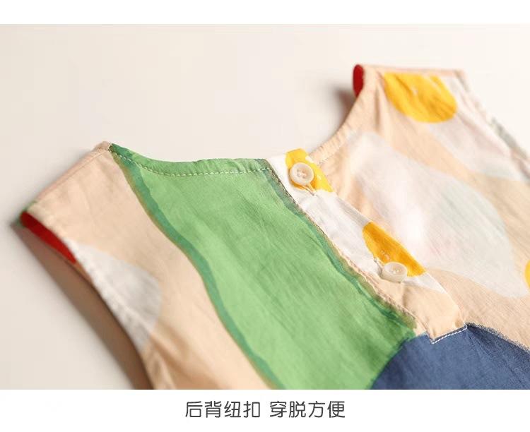 Vestido de Niña Verano Nuevo Vestido Chaleco Sin Mangas Vestido de Princesa Pintado para Niña Algodón Puro Delgado Estilo Princesa