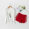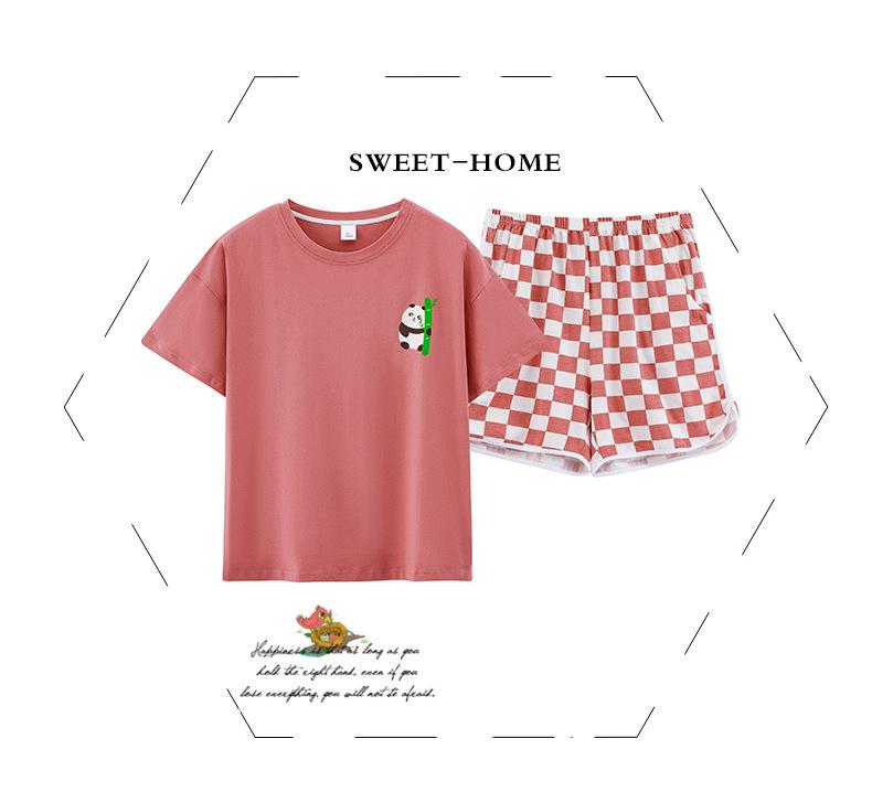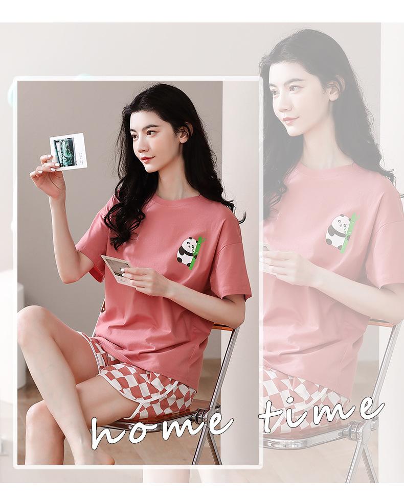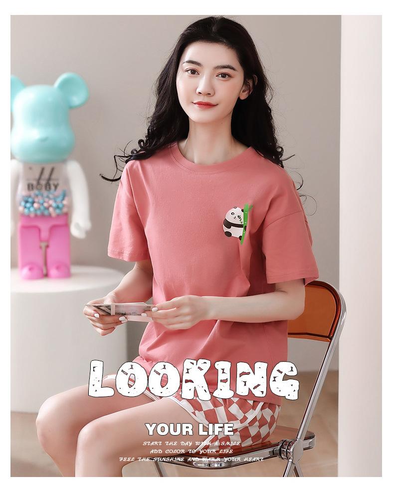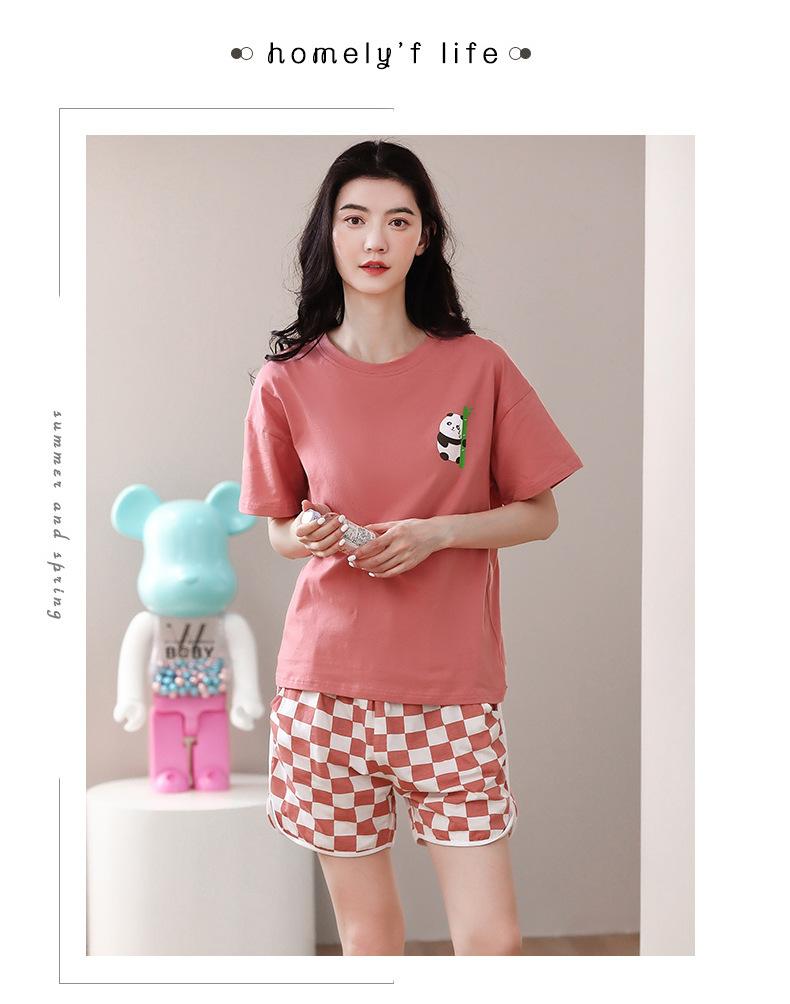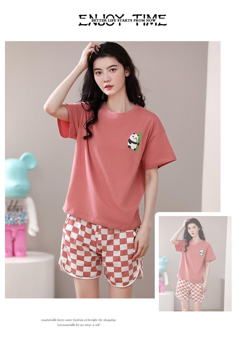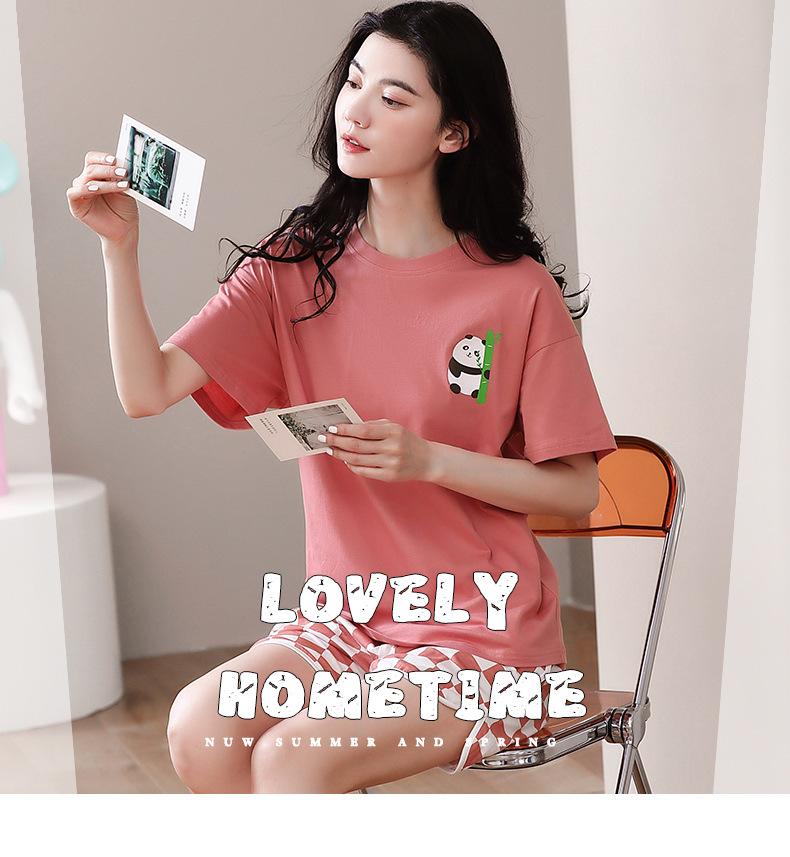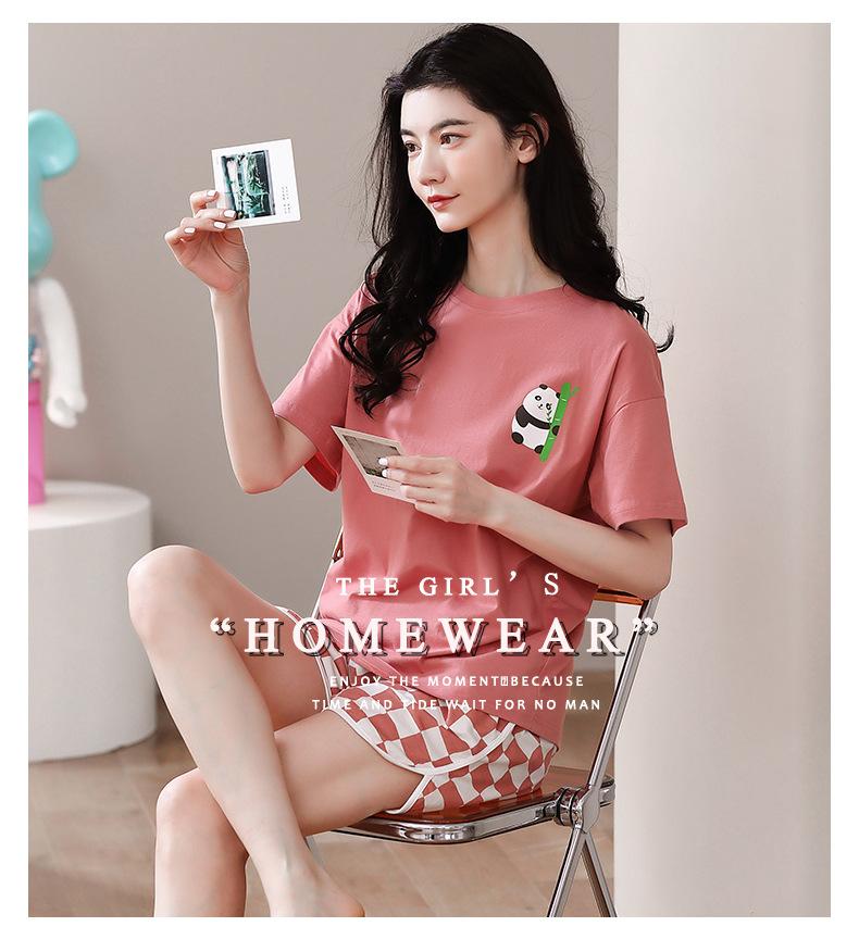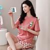 Pijama de algodón puro de verano para mujer, pantalones cortos de manga corta, bonitos estampados de dibujos animados, ropa fina y transpirable para el hogar